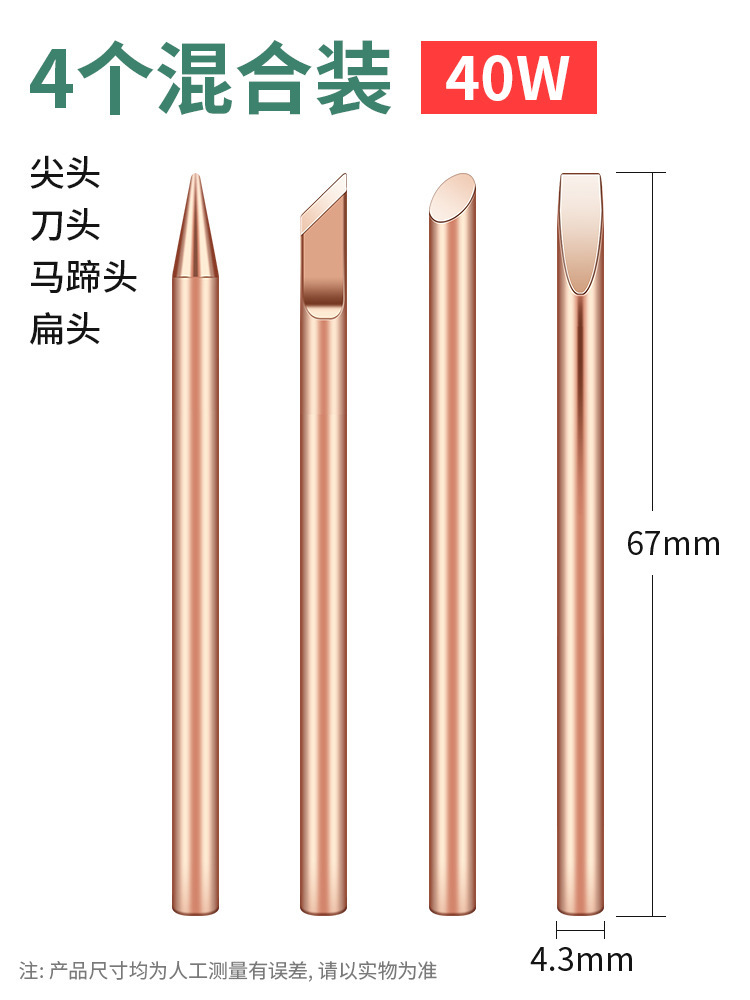 30 Вт чистая медь красная медь [заостренный кончик]; 30 Вт чистая медь красная медь [подковообразная головка]; 30 Вт чистая медь красная медь [плоская головка]; 30 Вт чистая медь красная медь [лезвие]; 30 Вт чистая медь, красная медь [смешанная упаковка из 4 шт.]; 30 Вт чистая медь [смешанная упаковка из 4 шт.] + нагревательный сердечник; 40 Вт чистая медь красная медь [заостренный кончик]; 40 Вт чистая медь красная медь [подковообразная головка]; 40 Вт чистая медь красная медь [плоская головка]; 40 Вт чистая медь красная медь [лезвие]; 40 Вт чистая медь, красная медь [смешанная упаковка из 4 шт.]; 40 Вт чистая медь [смешанная упаковка из 4 шт.] + нагревательный сердечник; 60 Вт чистая медь красная медь [заостренный кончик]; 60 Вт чистая медь красная медь [подковообразная головка]; 60 Вт чистая медь красная медь [плоская головка]; 60 Вт чистая медь красная медь [лезвие]; 60 Вт чистая медь [смешанная упаковка из 4 шт.]; 60 Вт чистая медь [смешанная упаковка из 4 шт.] + нагревательный сердечник