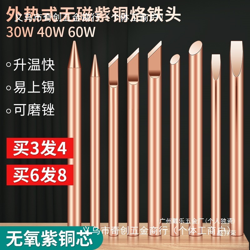 Наконечник паяльника Shengbangrong из чистой меди с внешним нагревом 30w40w60w, наконечник паяльника из чистой меди, заостренный нож с круглой головкой, электросварка