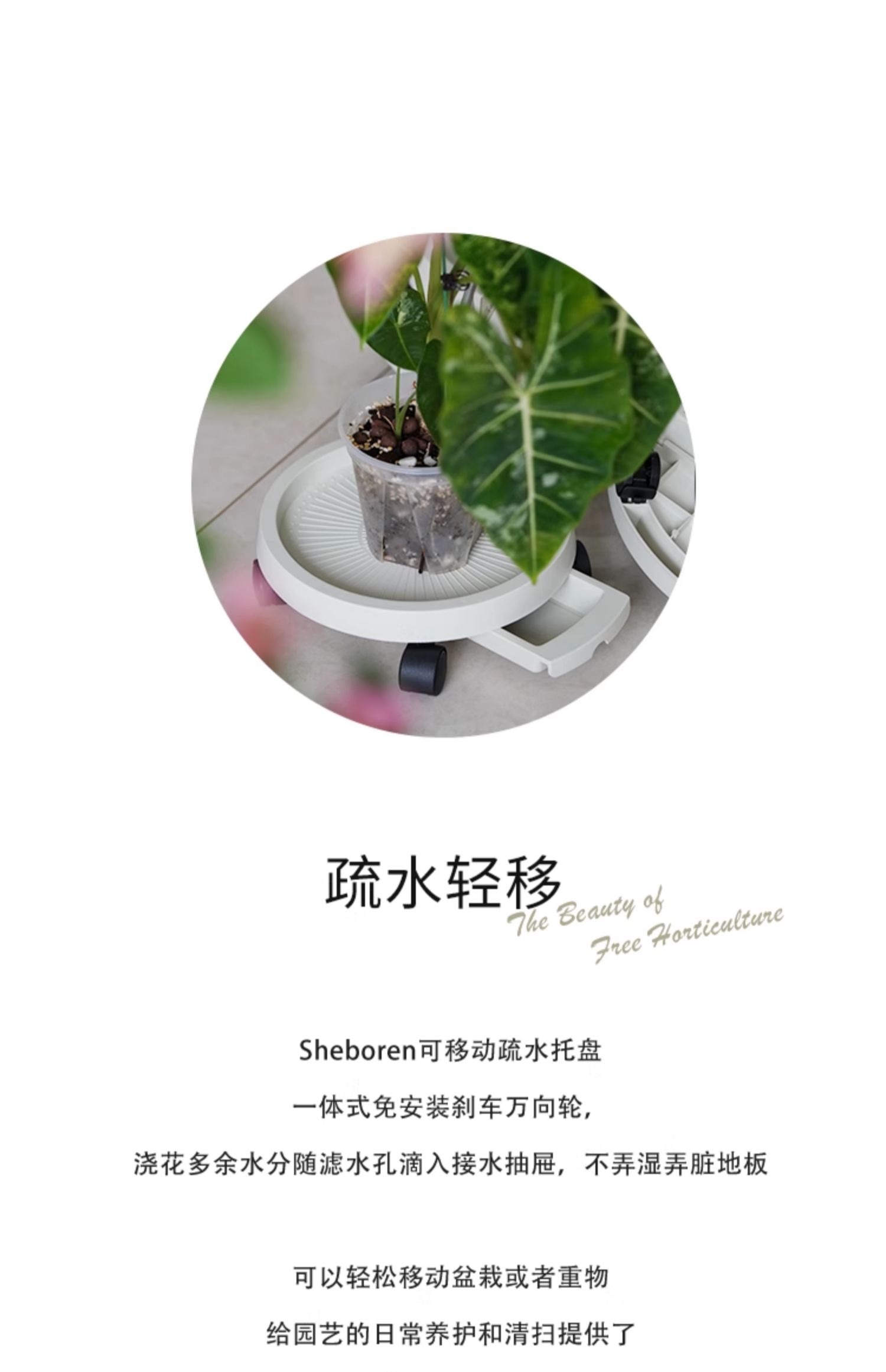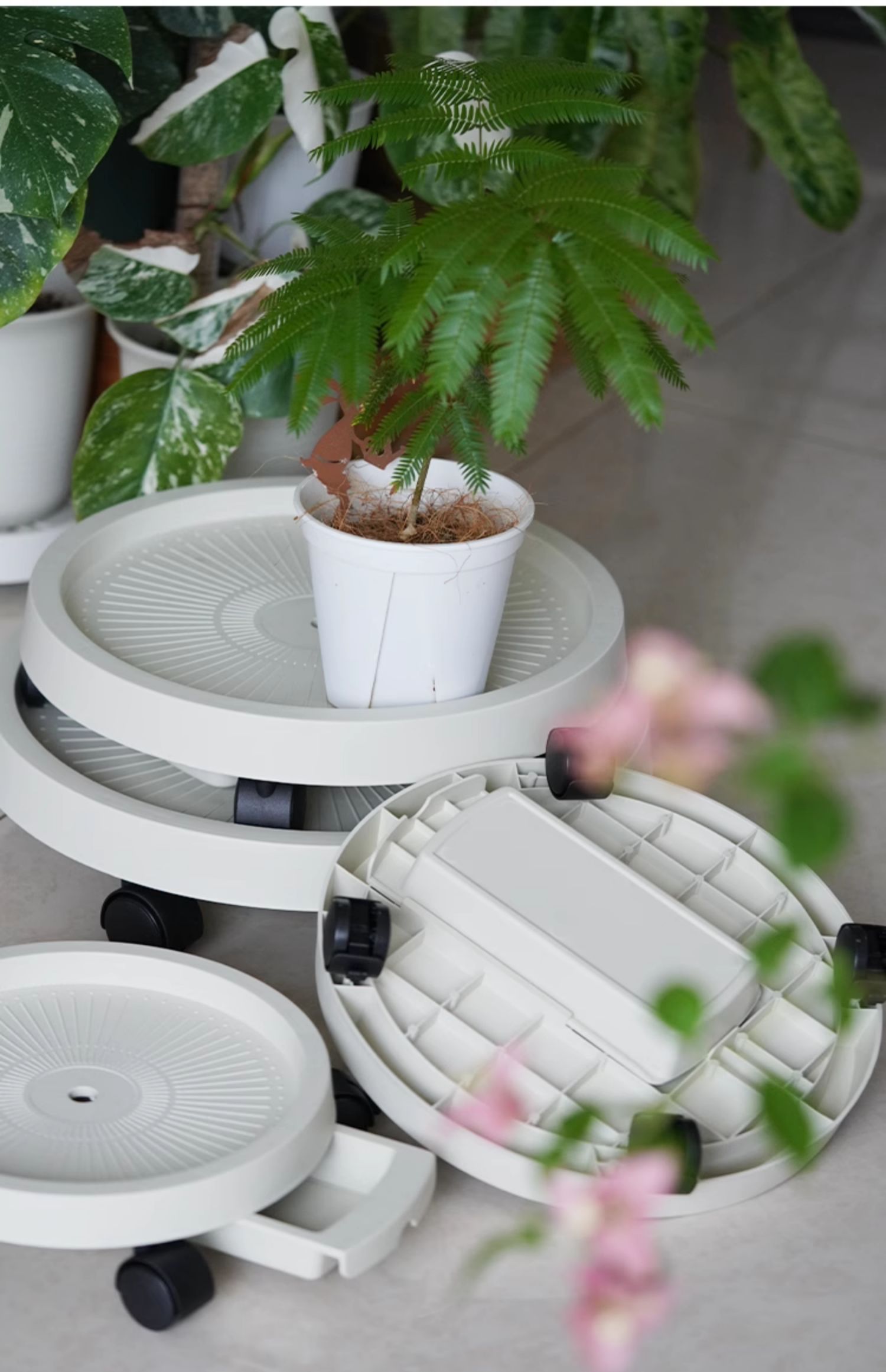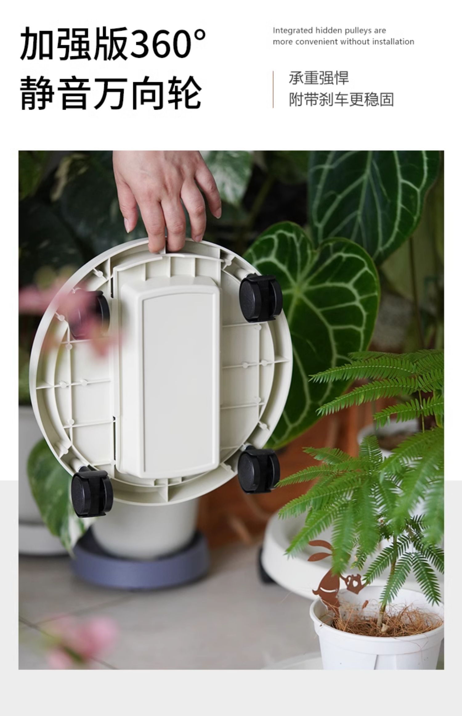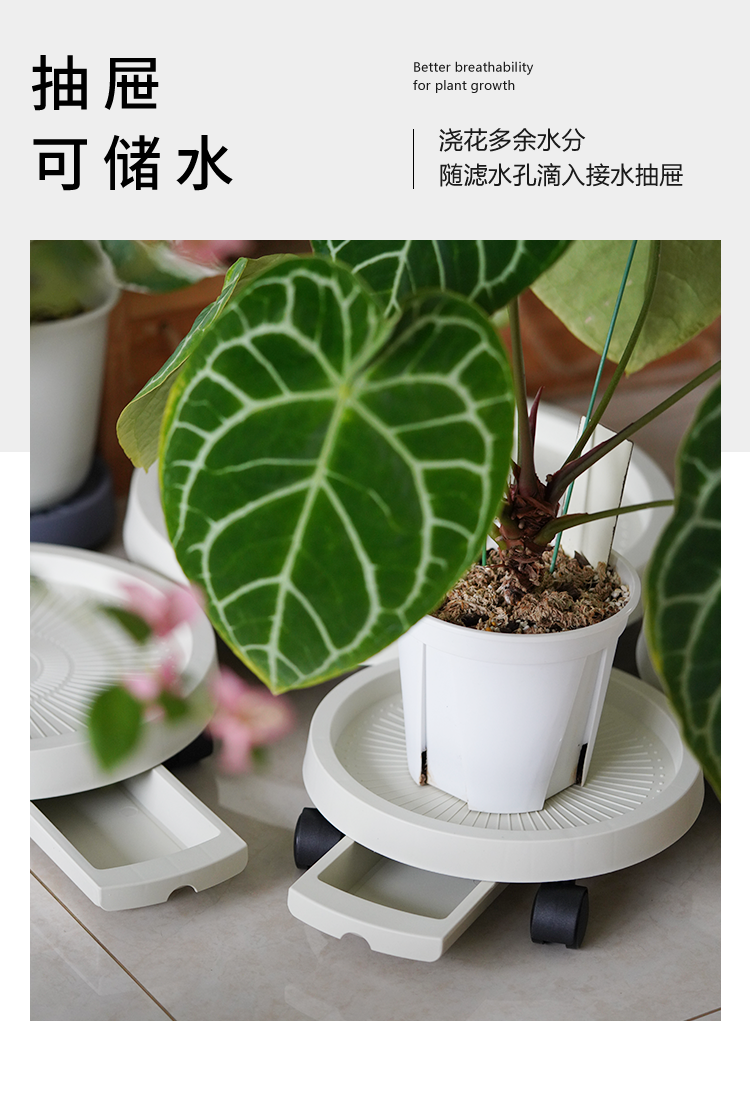 Поддон для мобильного цветочного горшка с тормозным универсальным колесом, поддон для воды, съемная пластиковая утолщенная основа для зеленых растений на колесах