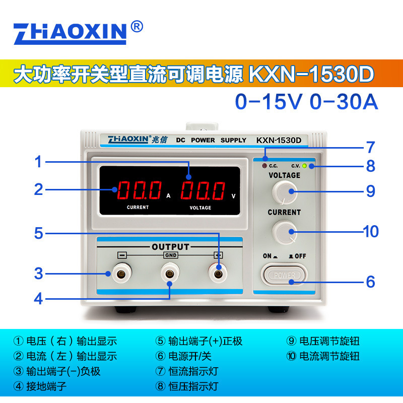 Производитель Zhaoxin напрямую поставляет высокомощный регулируемый источник постоянного тока 15 В/30 А-100 А с цифровым источником для тестирования старения.