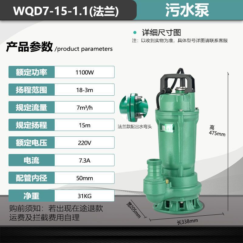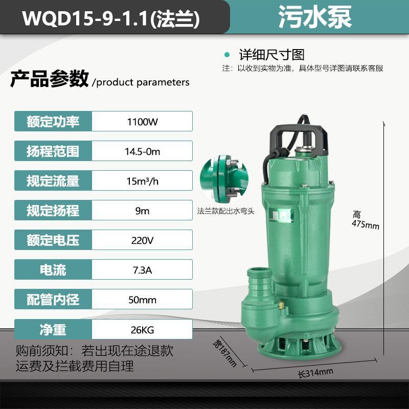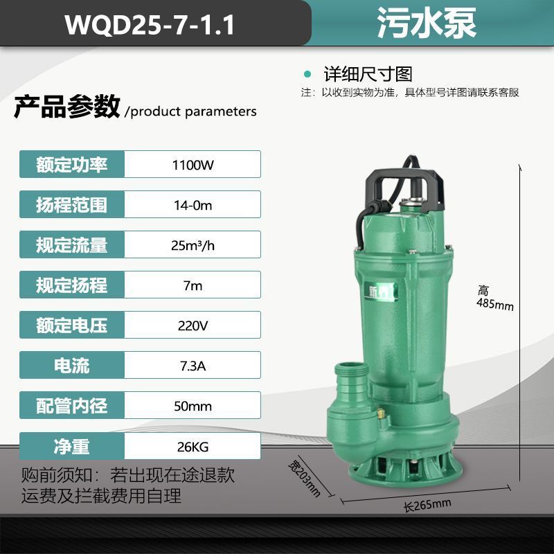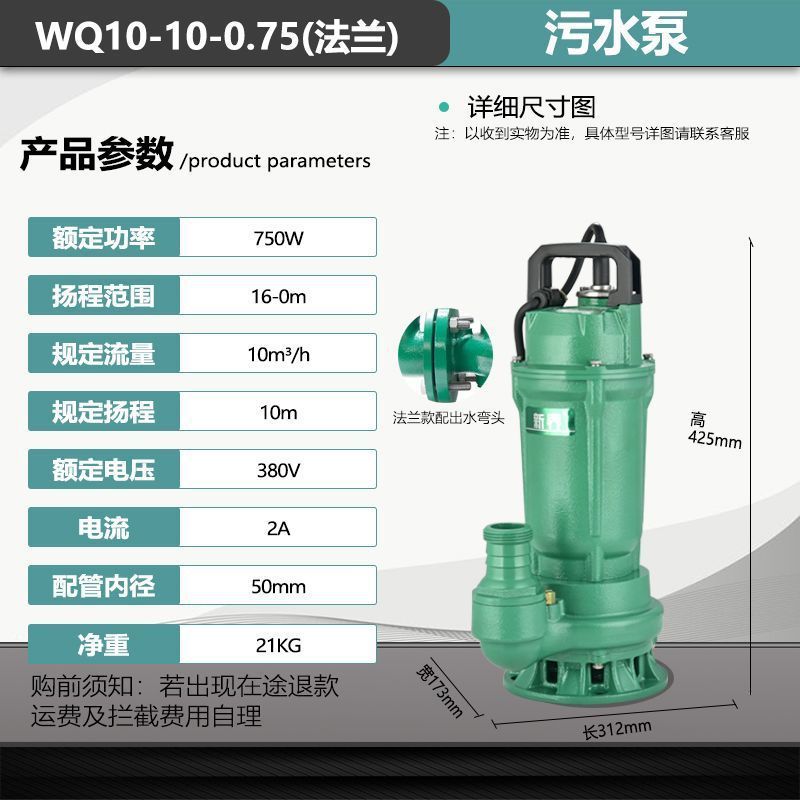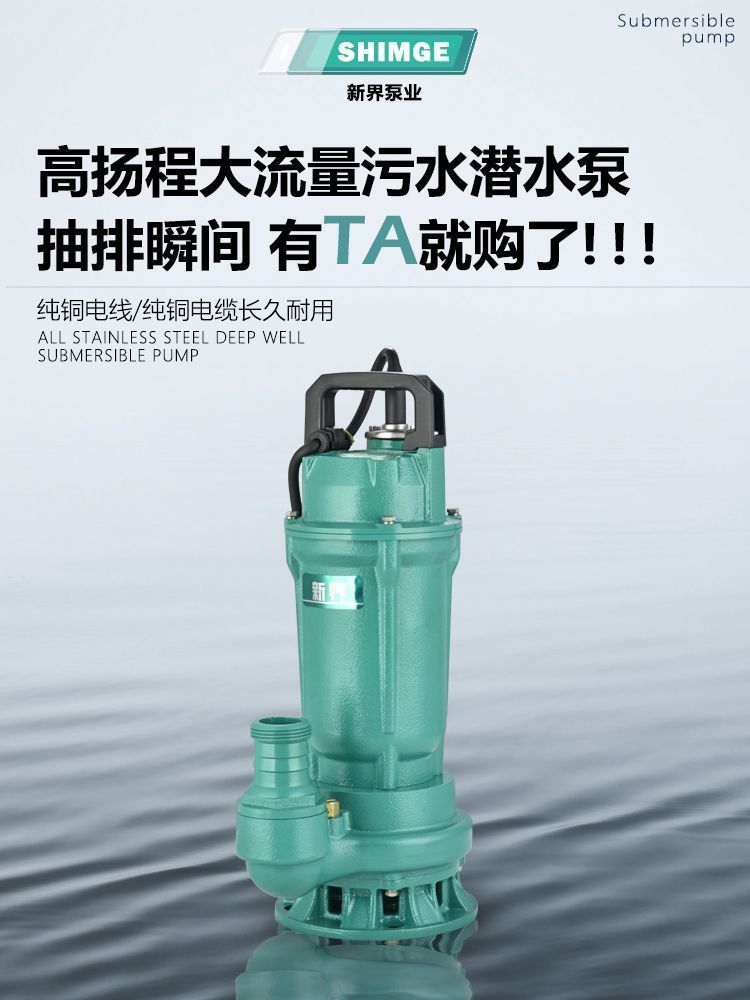 Насос для сточных вод New Territories WQ, не засоряющийся насос для сточных вод, бытовой погружной насос, шламовый насос с большим расходом, насос для септика