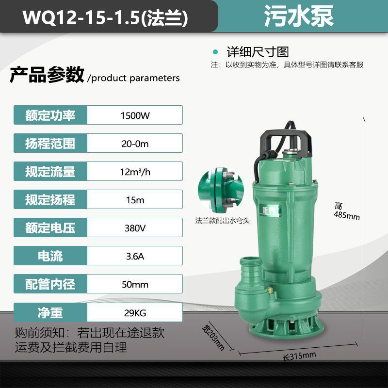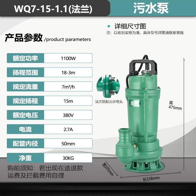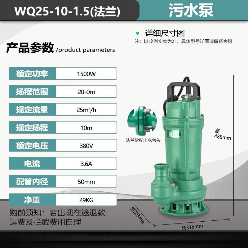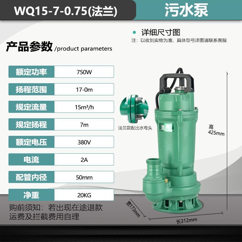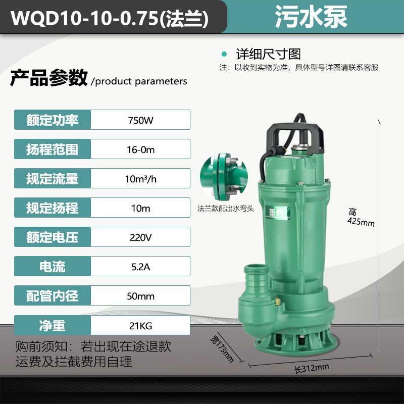 Насос для сточных вод New Territories WQ, не засоряющийся насос для сточных вод, бытовой погружной насос, шламовый насос с большим расходом, насос для септика