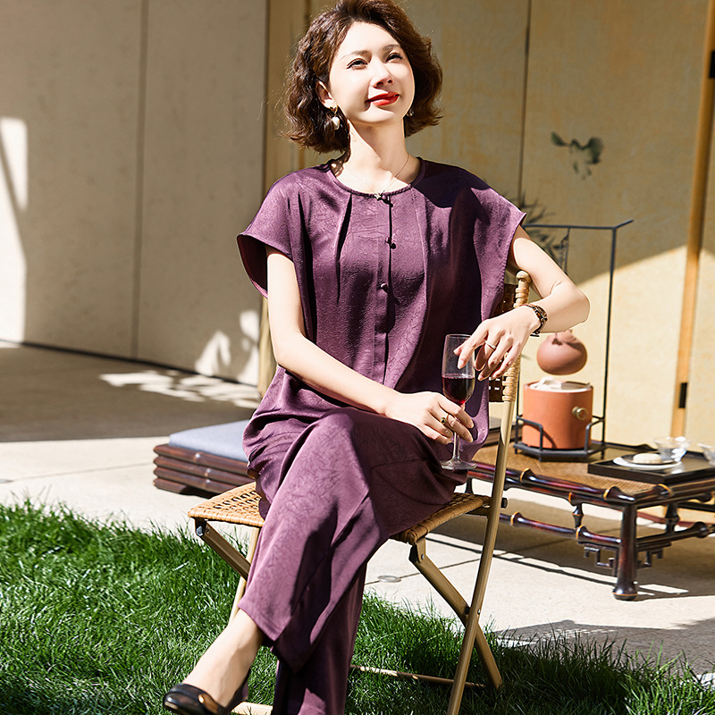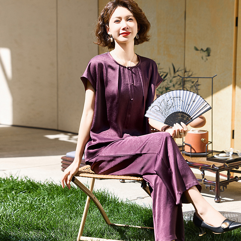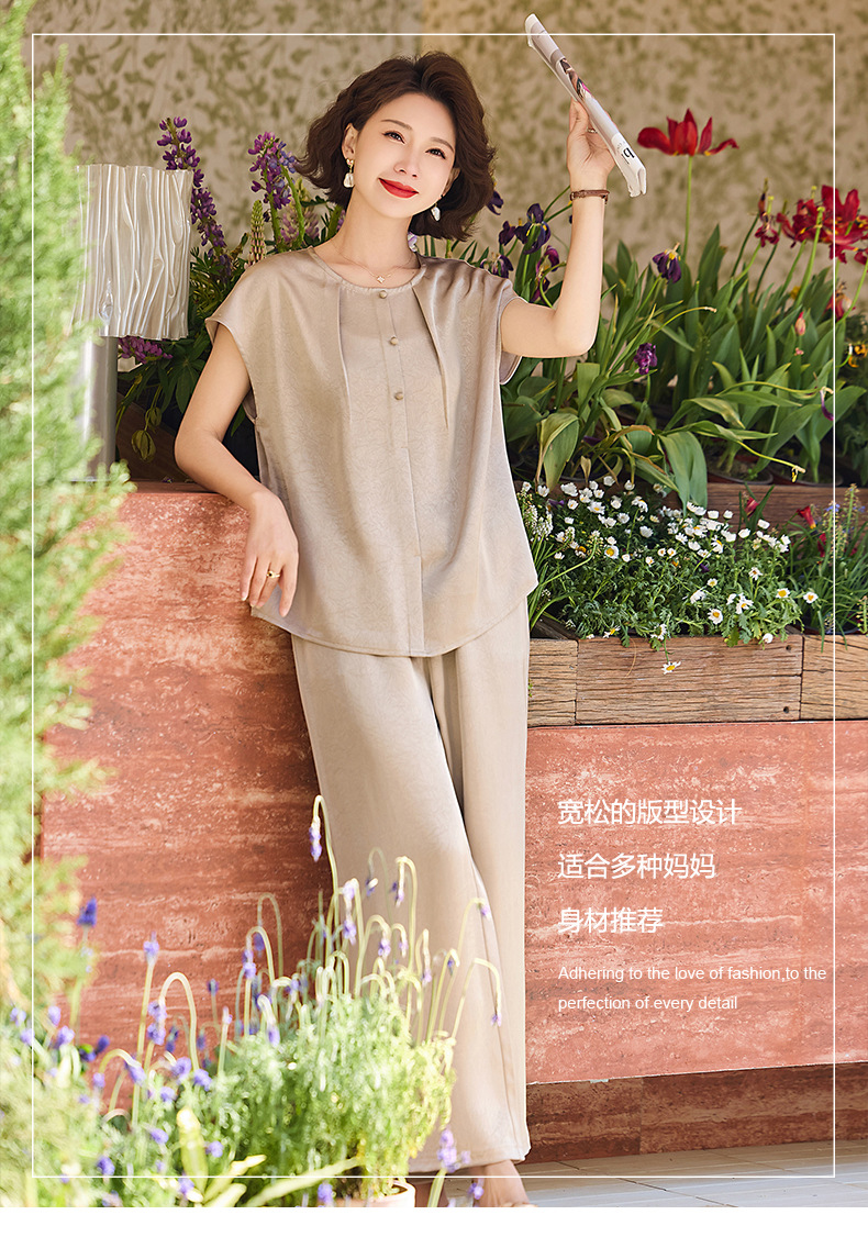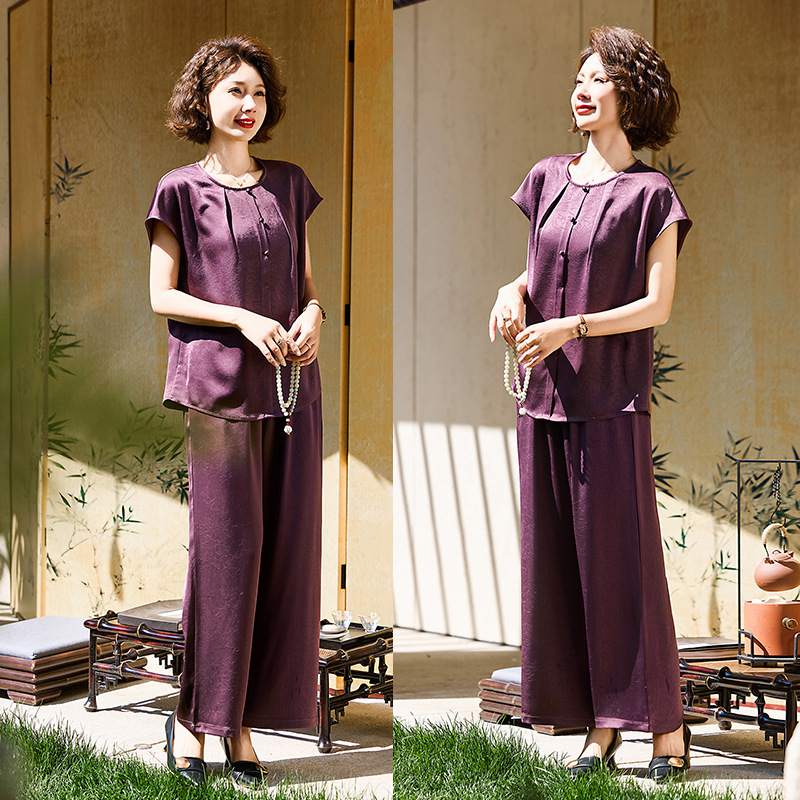 Большой размер повседневный костюм для мамы 50 лет с короткими рукавами