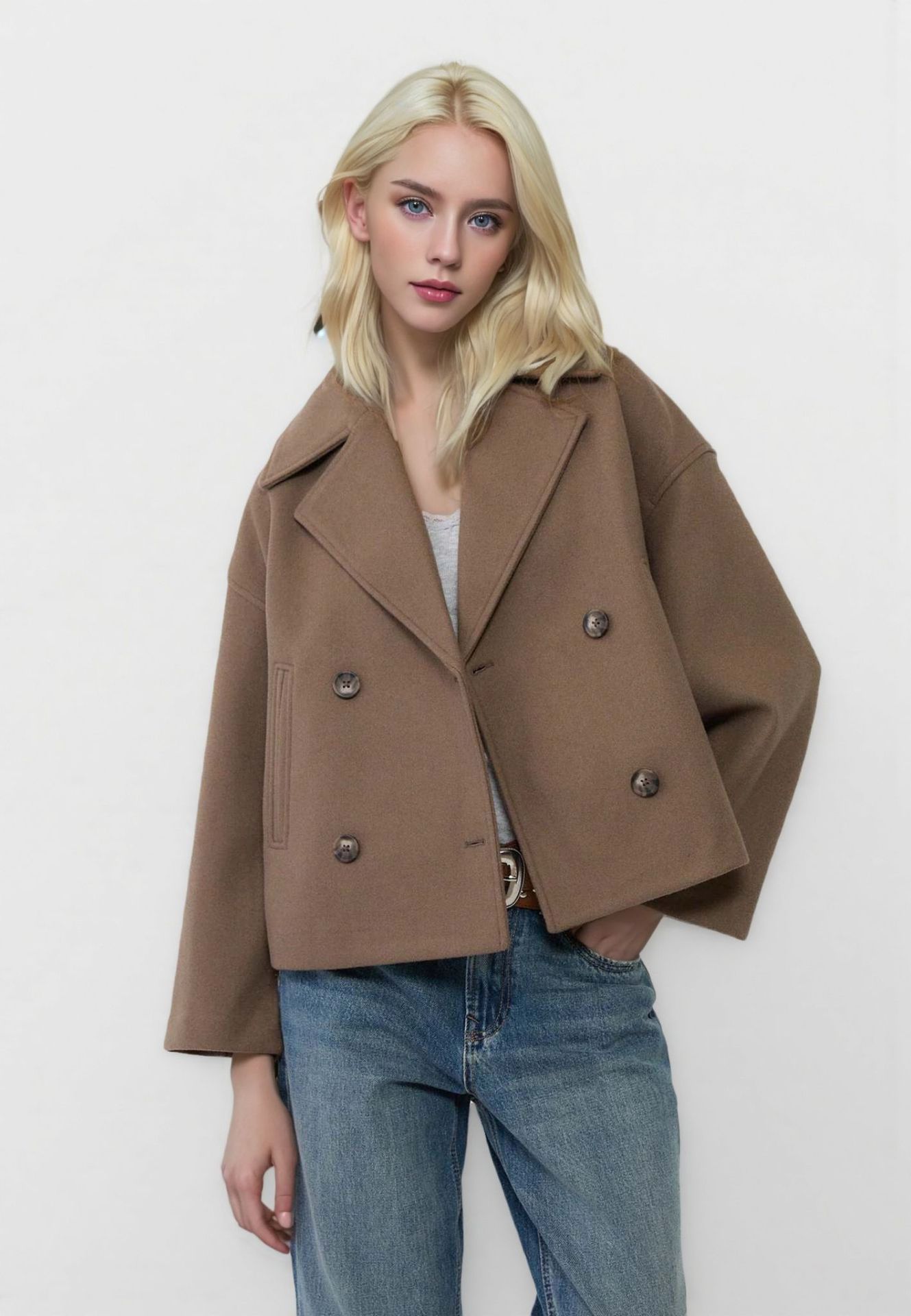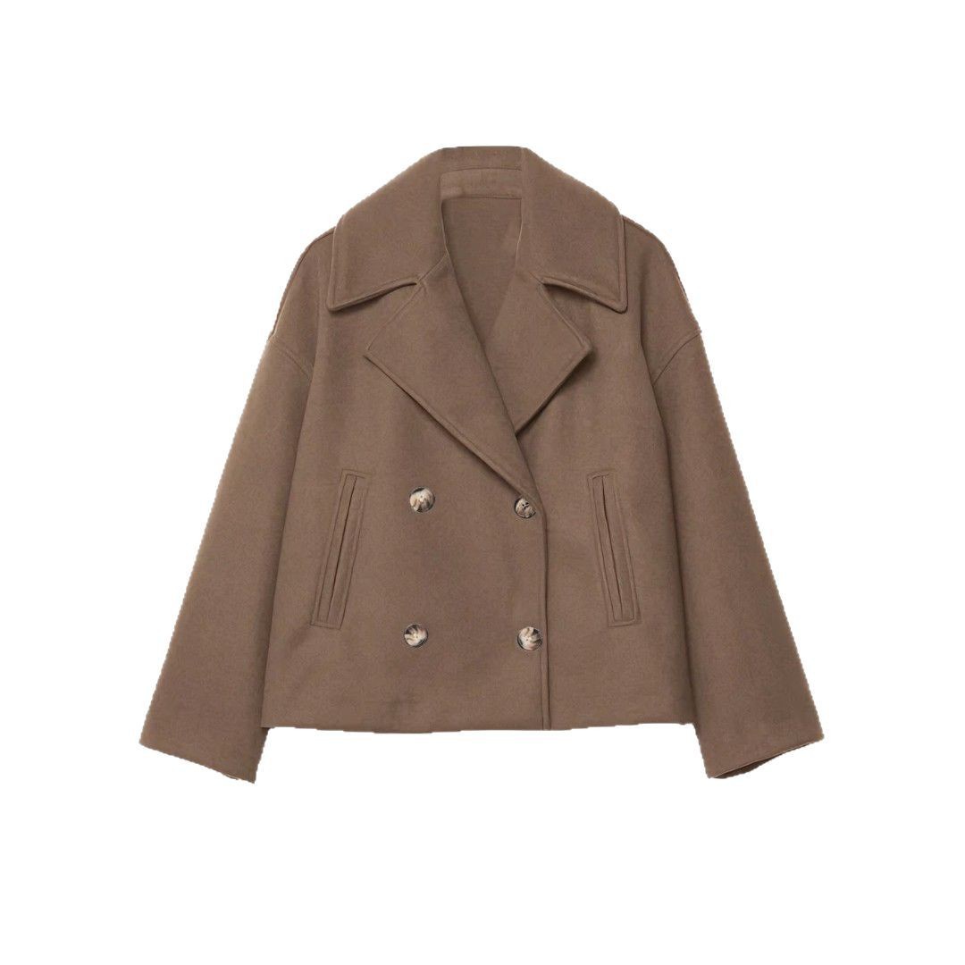 В наличии новое трансграничное внешнеторговое европейское и американское женское осенне-зимнее шерстяное короткое толстое пальто с большим лацканом и длинными рукавами для женщин