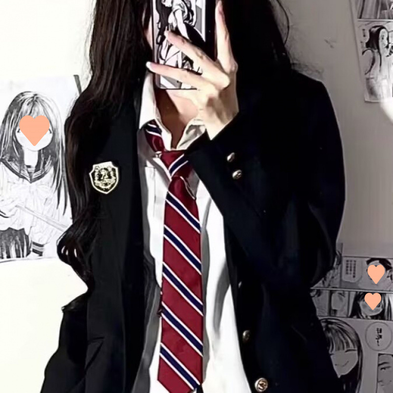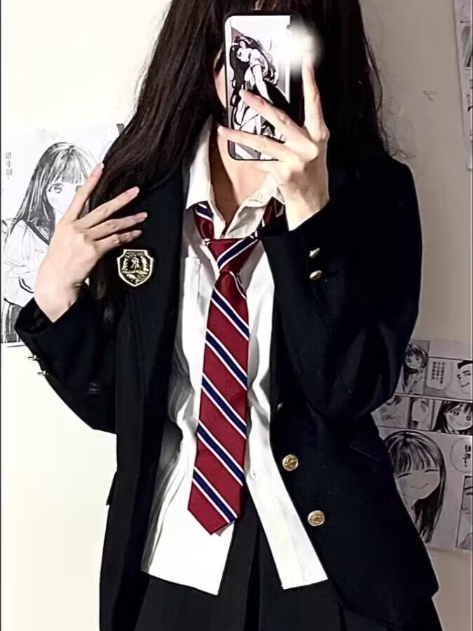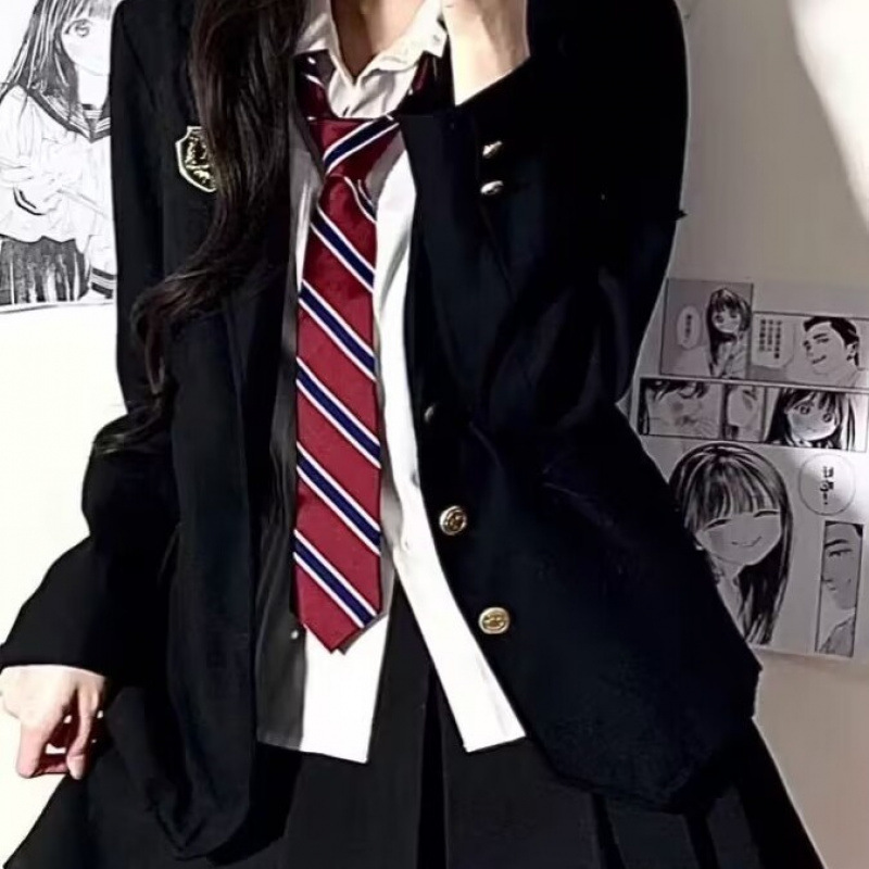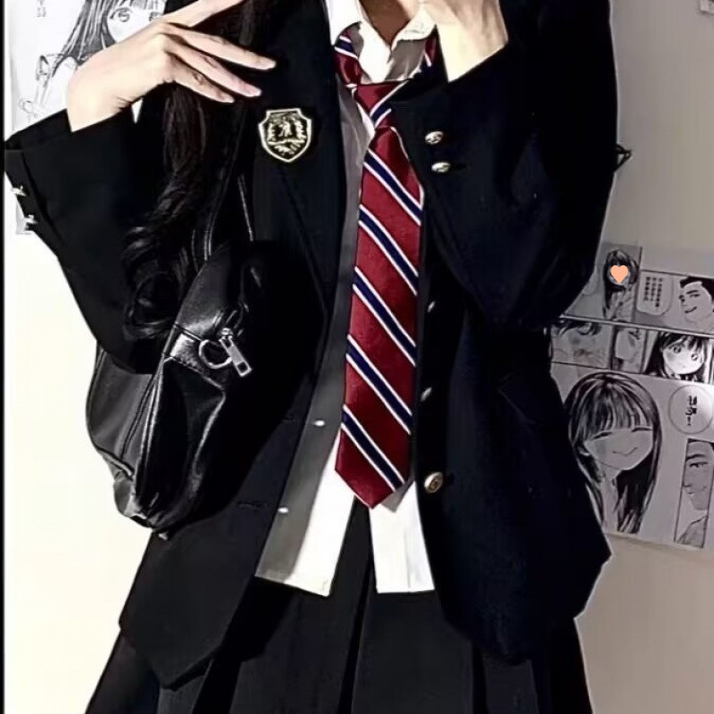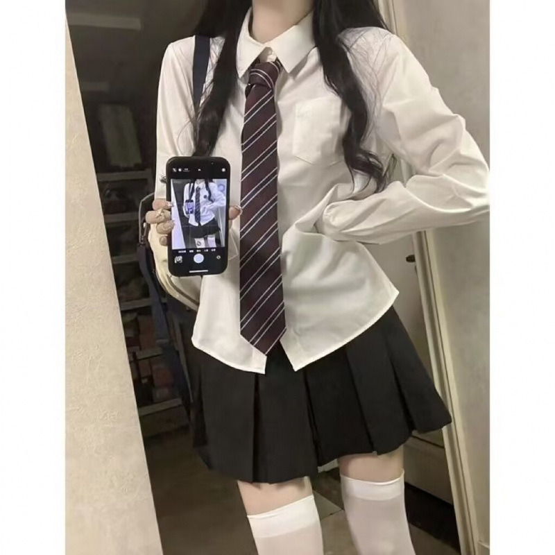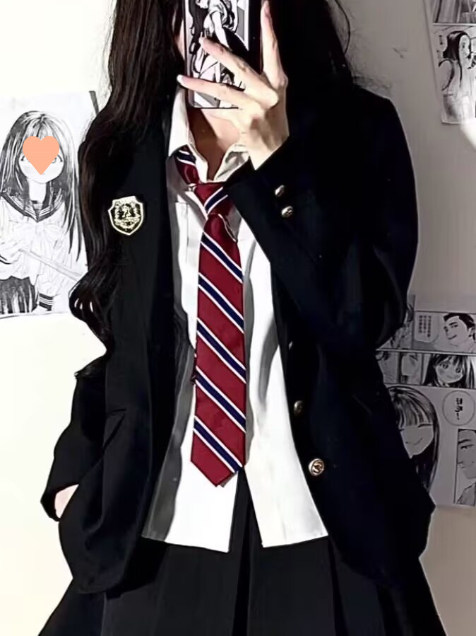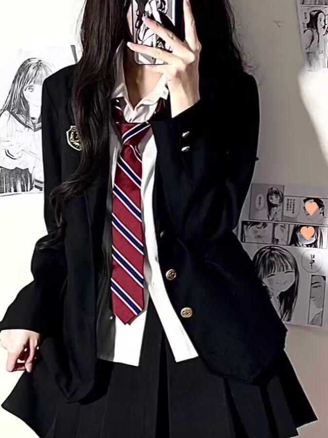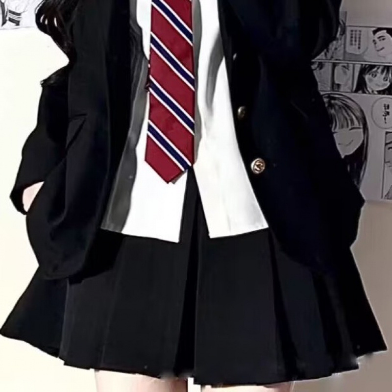 Черная плиссированная юбка [с защитными брюками]; Белая рубашка [с соответствующим галстуком]; Черный пиджак с длинными рукавами [с подкладкой]; Черный костюм + плиссированная юбка [комплект из двух предметов]; Черный костюм + рубашка + галстук [комплект из трех предметов]; Костюм + рубашка + галстук + юбка [комплект из четырех предметов]