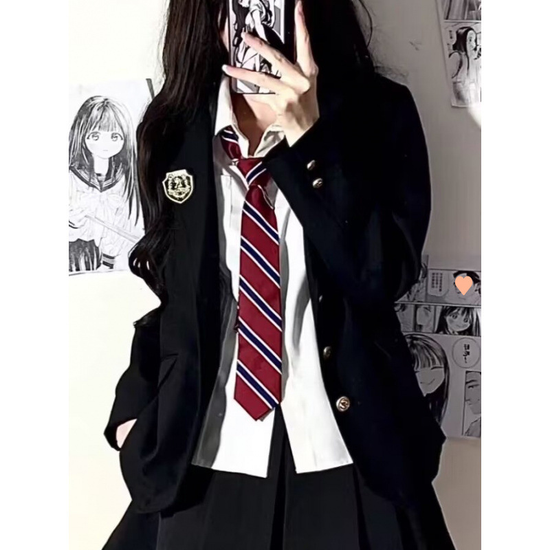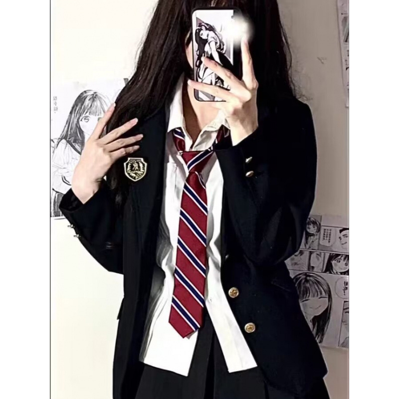 Jk униформа пиджак рубашка плиссированная юбка набор школьницы вышивка