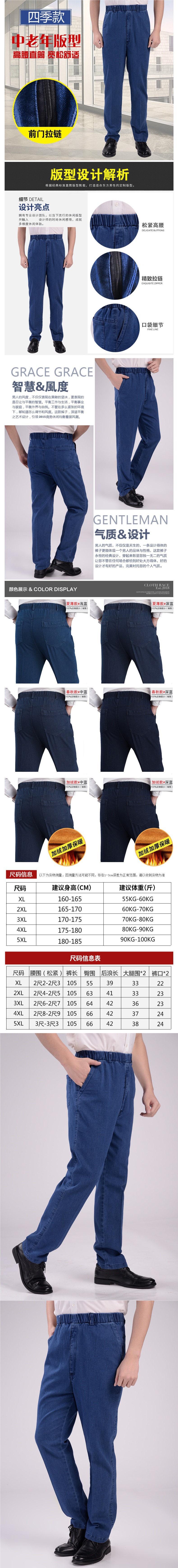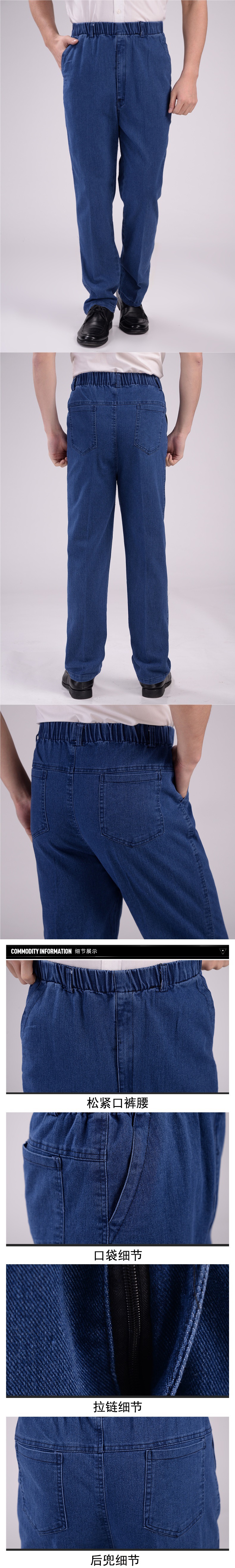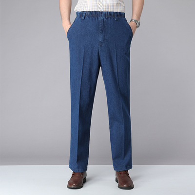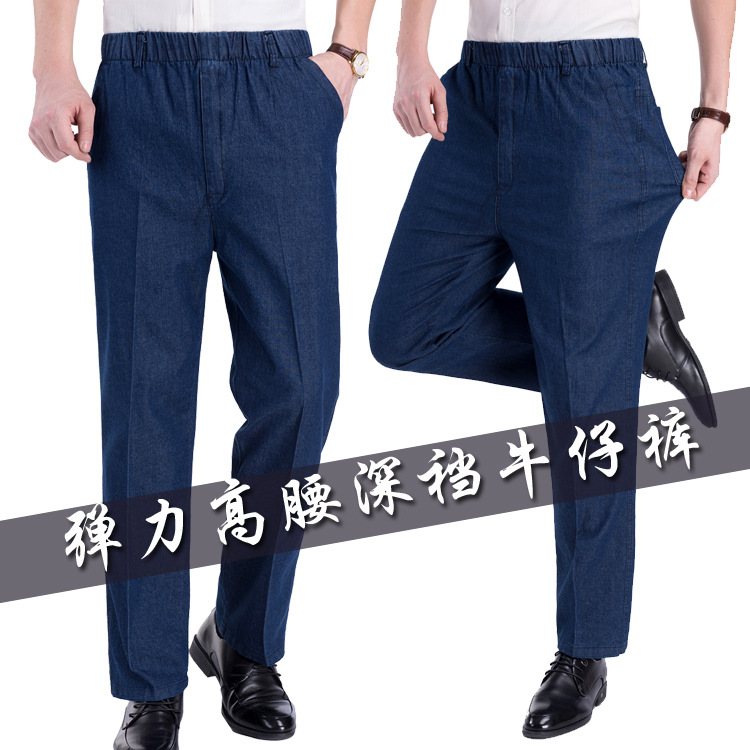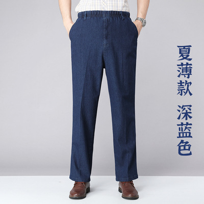 Мужчины среднего и пожилого возраста джинсы весной, летом и осенью тонкие папы эластички повседневные мужские брюки среднего возраста свободные с высокой талией