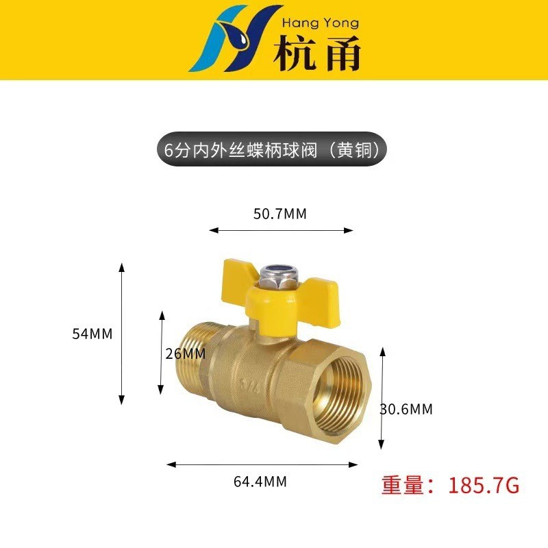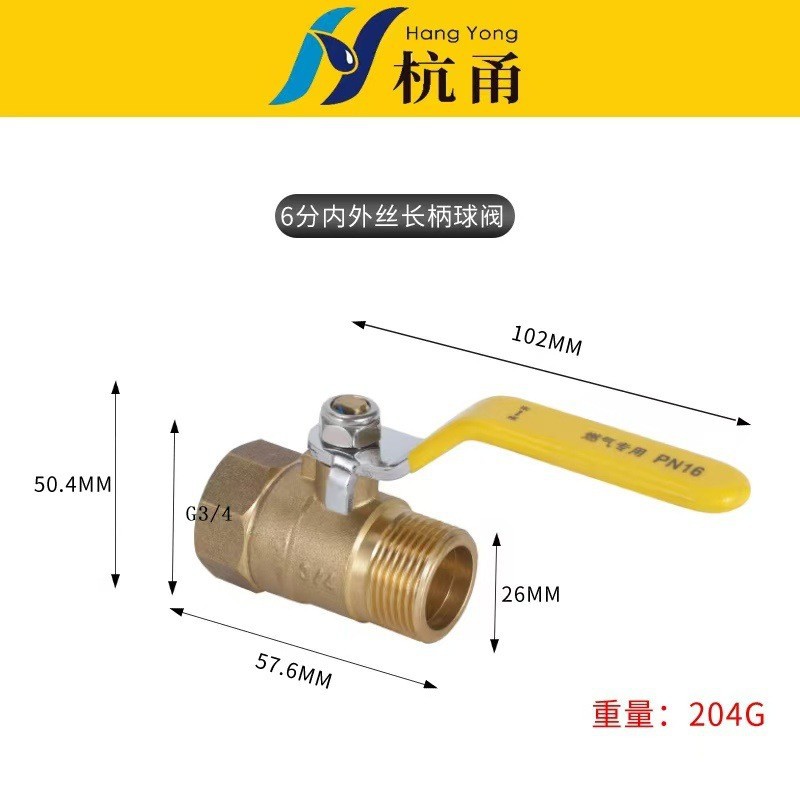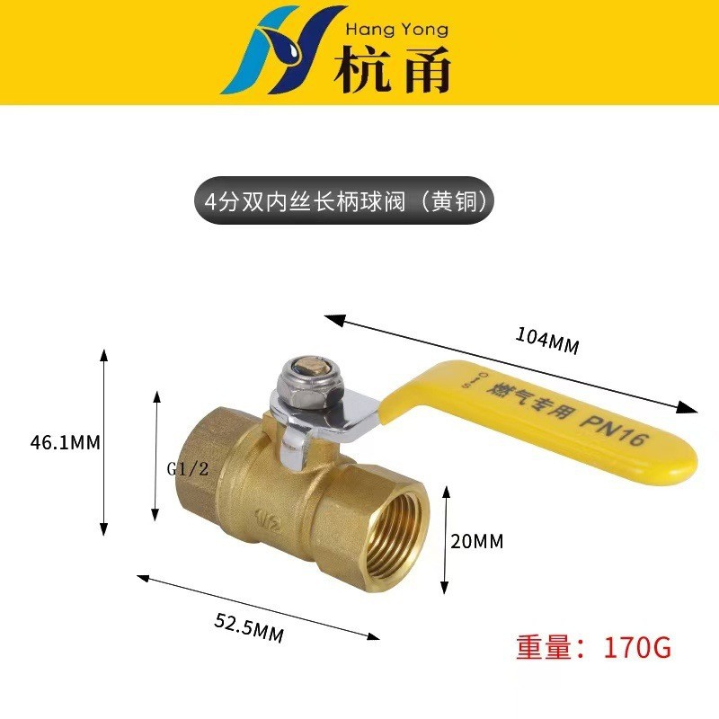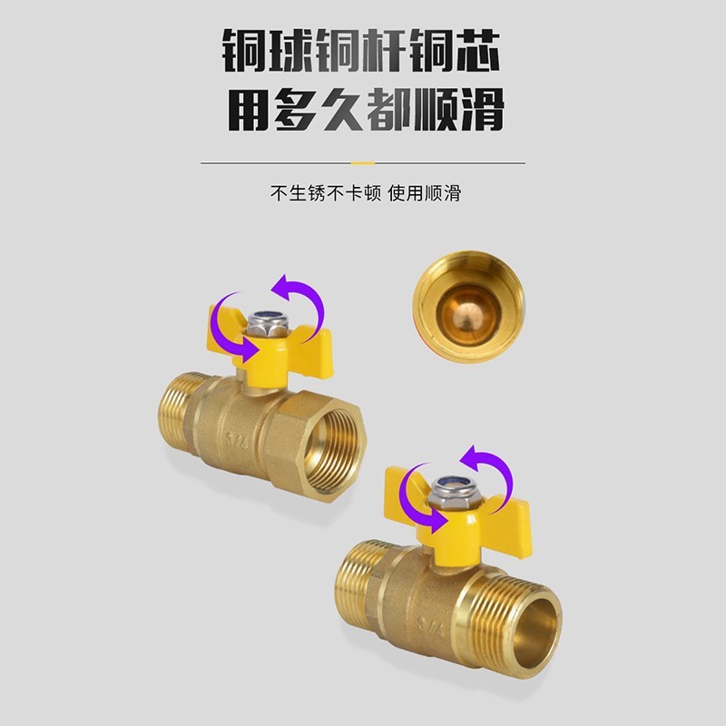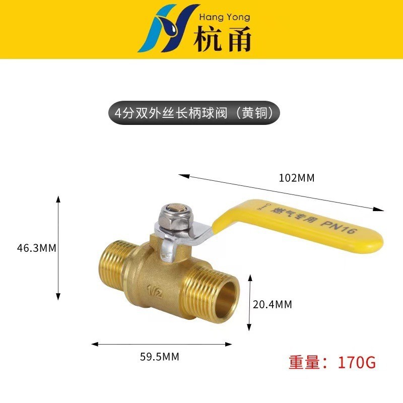 4-точечный 6-точечный утолщенный латунный шаровой кран с длинной ручкой, ручка-бабочка, внутренняя и внешняя резьба, газовый клапан, соединение газопровода природного газа, прямое соединение