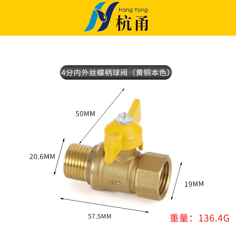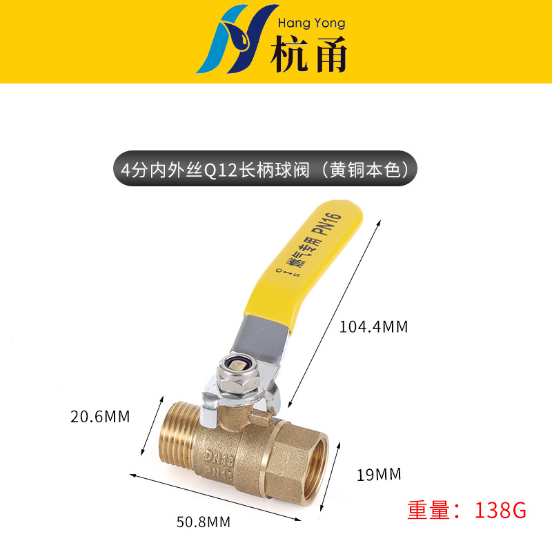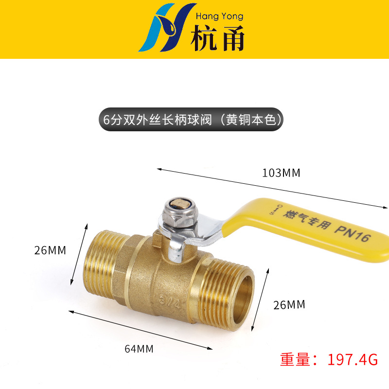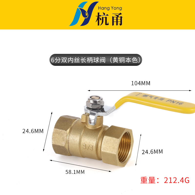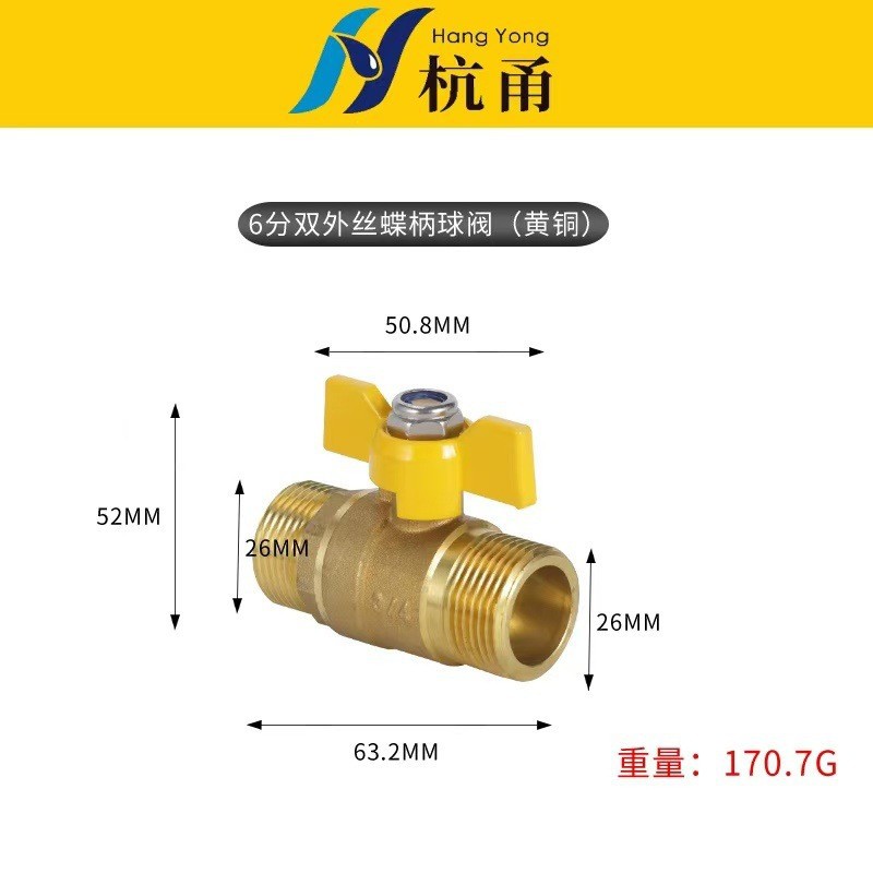 4-точечный 6-точечный утолщенный латунный шаровой кран с длинной ручкой, ручка-бабочка, внутренняя и внешняя резьба, газовый клапан, соединение газопровода природного газа, прямое соединение