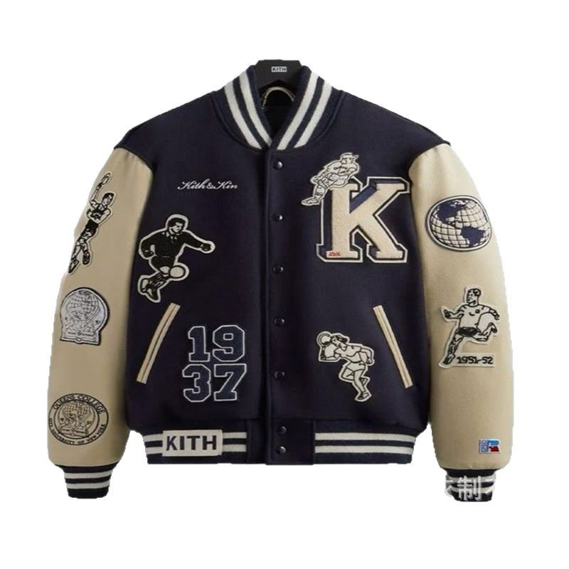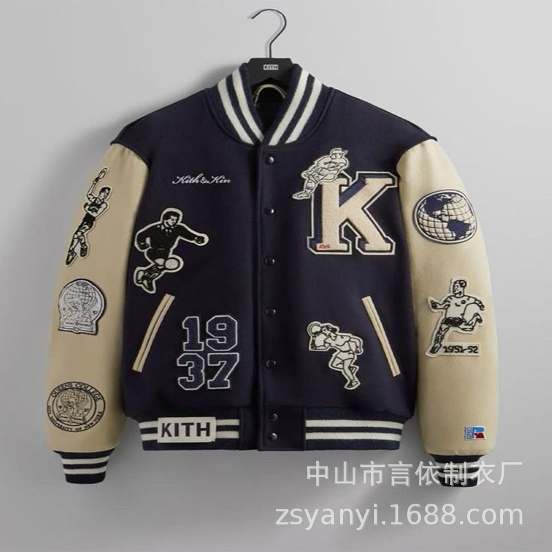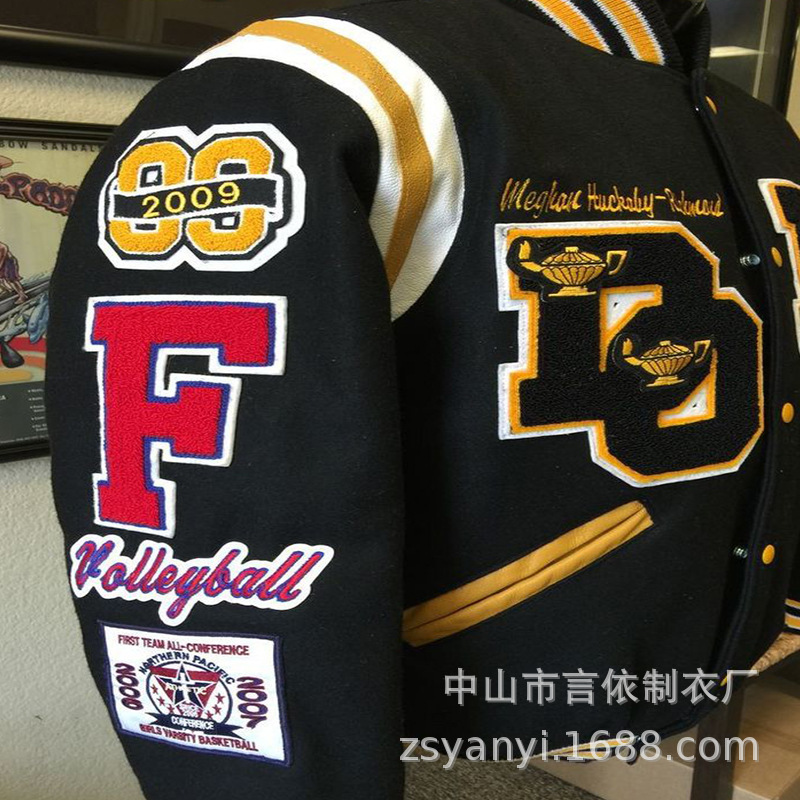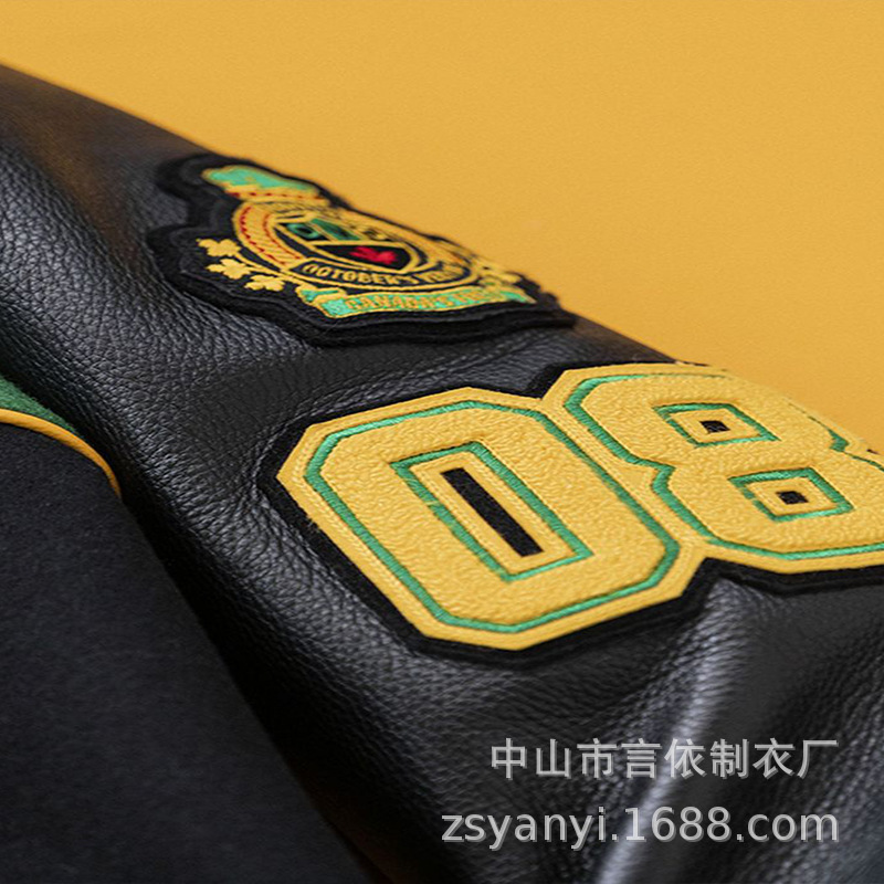 Бейсбольная куртка из тяжелой шерстяной кожи с вышивкой полотенца на осень и зиму.