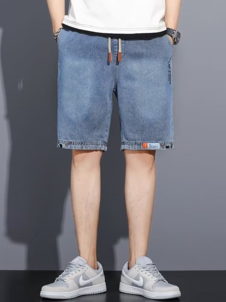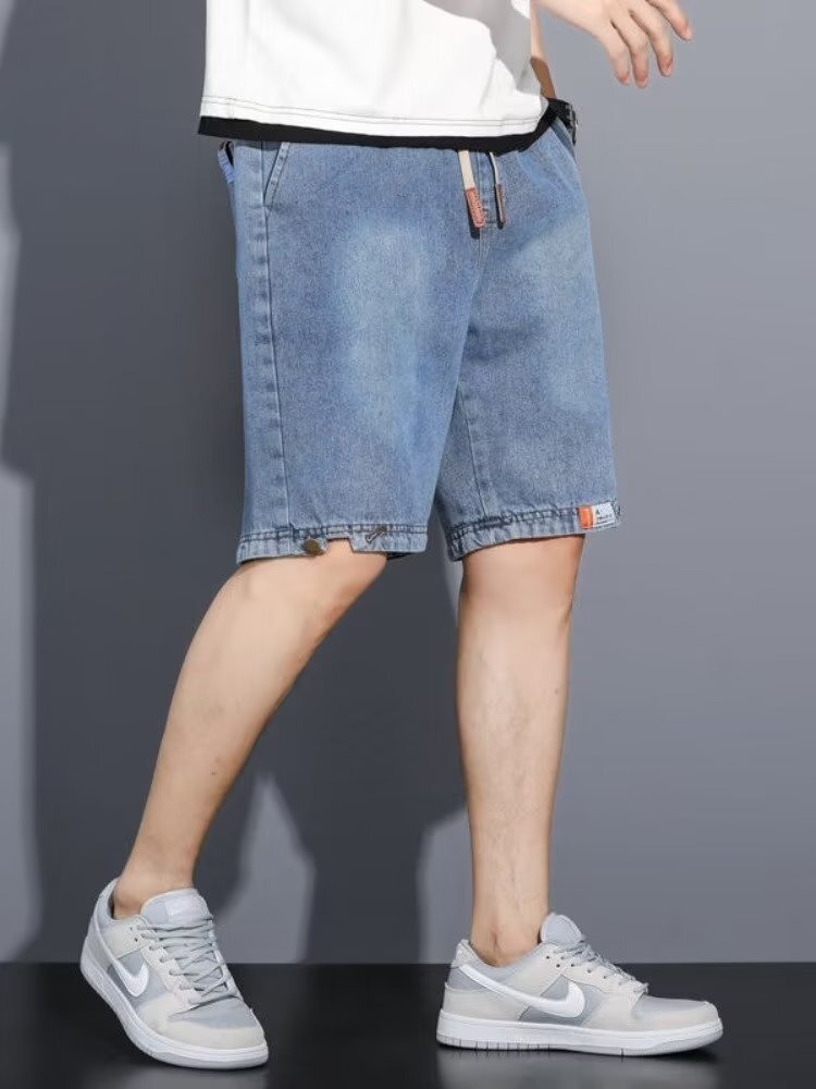 Джинсовые шорты от производителя, мужские укороченные брюки модного гонконгского бренда, свободные универсальные прямые брюки в стиле ретро, модные и красивые