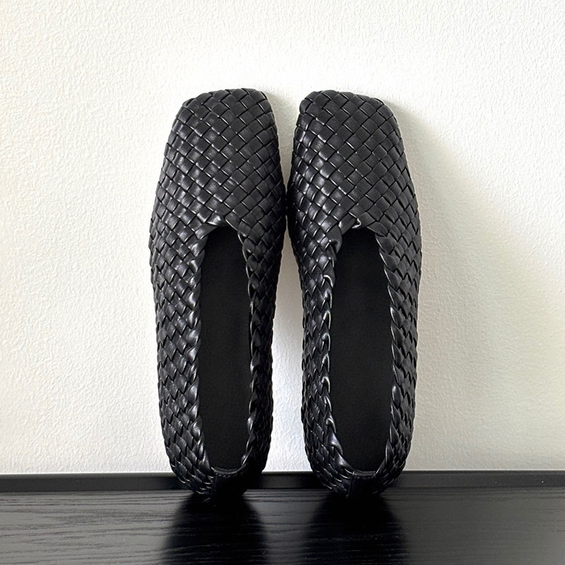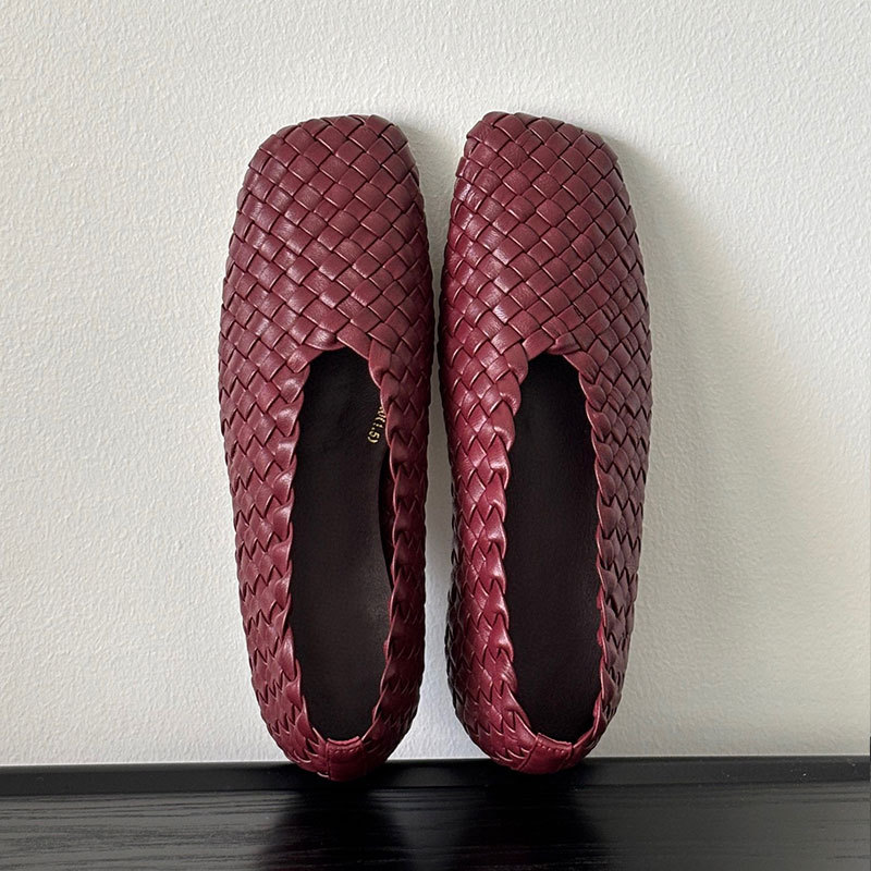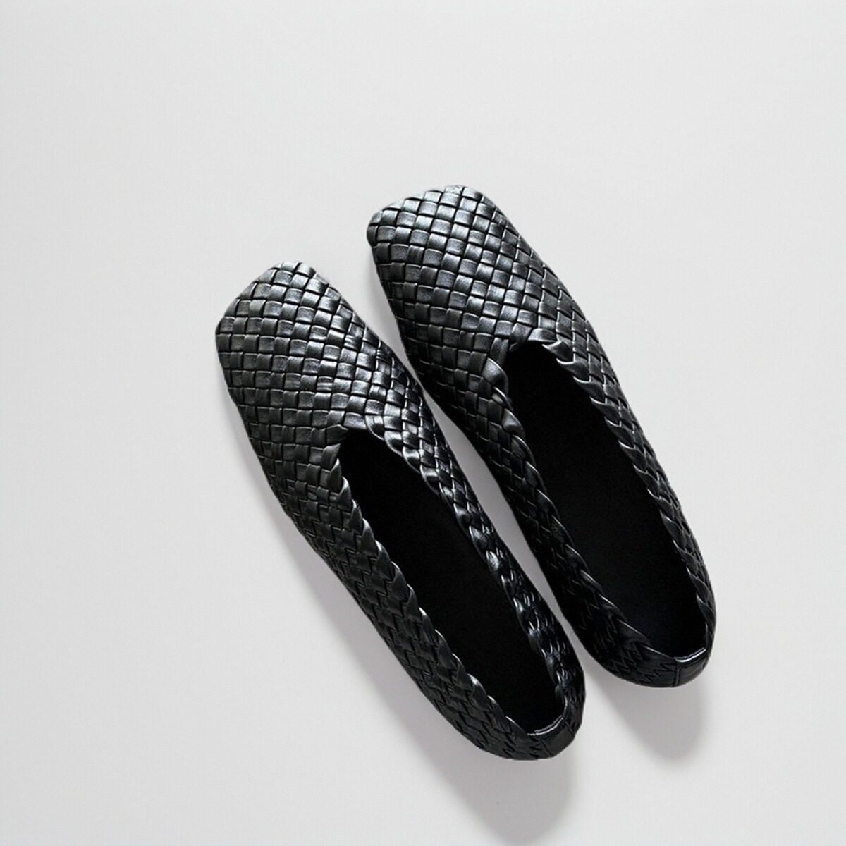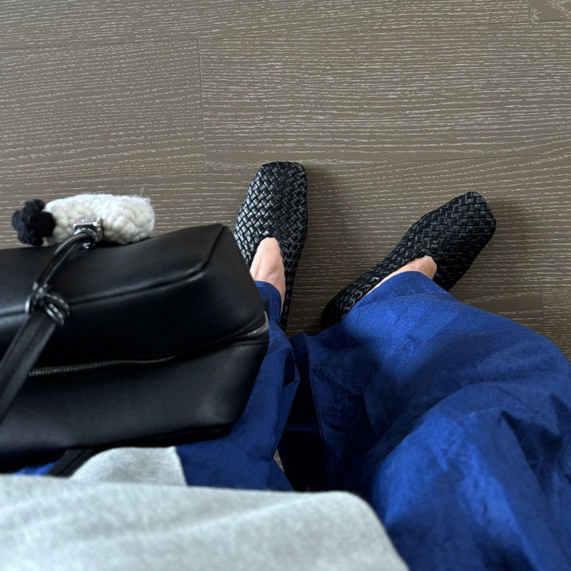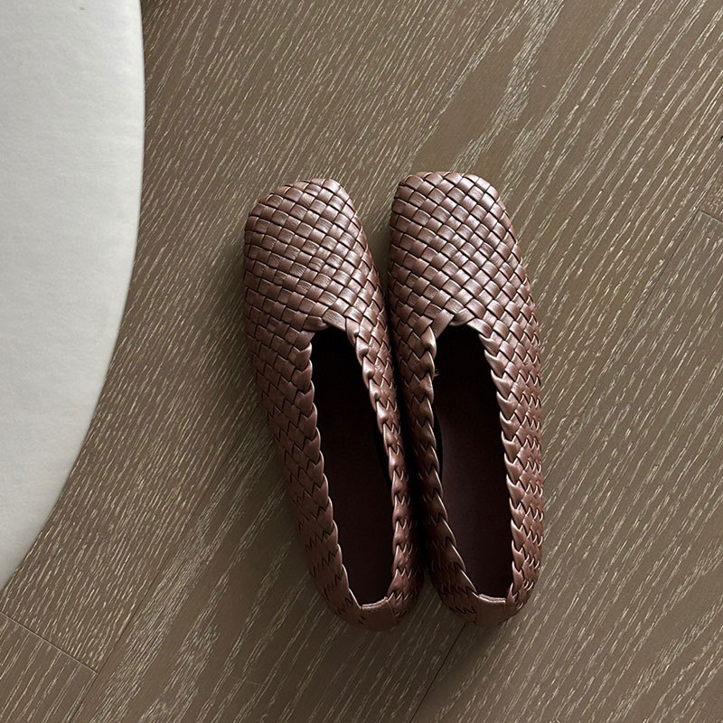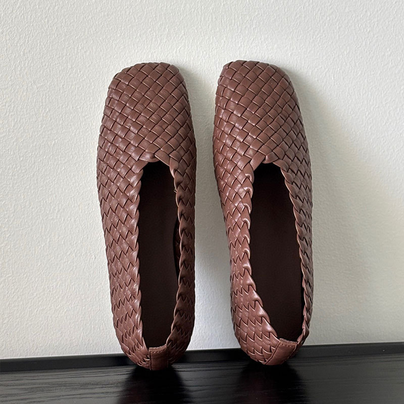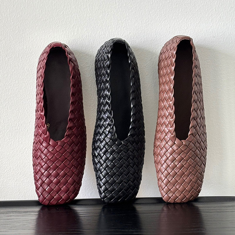 2025 весна и лето новые женские туфли высокого класса плоские каблуки с квадратными головками из плетеных неглубоких туфель