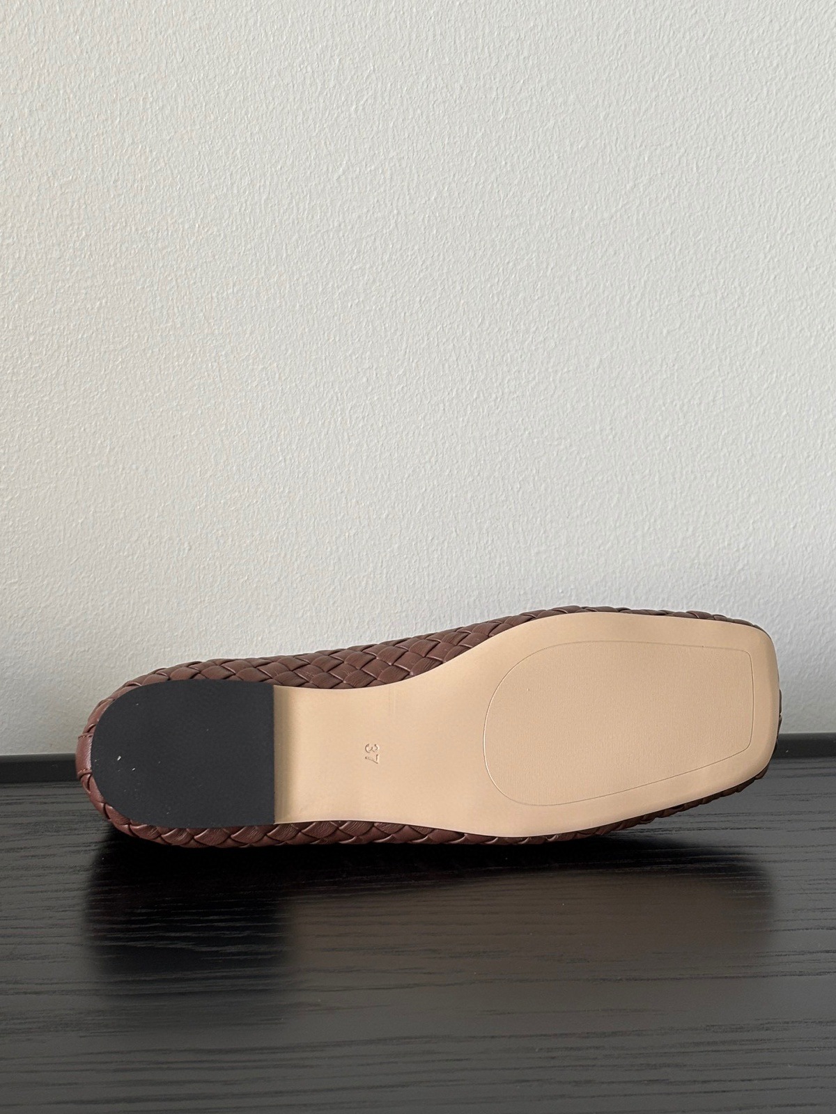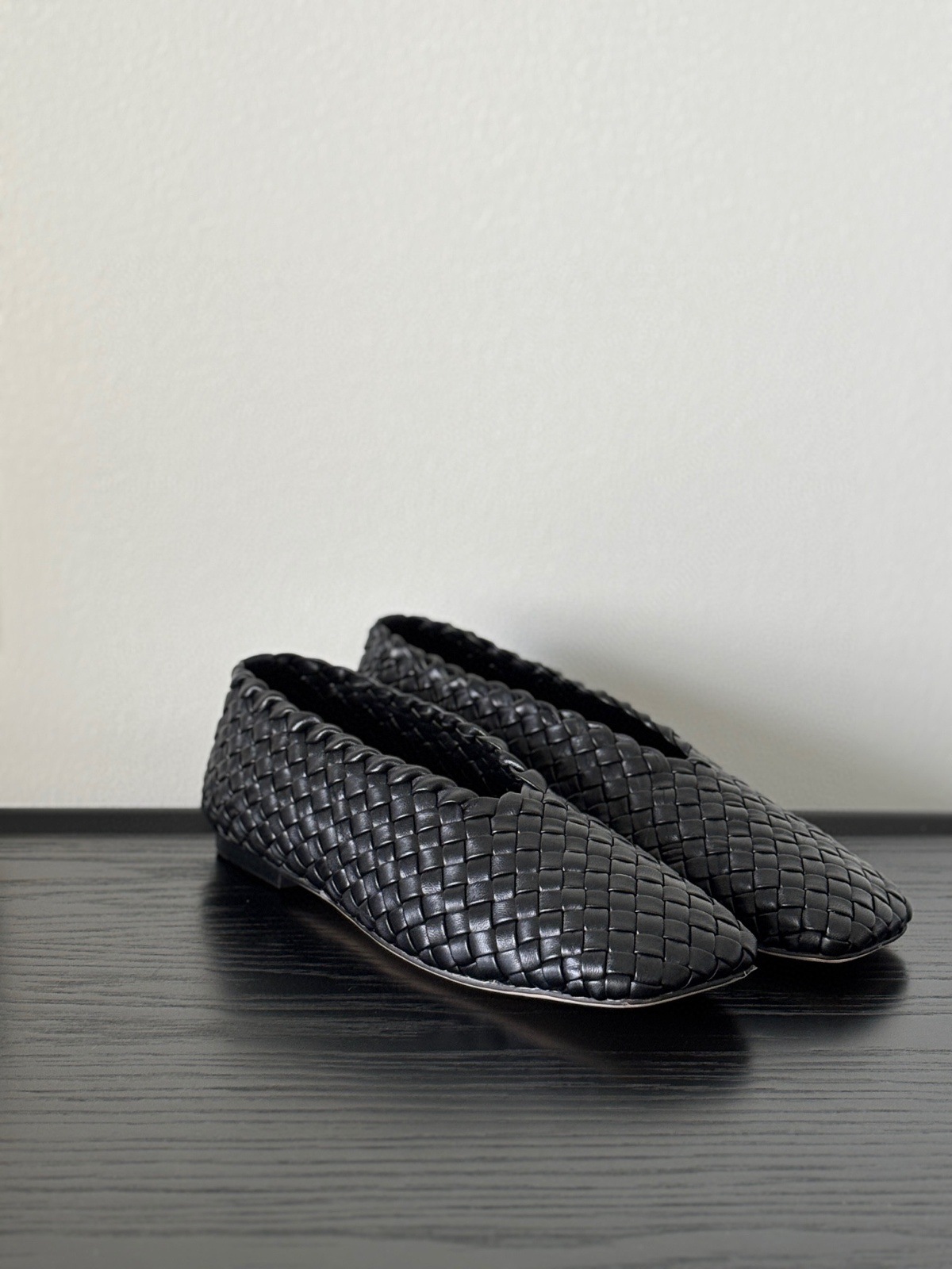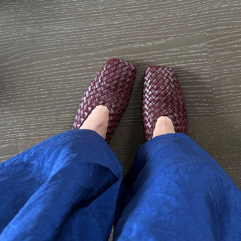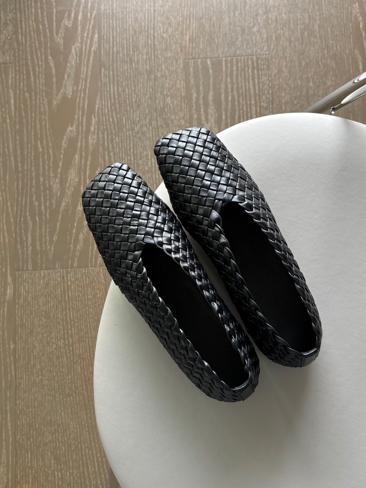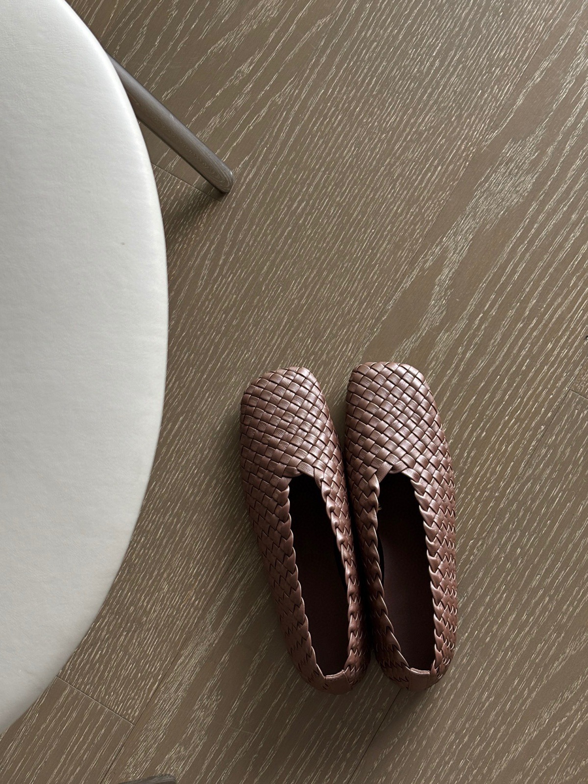 2025 весна и лето новые женские туфли высокого класса плоские каблуки с квадратными головками из плетеных неглубоких туфель