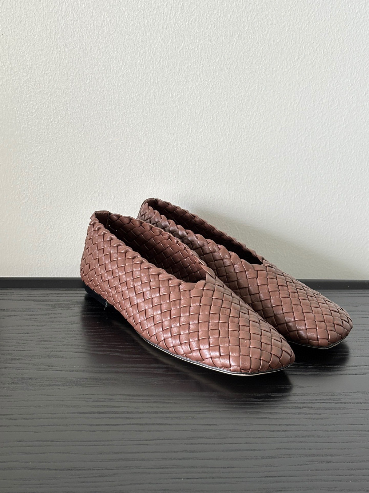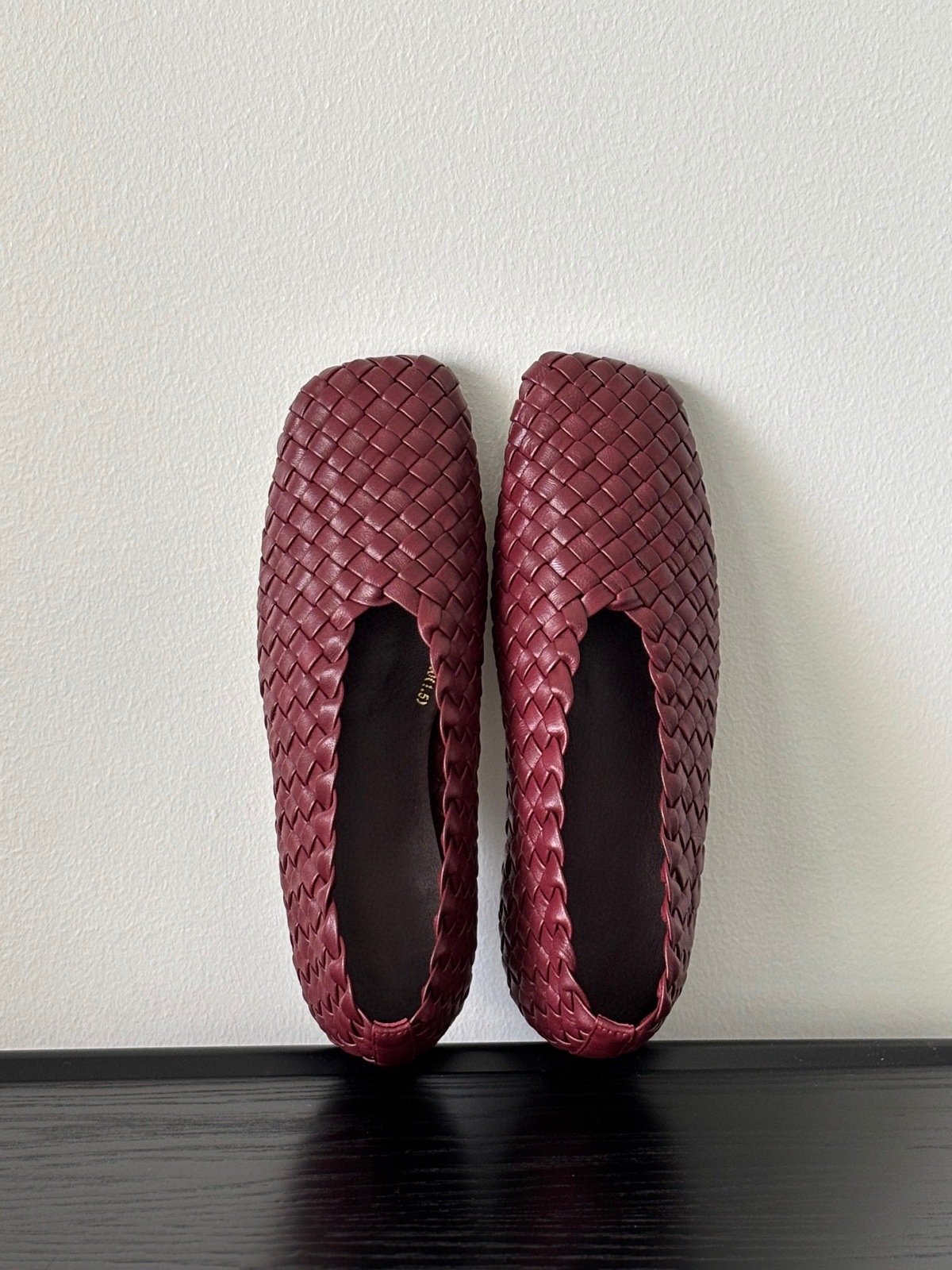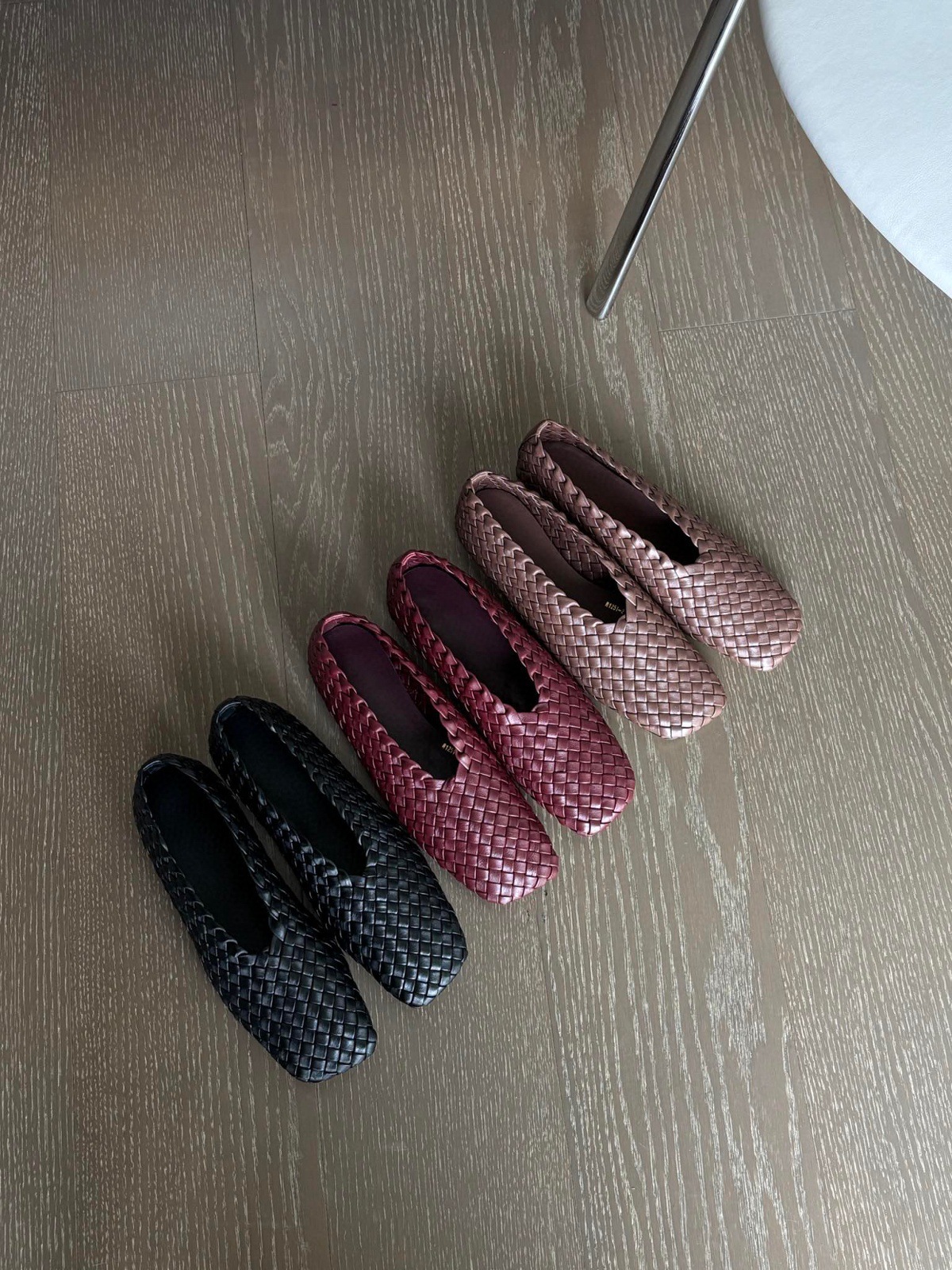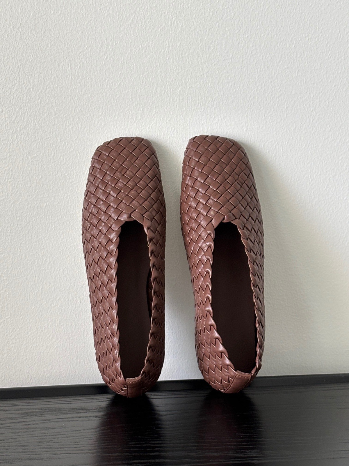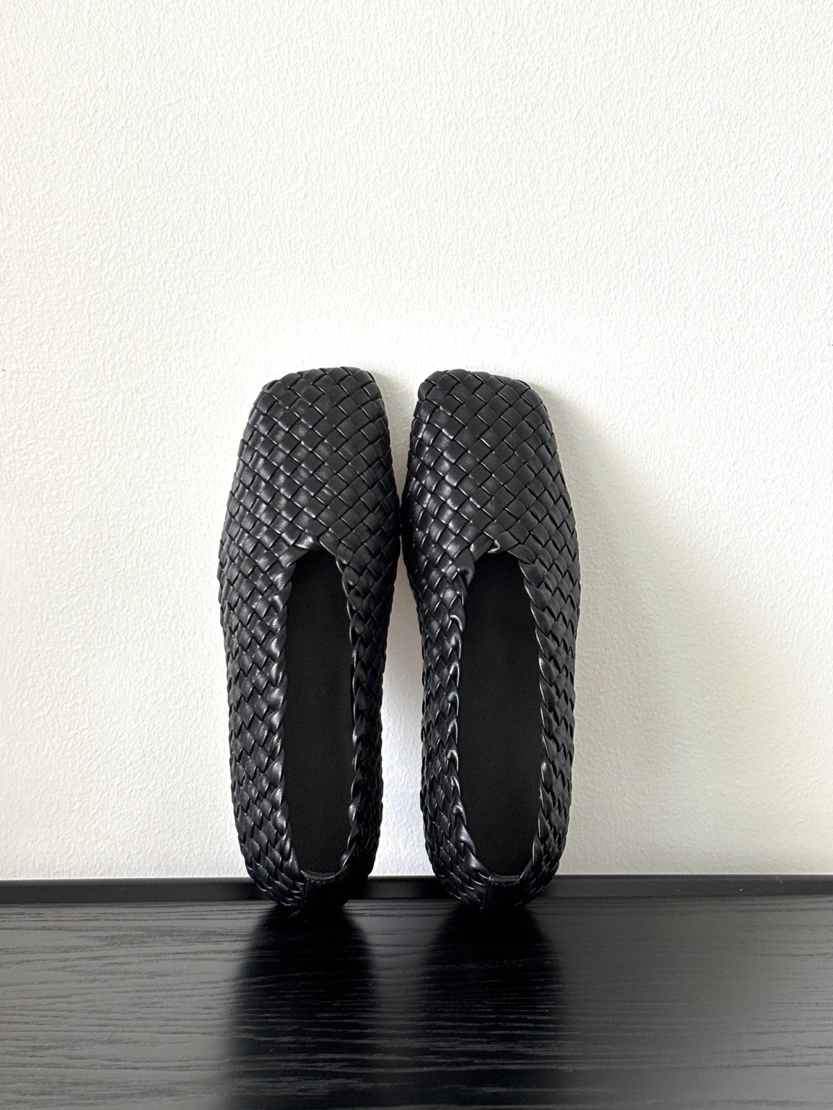 2025 весна и лето новые женские туфли высокого класса плоские каблуки с квадратными головками из плетеных неглубоких туфель