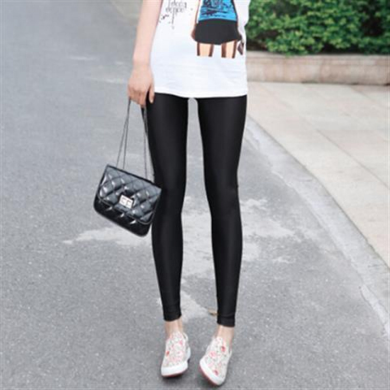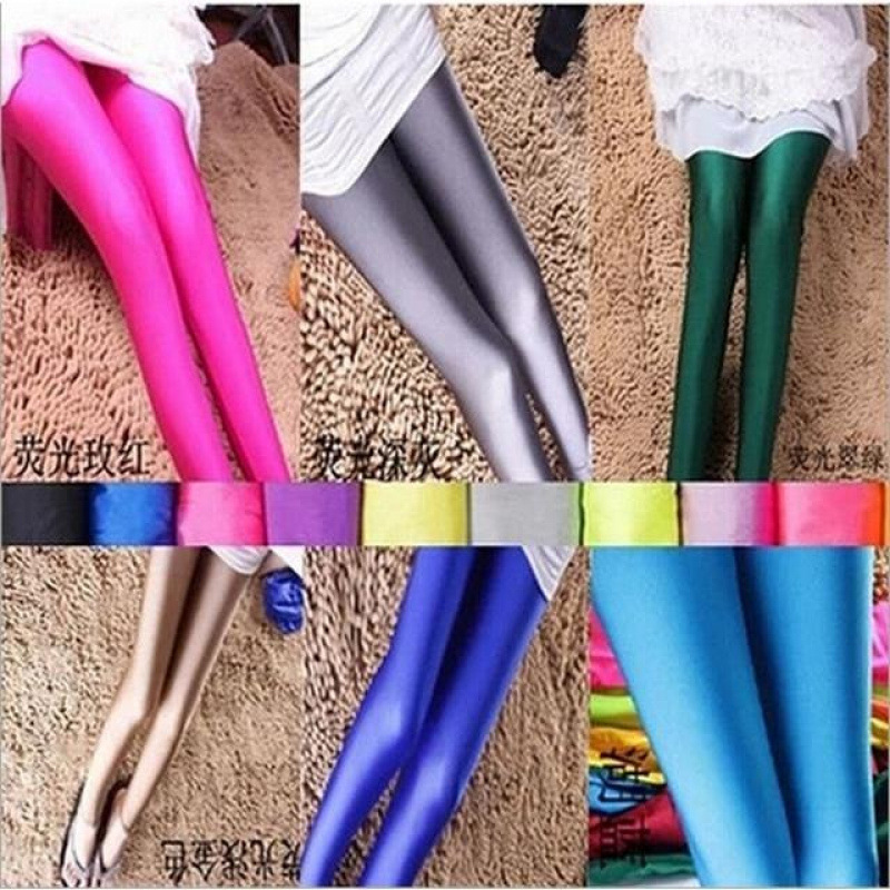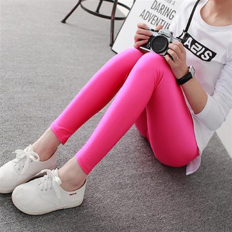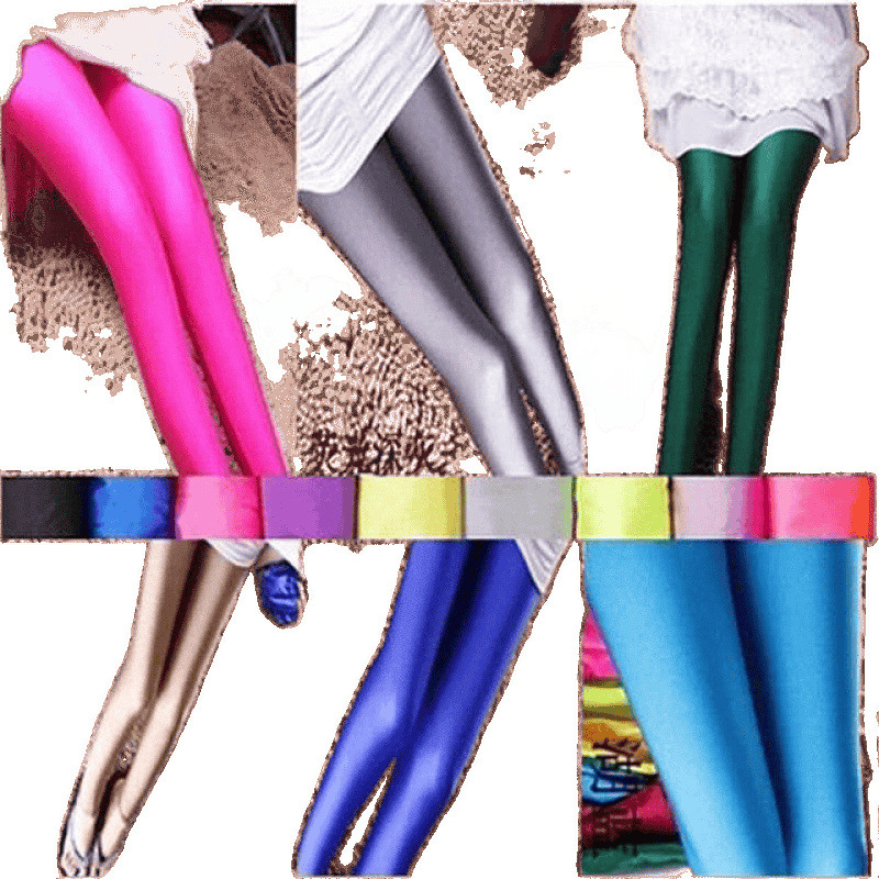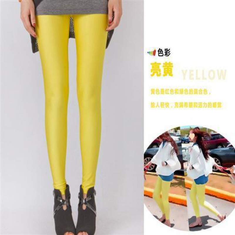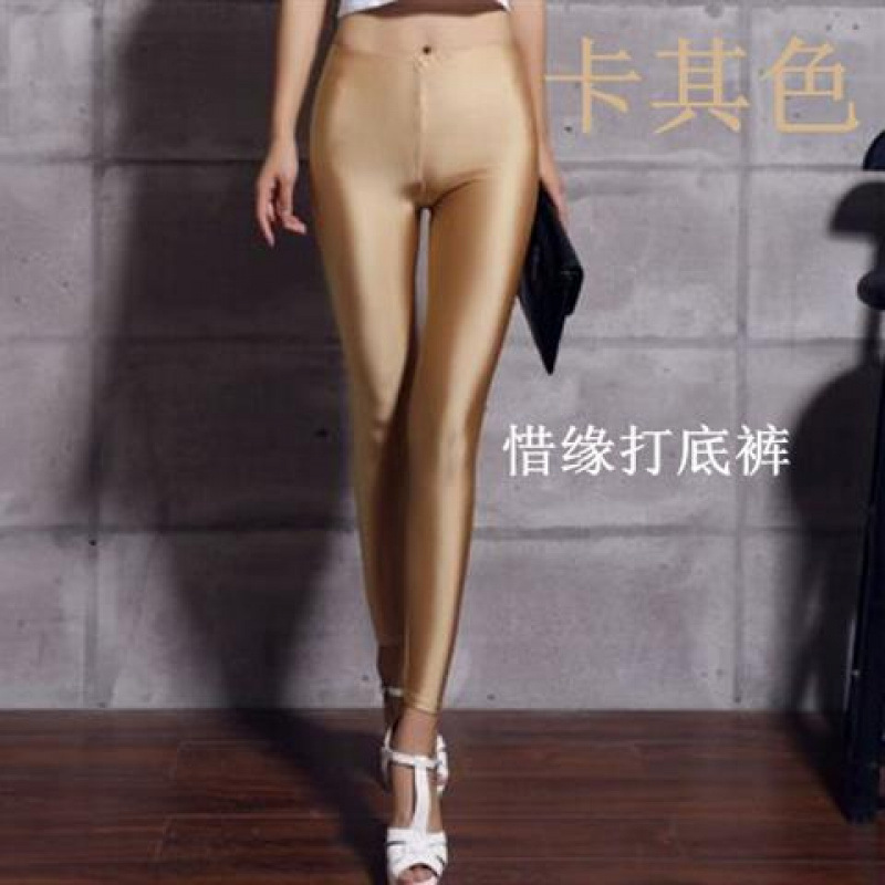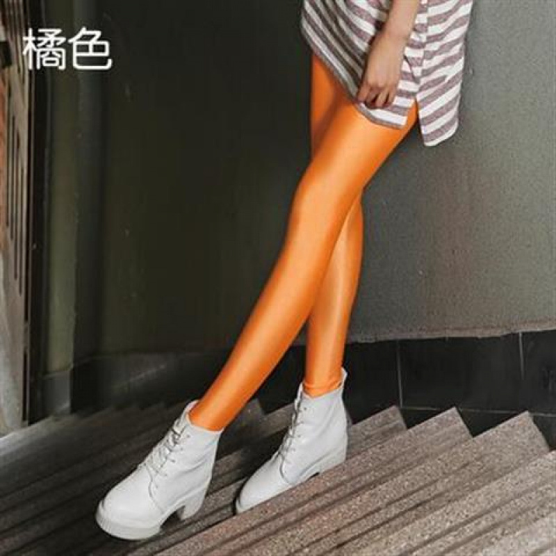 Глянцевые брюки женские тонкие леггинсы Летние осенние колготки из ледяного шелка флуоресцентные конфеты цветные девятицентовые брюки для бодибилдинга