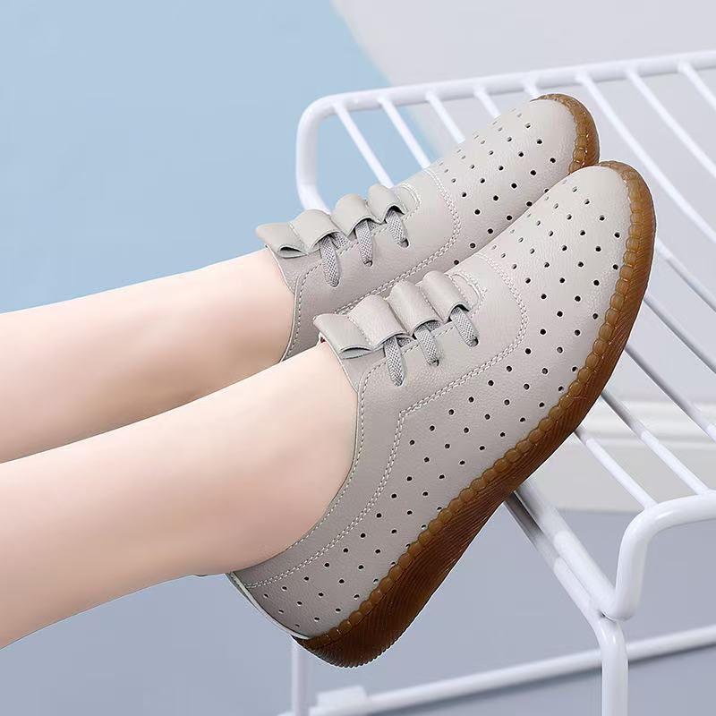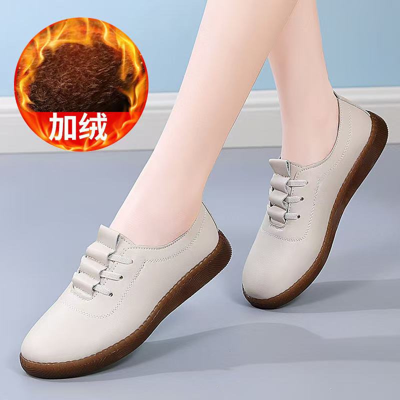 Женская обувь 2025, весенние туфли на плоской подошве, повседневная обувь для мам среднего и старшего возраста, белые туфли без шнуровки, универсальная обувь