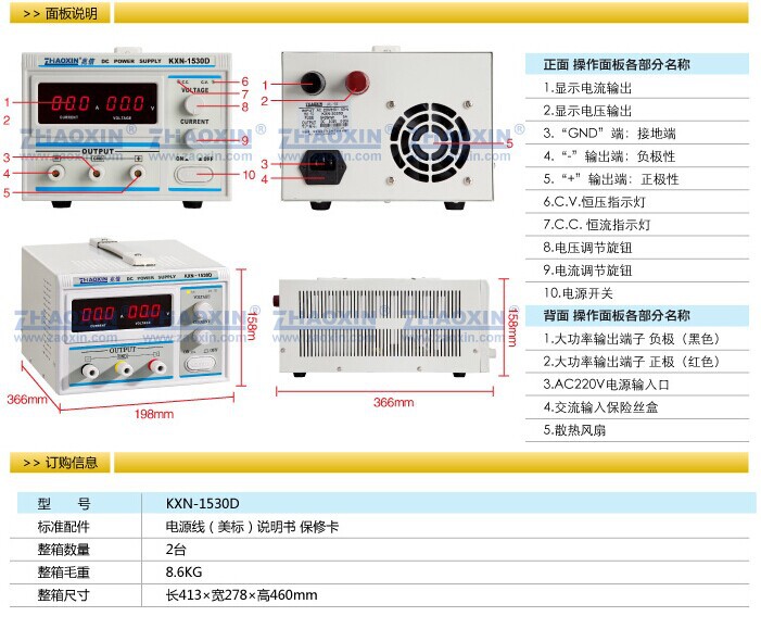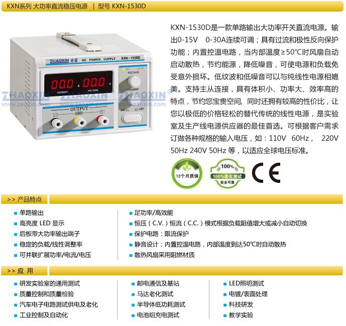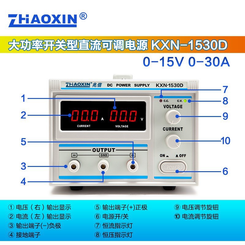 Zhaoxin KXN-1520D/1530D/1540D высокомощный источник питания постоянного тока 0-15В 30А с функцией старения и постоянным током
