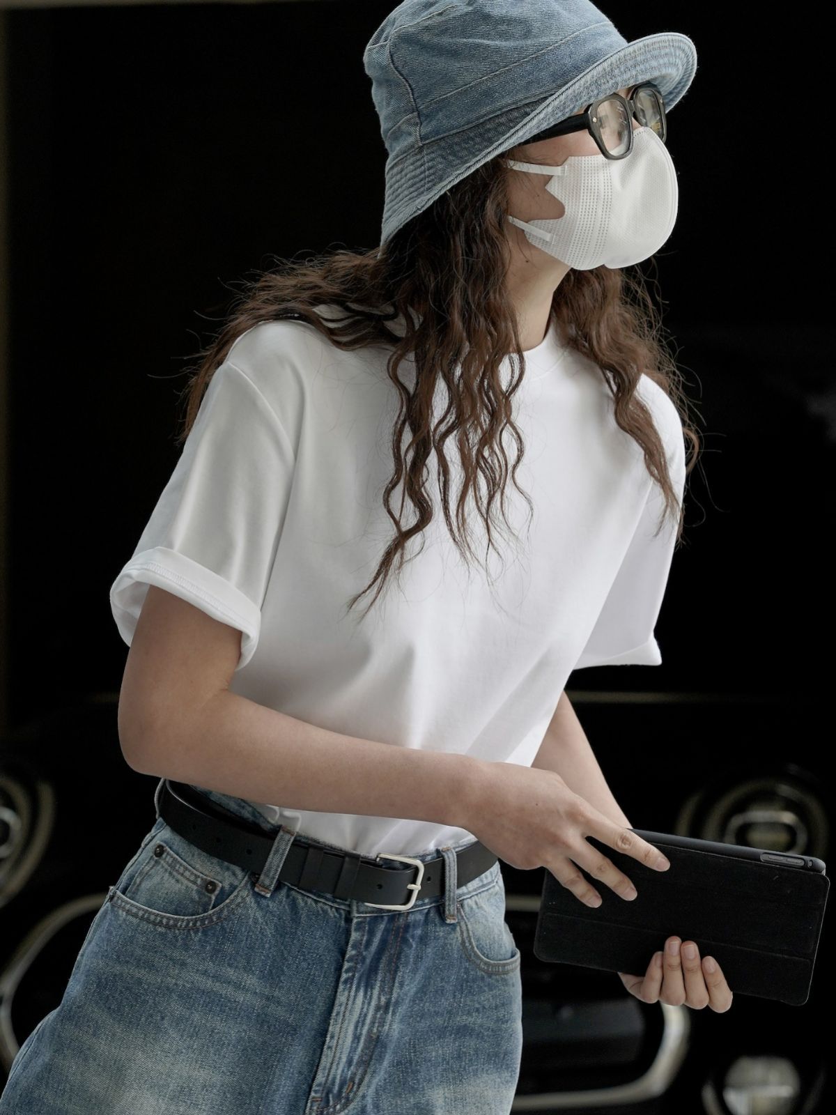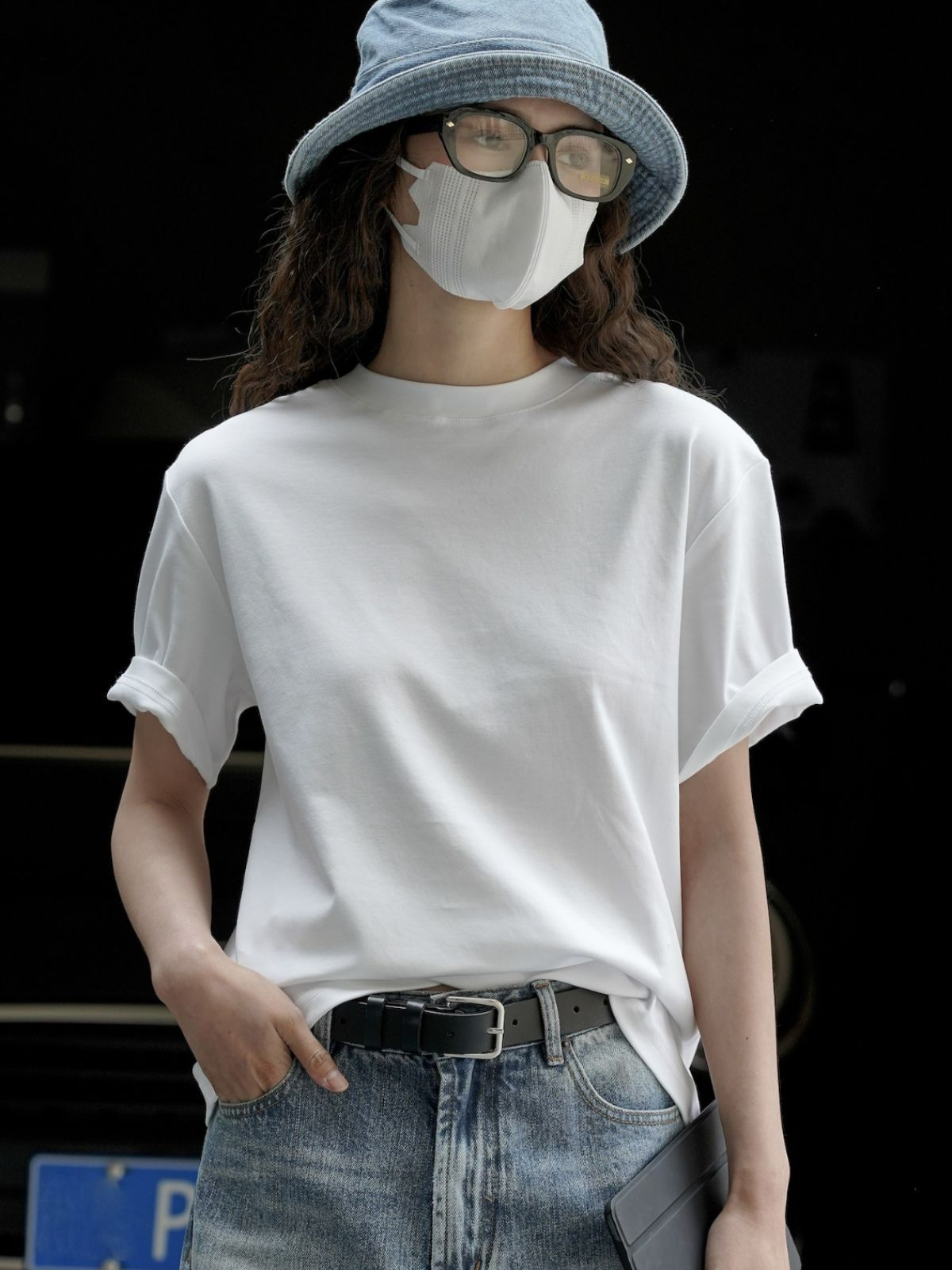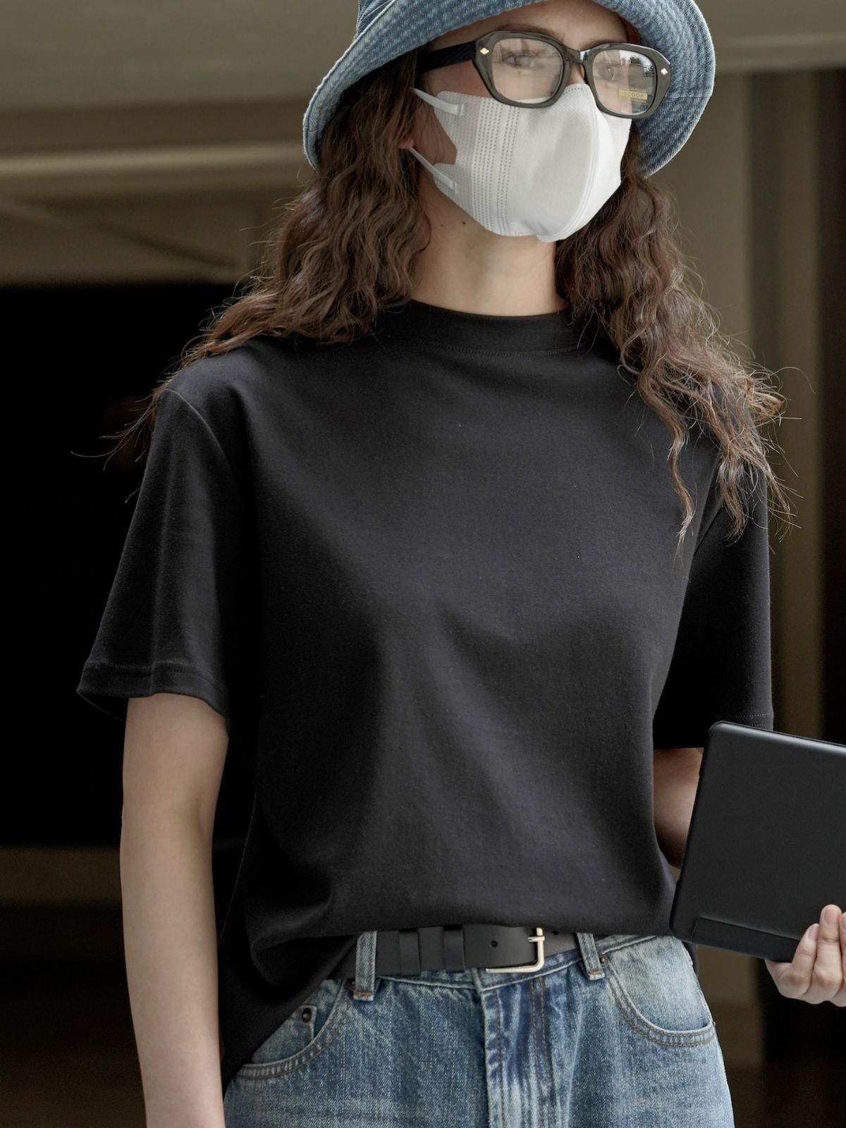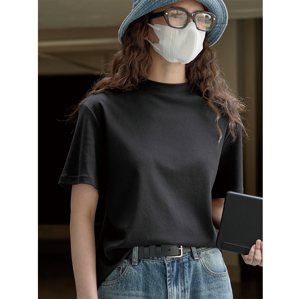 Новый летний корейский стиль, простой ретро-футболка с круглым вырезом и короткими рукавами, свободный утягивающий удобный, приятный для кожи повседневный топ для женщин