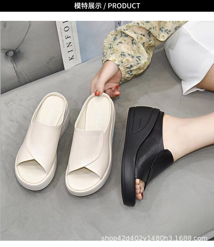 Новые женские сандалии на танкетке из натуральной кожи 2023 года, летние модные уличные трендовые шлепанцы на толстой подошве с дышащим верхом