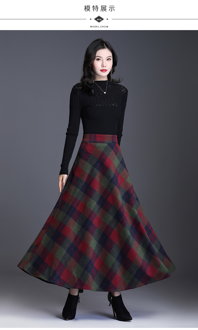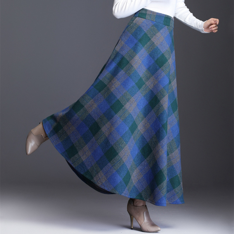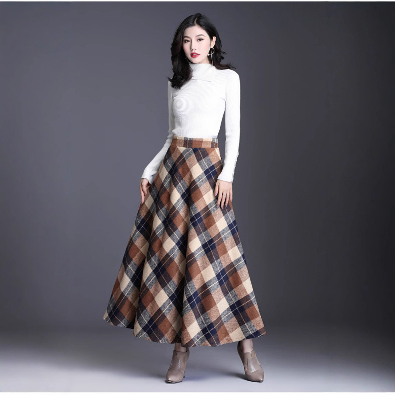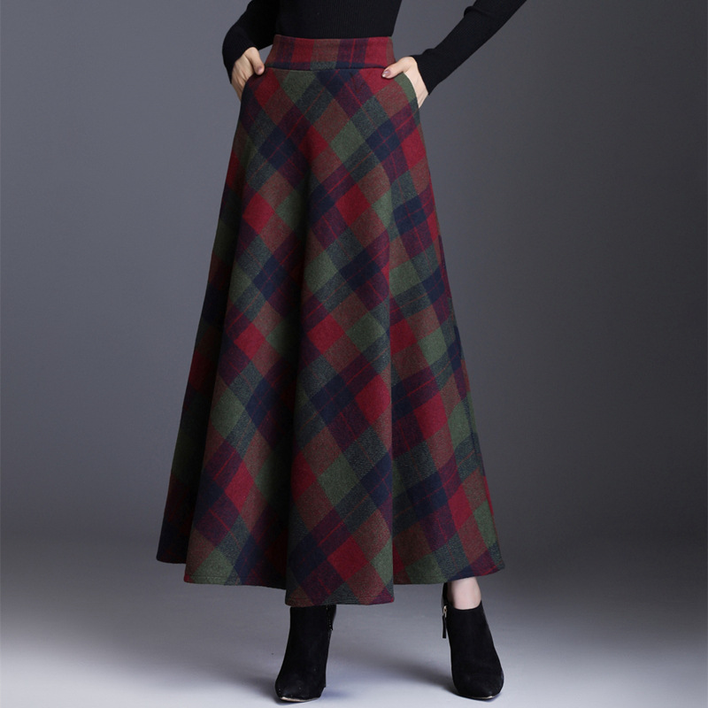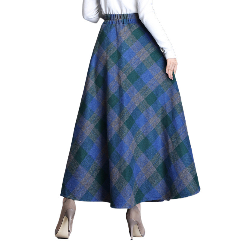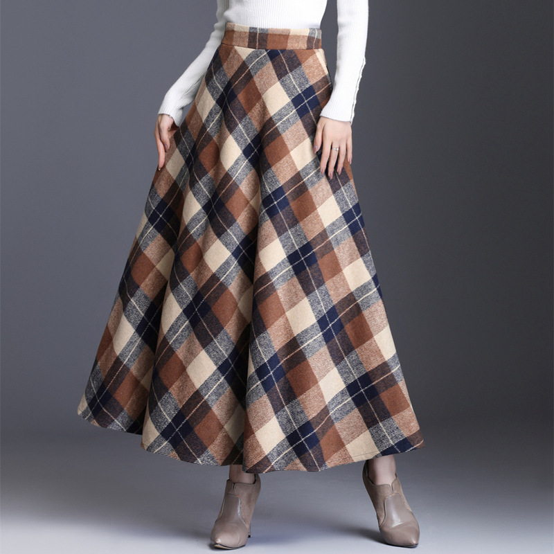 Винтажная шерстяная юбка миди в клетку для женщин, осень-зима 2025, с завышенной талией, А-силуэт, удлиненная, утепленная