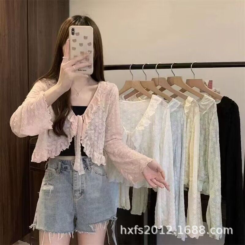Весенний новый французский нежный ветер с кружевной кардиган куртка красивый шикарный короткий иностранный топ