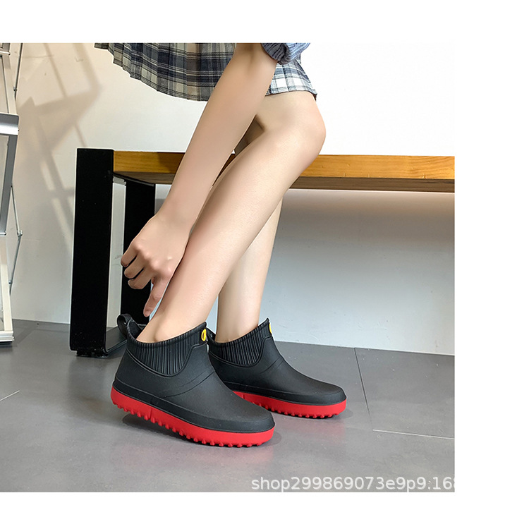 Модные водонепроницаемые нескользящие женские резиновые сапоги с короткой трубкой для работы на кухне, рыбалки, резиновые сапоги для мытья автомобиля, модные резиновые бахилы, экспорт