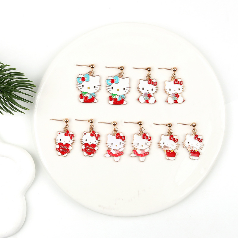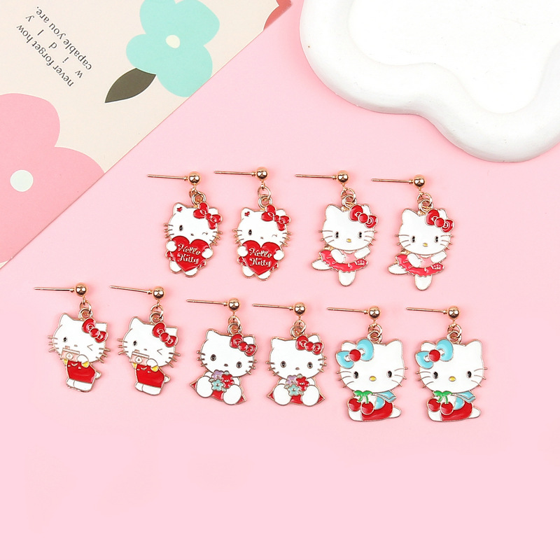 Набор из 5 предметов: серьги-подвески с мультяшным котом KT, милые украшения HELLO KITTY, сексуальные студенческие серьги TEMU