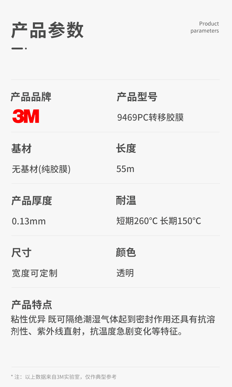 3m9460pc双面胶 无基材透明vhb胶带粘接FPC柔性电路板3m双面胶带