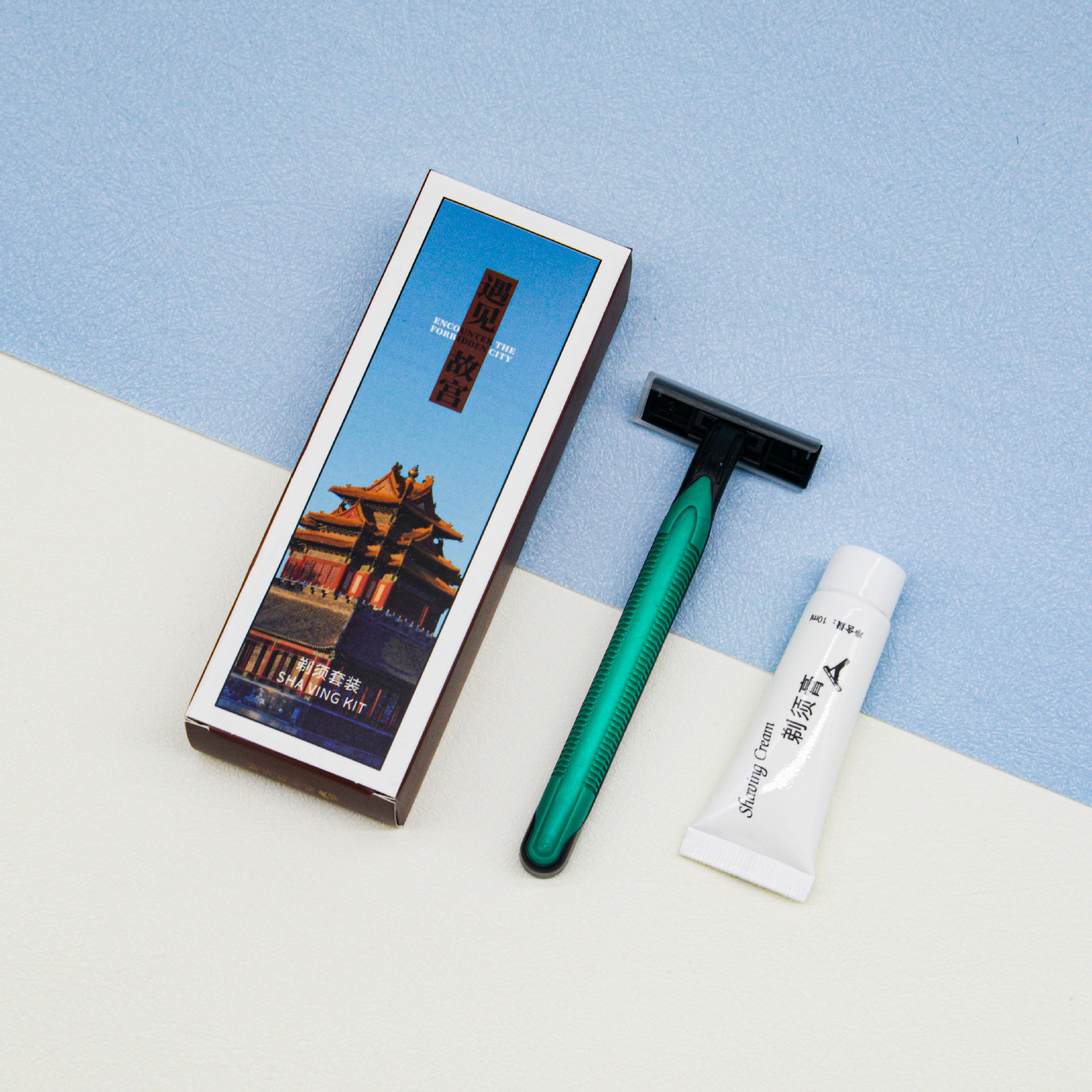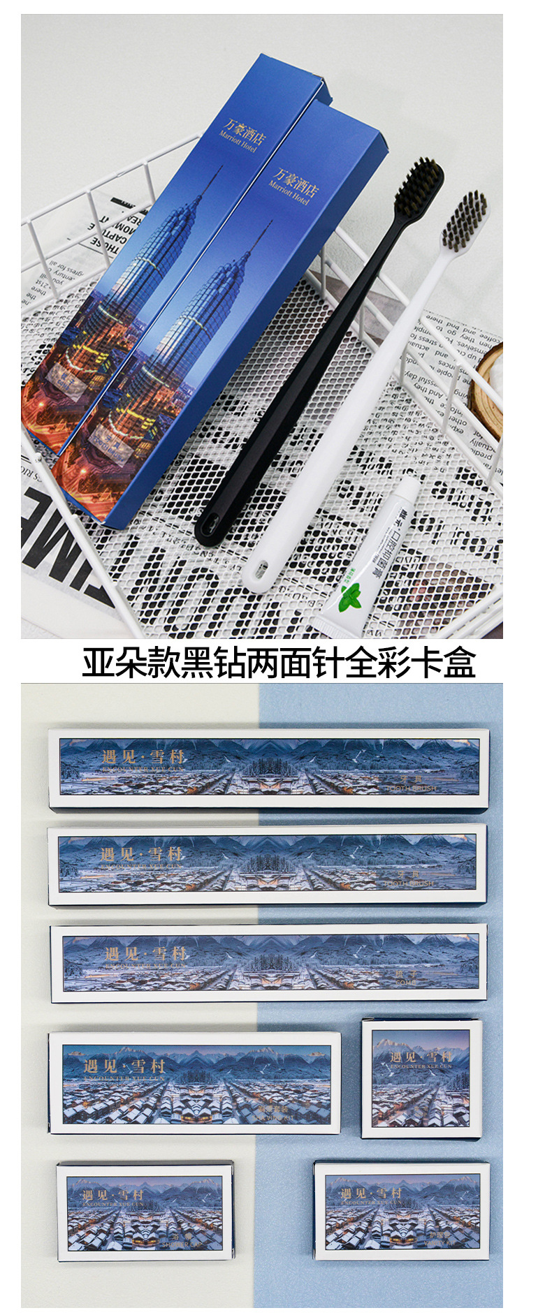 Полноцветная картонная коробка стоматологических приборов [получерно-белые стоматологические приборы]; Полноцветная расческа для карточек A; Полноцветная расческа для карточек B; Полноцветная картонная бритва A; Полноцветная картонная бритва B; Полноцветный пакет по уходу за картонной коробкой; Полноцветная шапочка для душа в картонной коробке