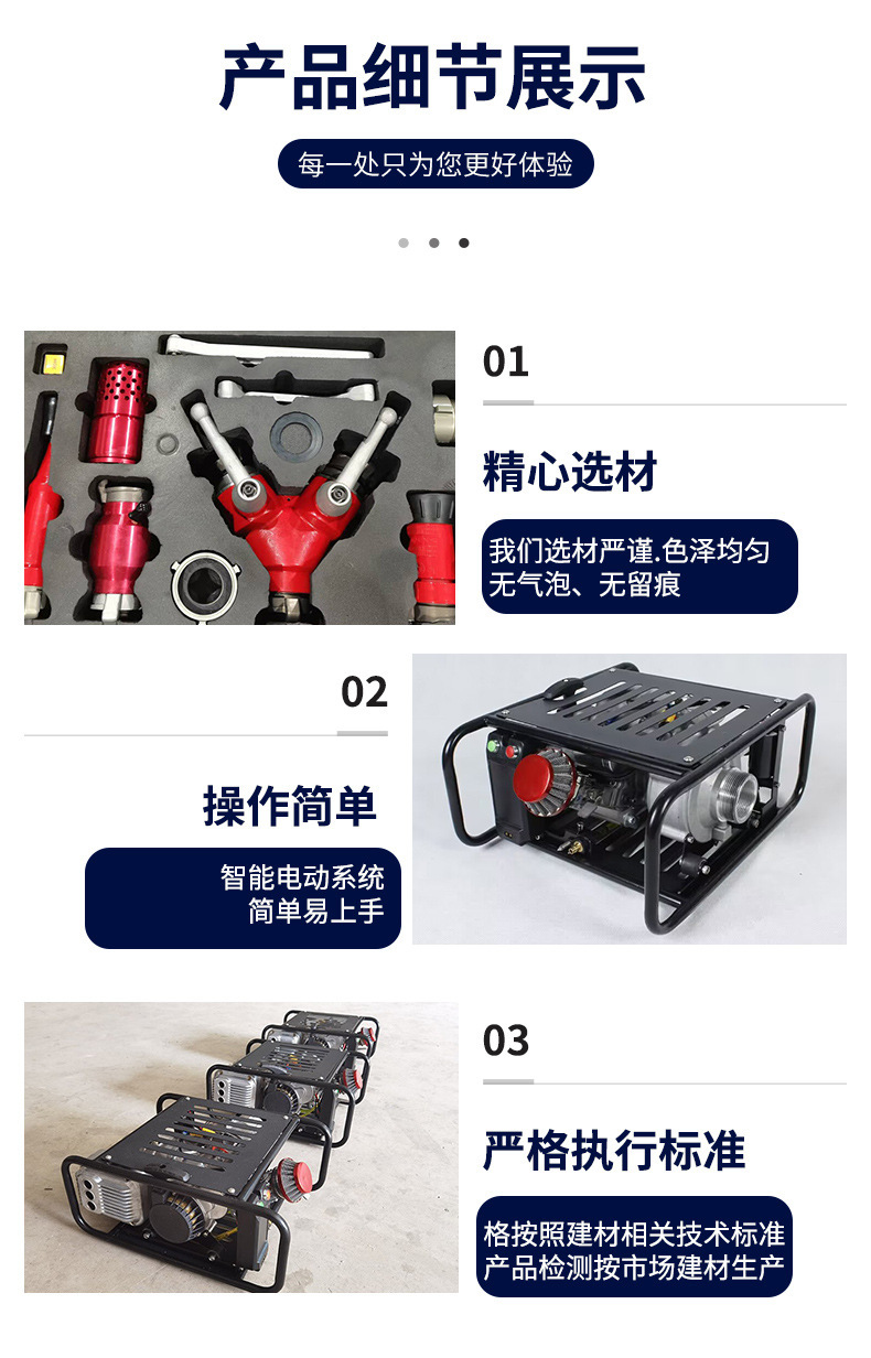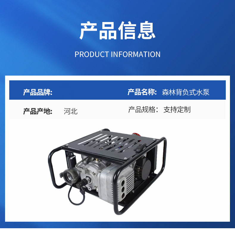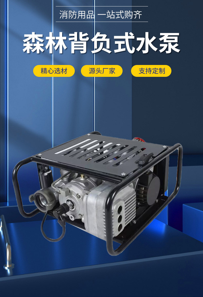 14、可背负、可手提。水泵之间可串联、并联可达更远距离输水灭火;