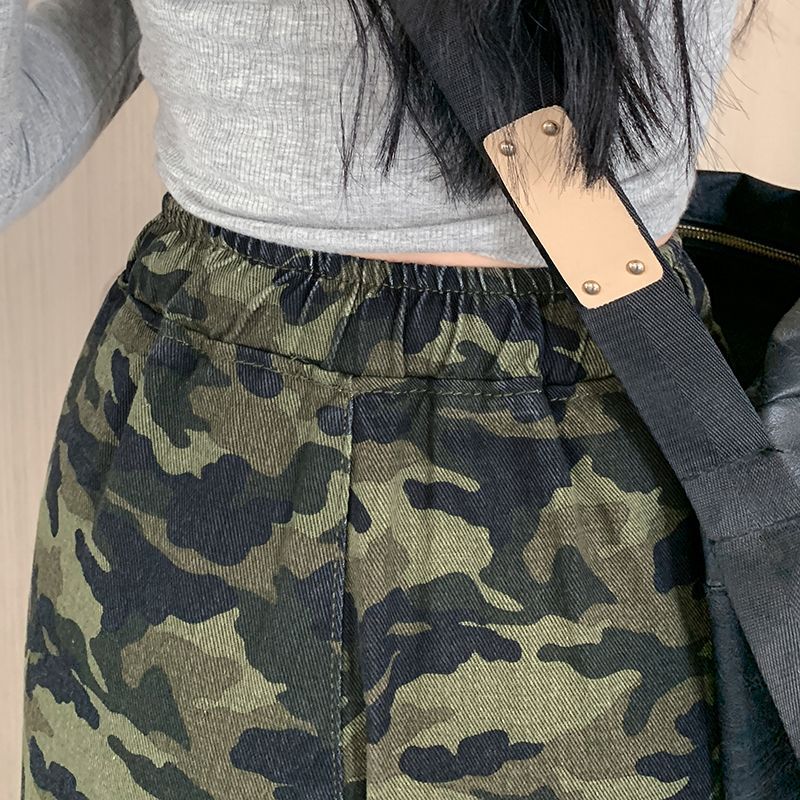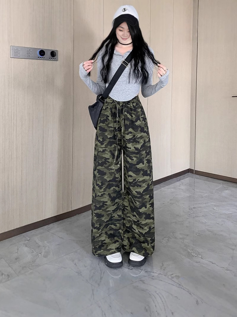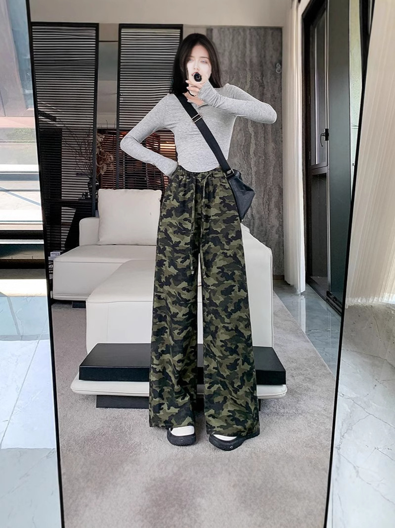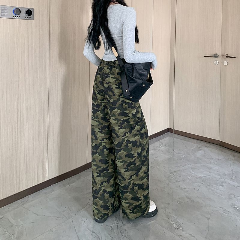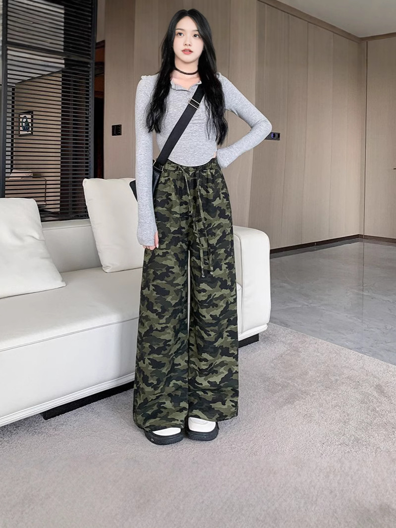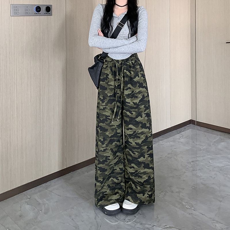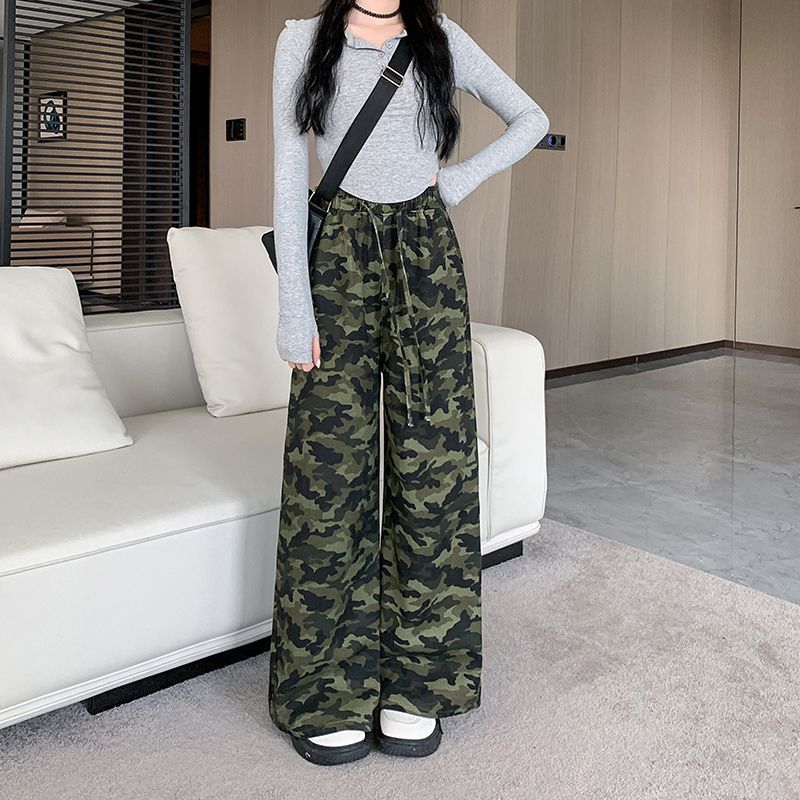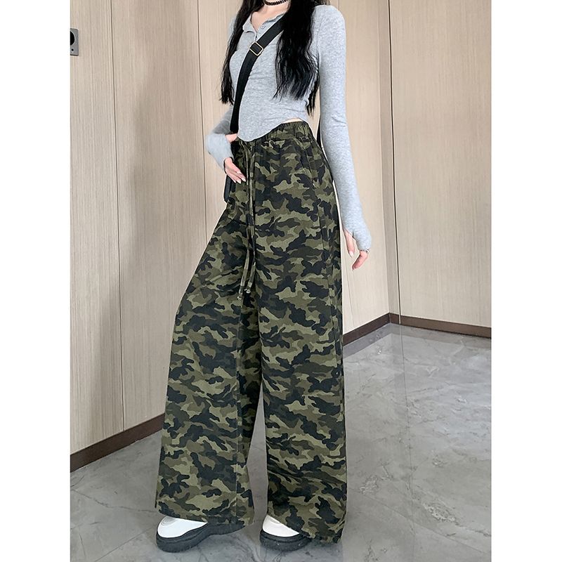 Трансграничные американские камуфляжные повседневные джинсы для женщин на осень, свободные широкие брюки с завязками, прямые драпированные брюки длиной до пола, брюки нового стиля
