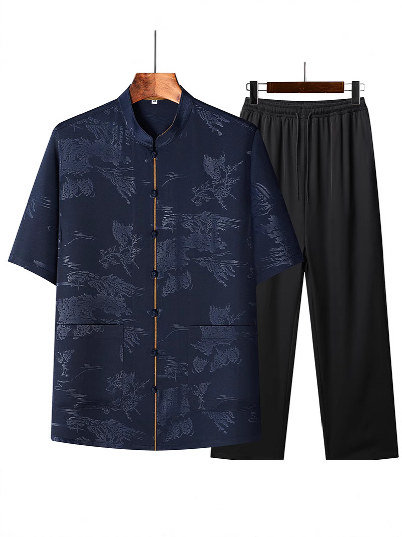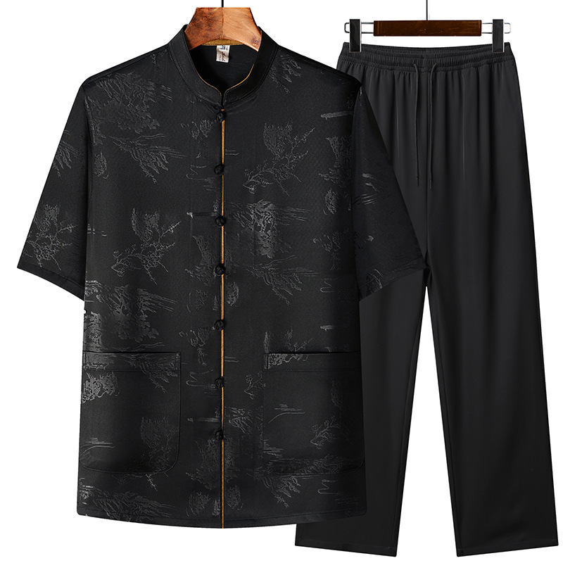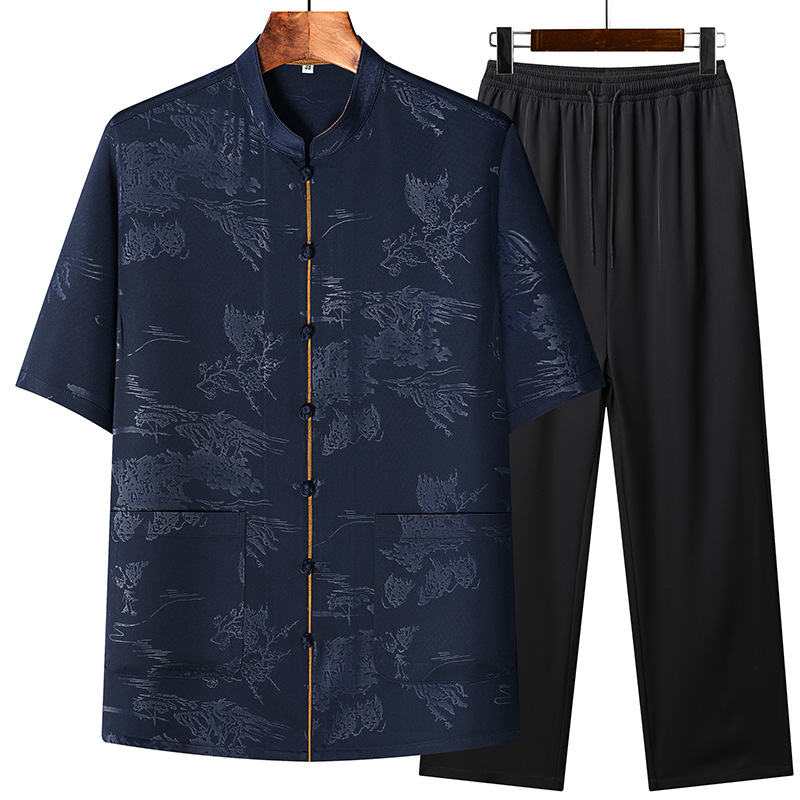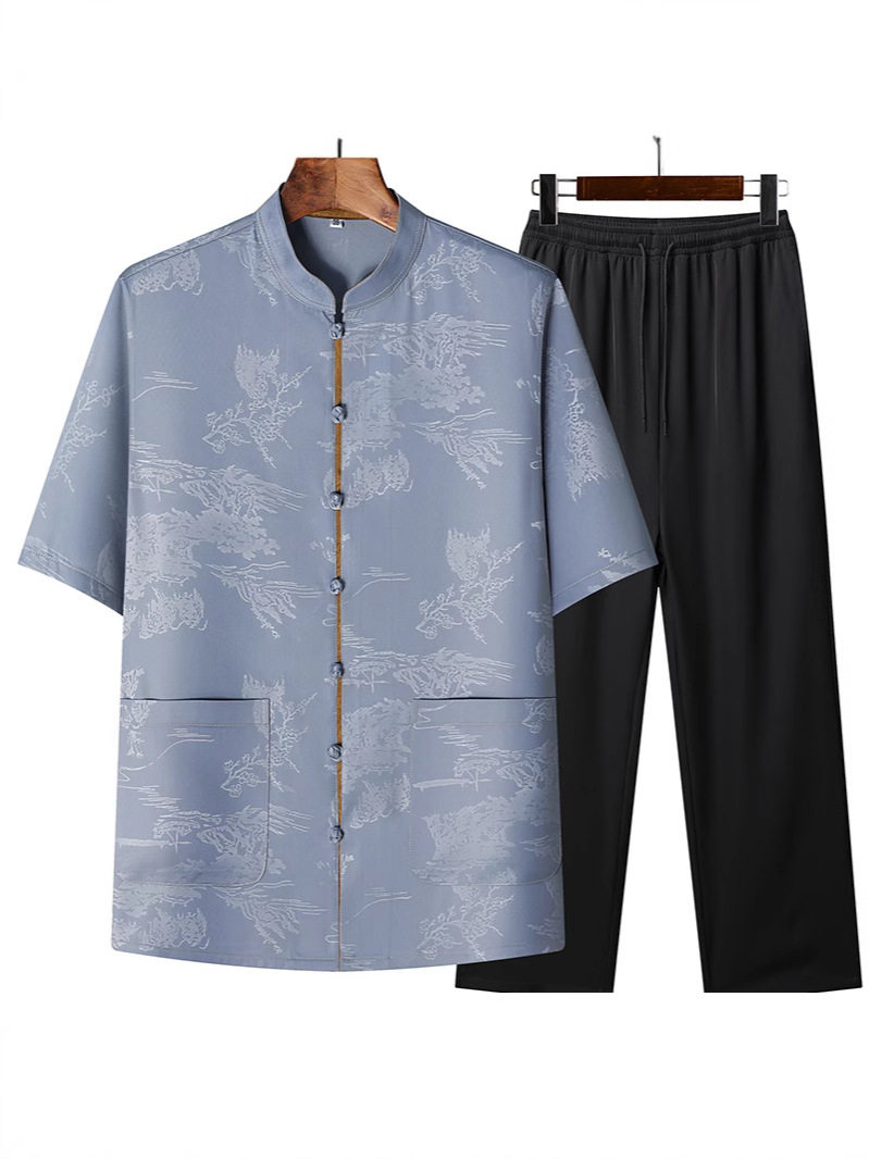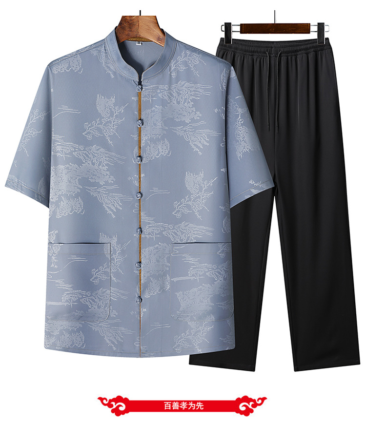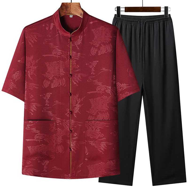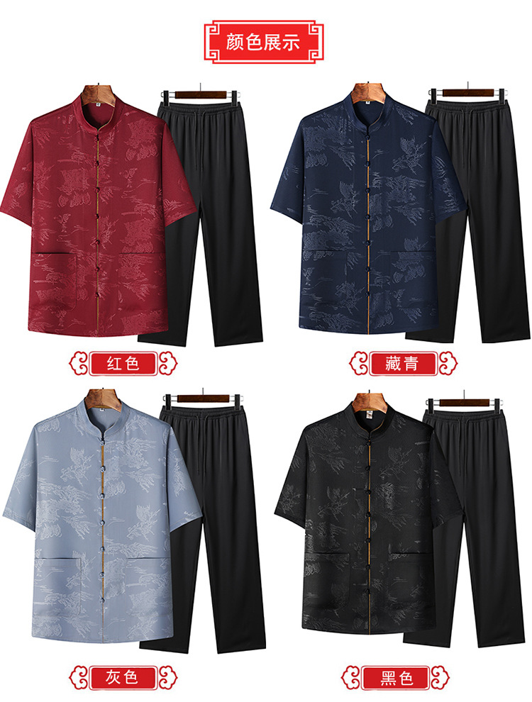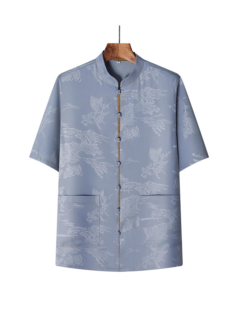 Новая мужская куртка в китайском стиле с имитацией ароматной облачной пряжи, куртка в китайском стиле, рубашка с короткими рукавами, китайский костюм из шелка и атласа для папы