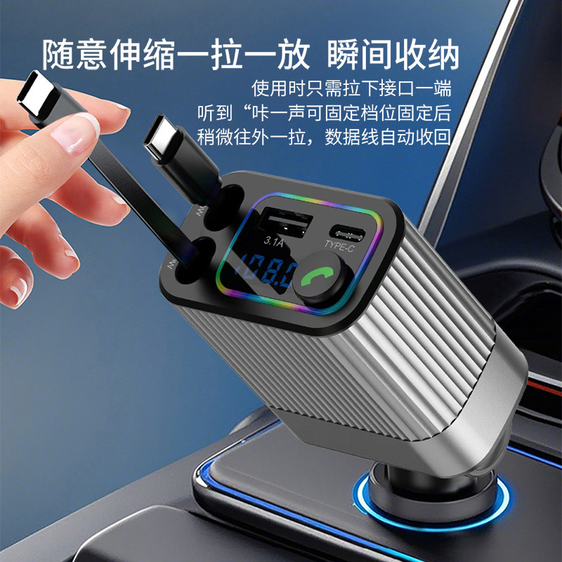 Автомобильная Bluetooth-зарядная станция 120 Вт с быстрой зарядкой через прикуриватель, кабель для быстрой зарядки, качество звука без потерь, выдвижной кабель 5.4 «четыре в одном»
