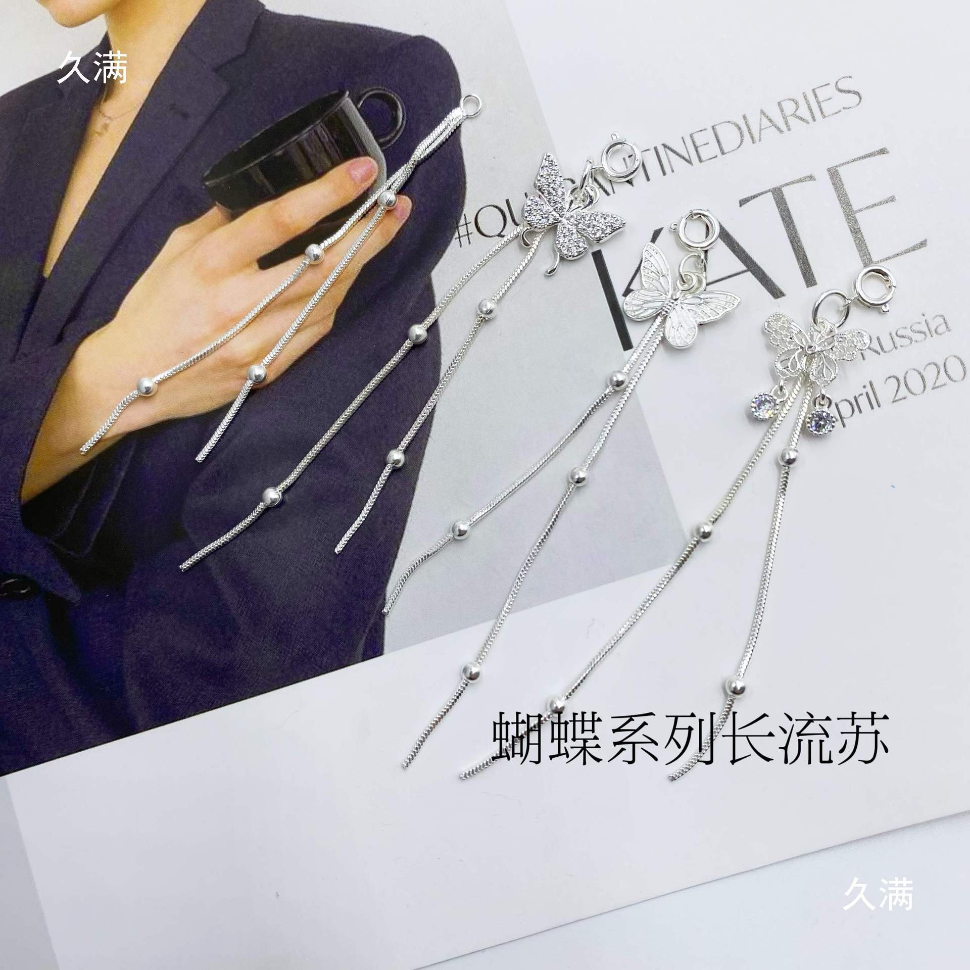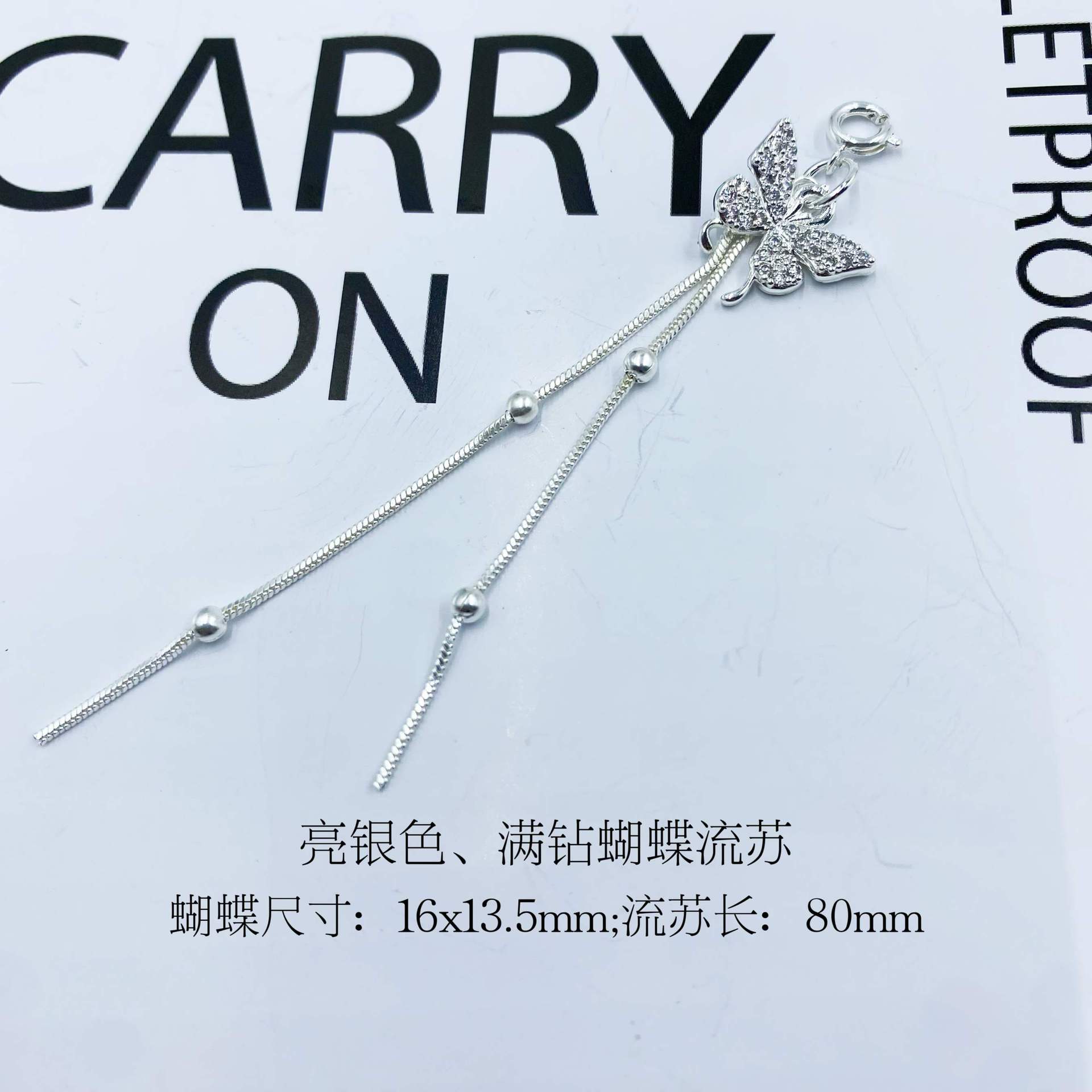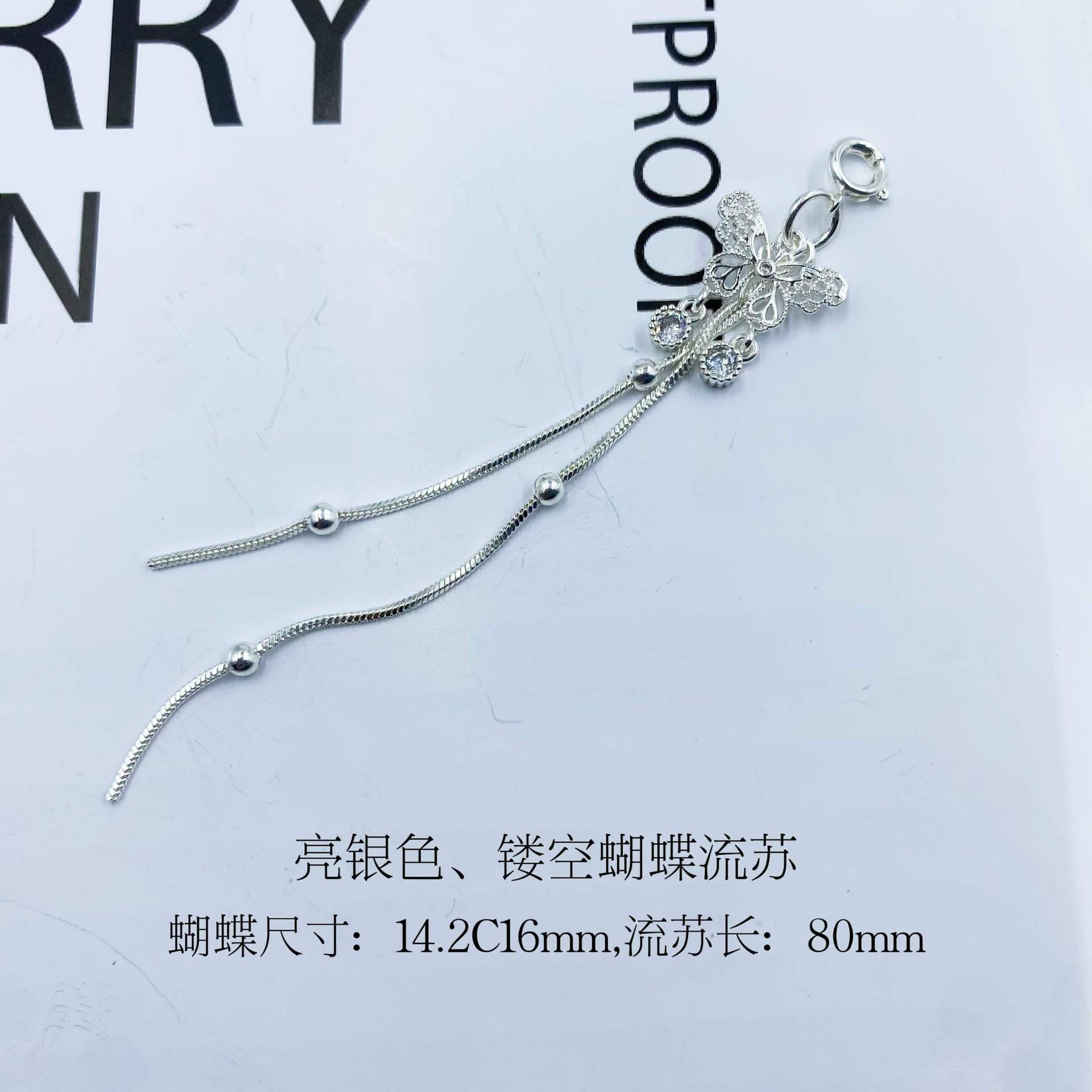 яркие серебряные кисточки; Кисточка-бабочка без циркона; Кисточка-бабочка с бриллиантами; Полая кисточка-бабочка