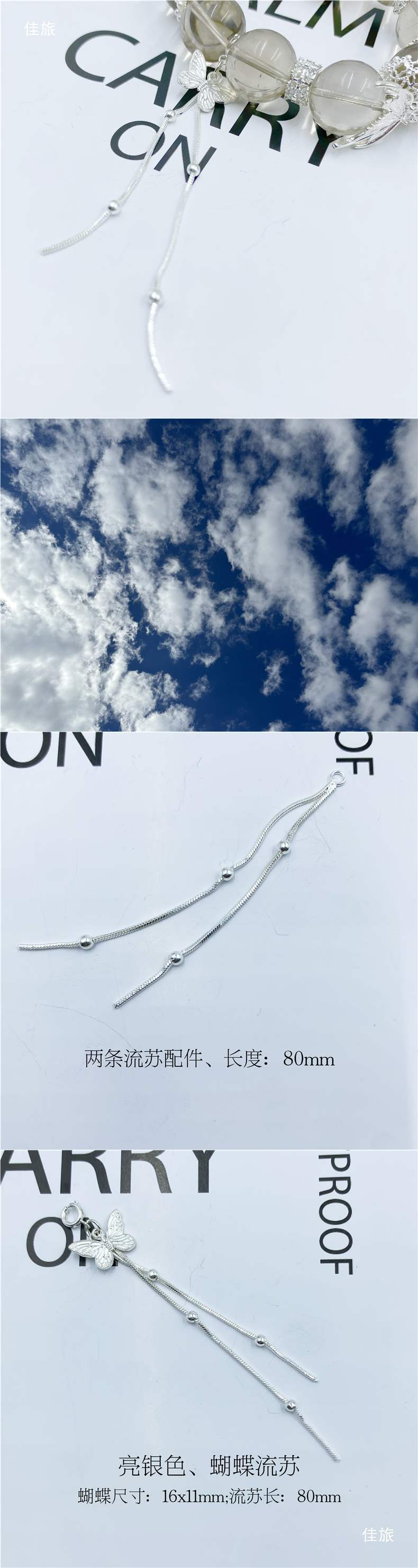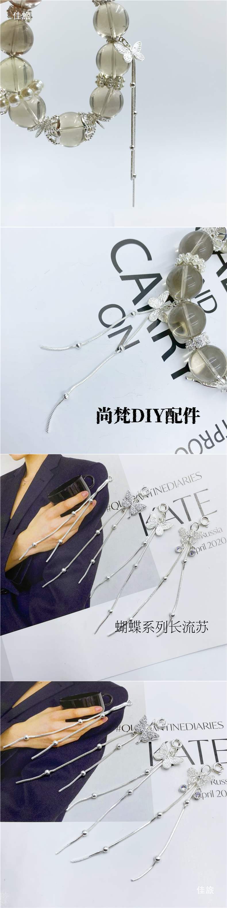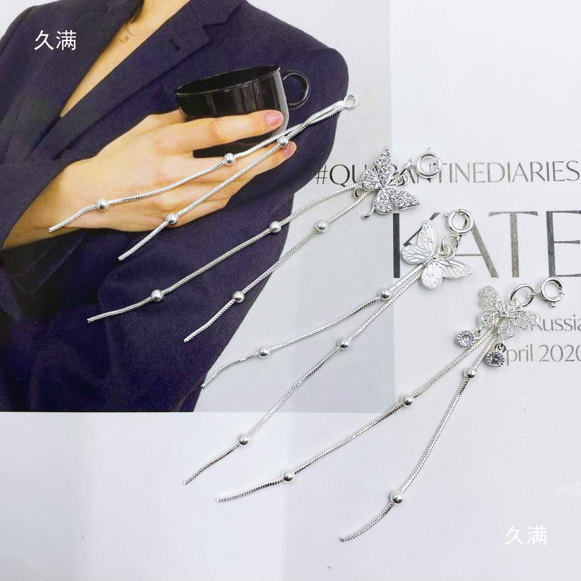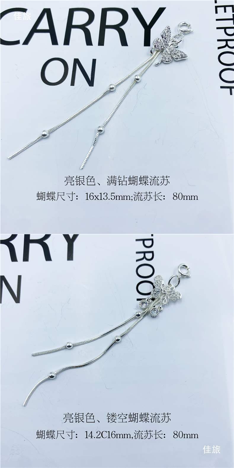 яркие серебряные кисточки; Кисточка-бабочка без циркона; Кисточка-бабочка с бриллиантами; Полая кисточка-бабочка