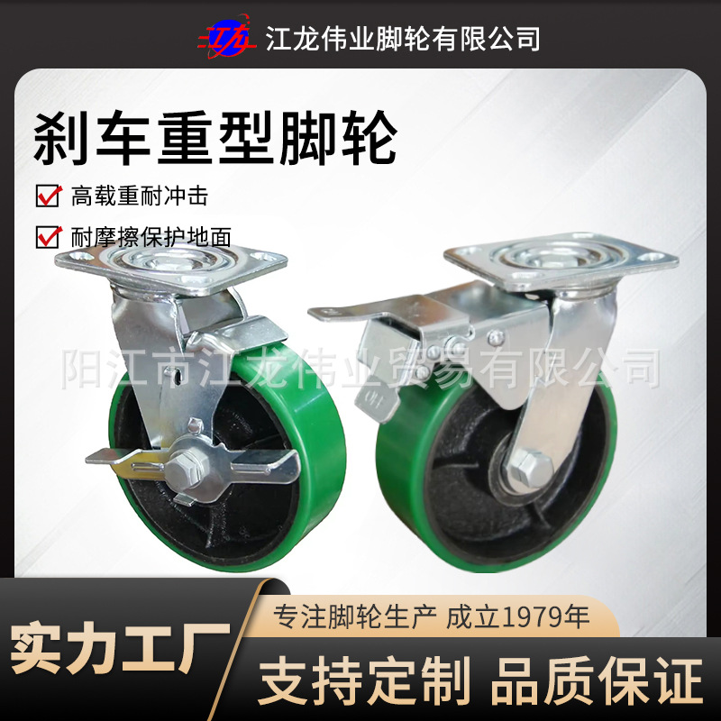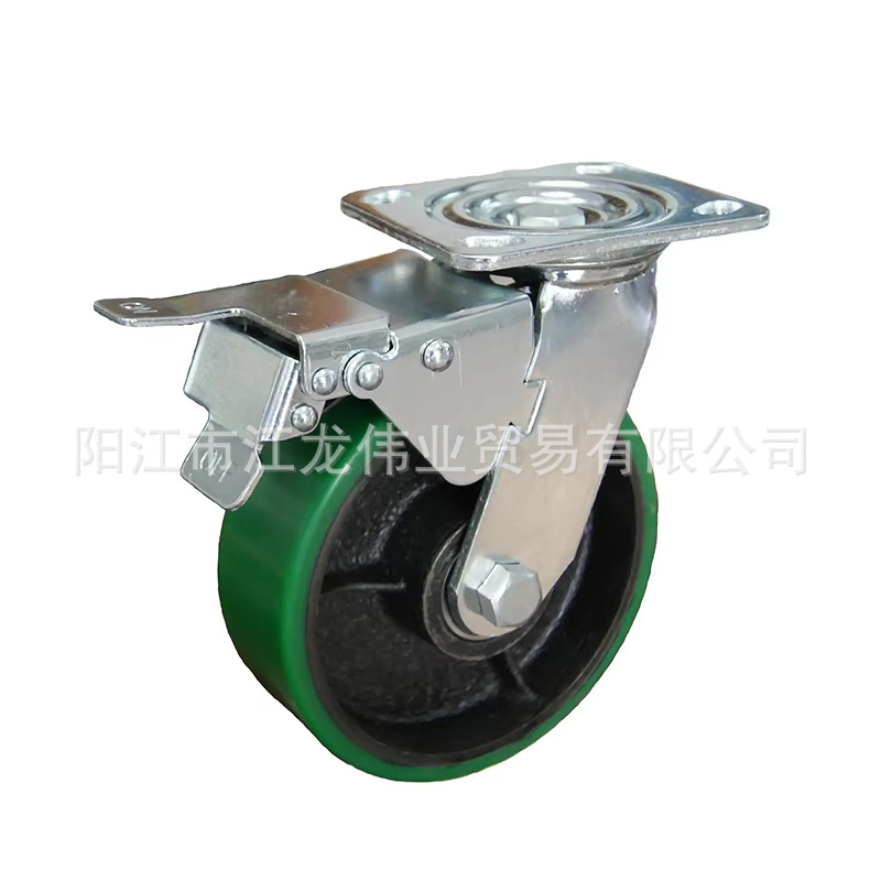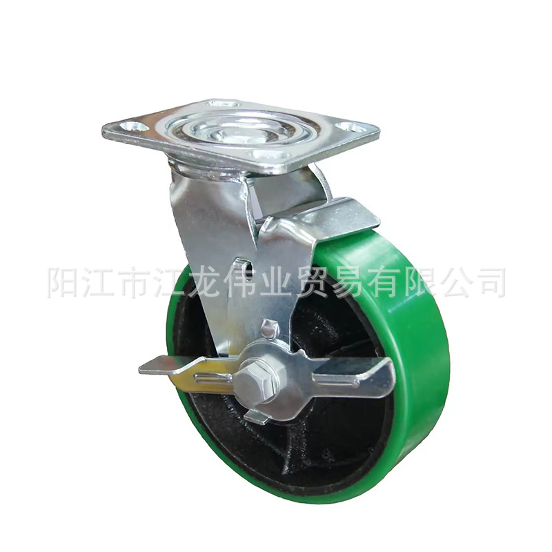 4-дюймовые 5-дюймовые 6inch 8inch сверхмощные ролики, зеленые бесшумные колеса из полиуретана, промышленные ролики, полиуретановые тормозные ролики с железным сердечником