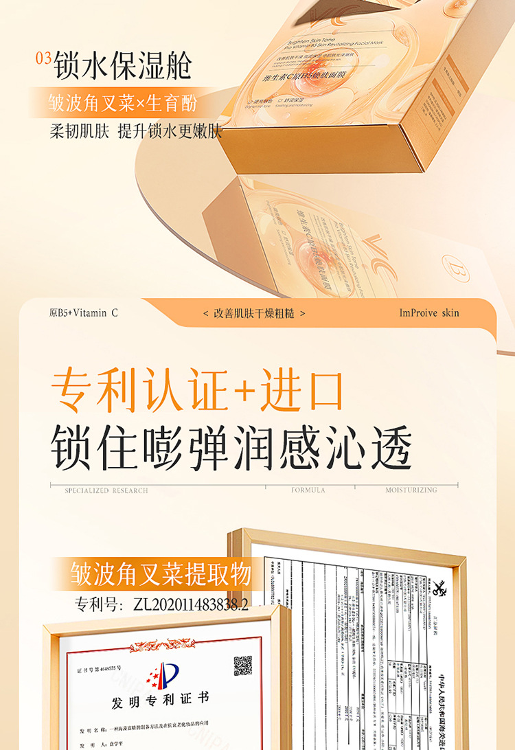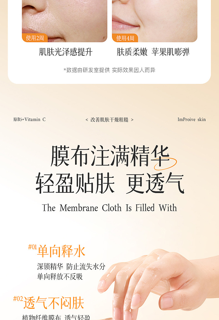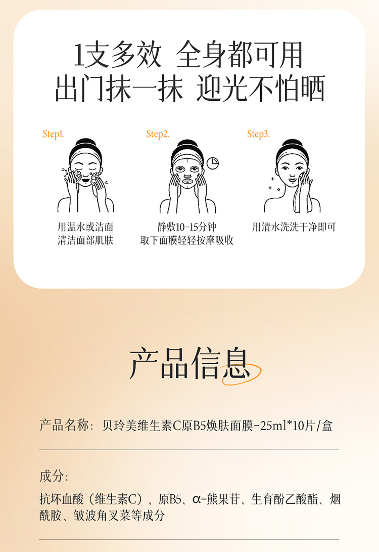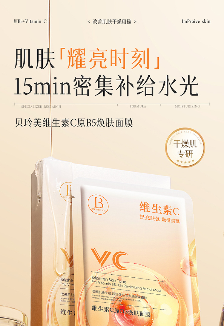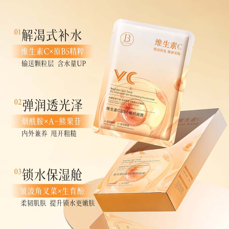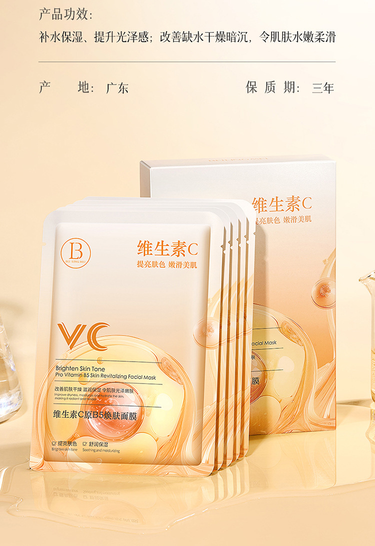 Bei Lingmei Витамин C Pro-B5 Омолаживающая маска успокаивает чувствительную кожу, увлажняет и увлажняет нежные поры Патч-маска