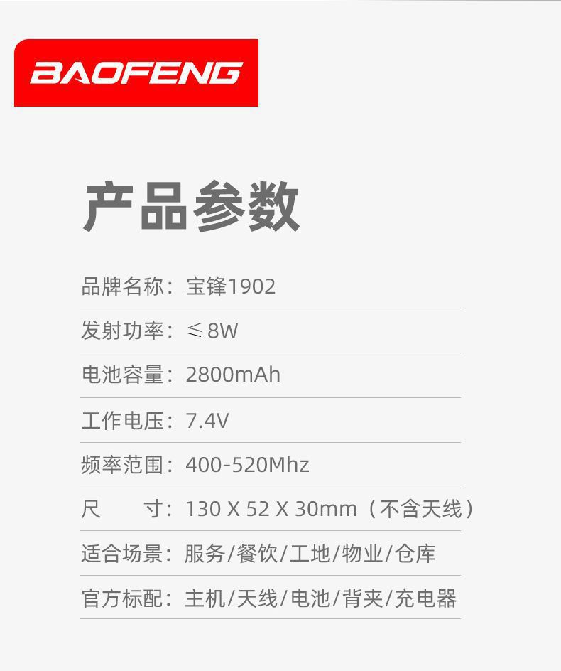 Рация Baofeng BF-1902, 10 Вт, мощная, портативная, для улицы, строительных площадок, гостиниц, мини-интерком, дальность действия 50 км