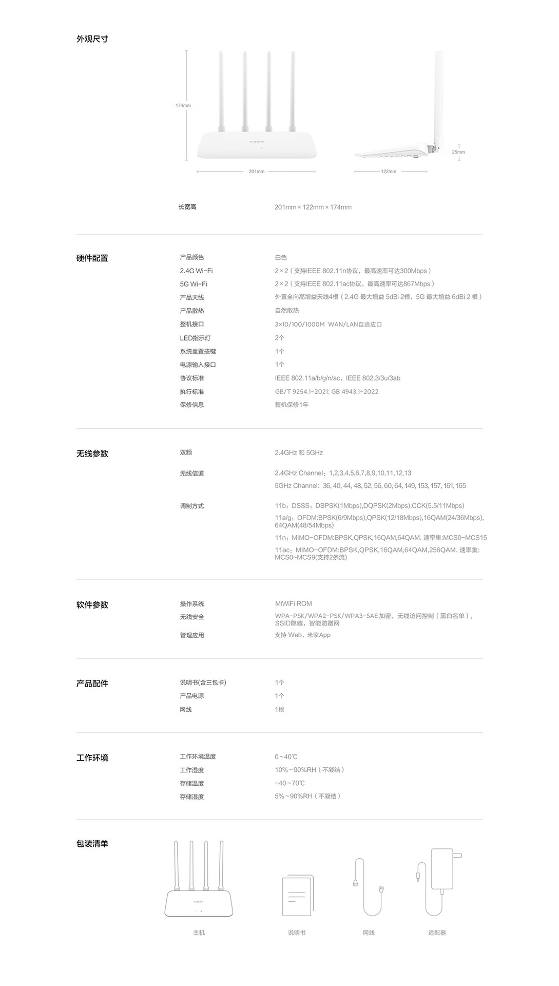 Роутер Xiaomi 4C 4A для дома, высокоскоростной Wi-Fi, мощный двухдиапазонный беспроводной гигабитный кампус 5G, широкополосный доступ к стене