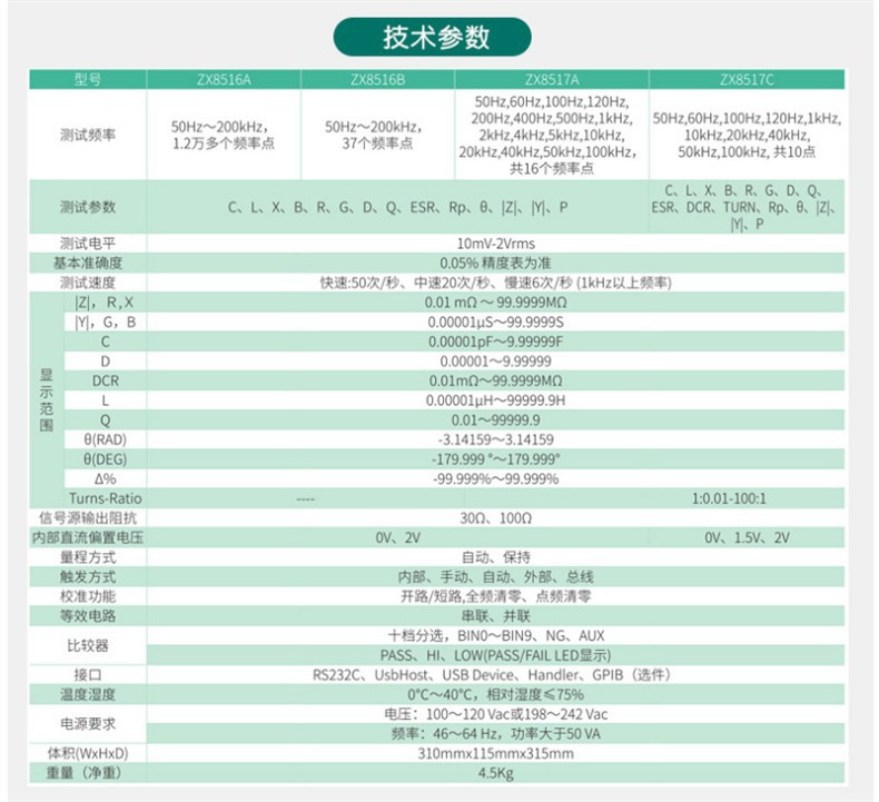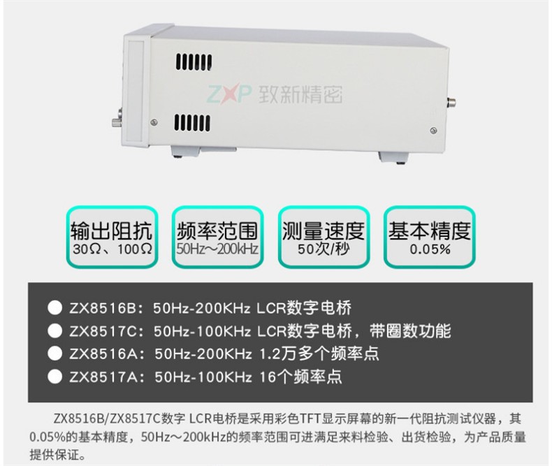 ZX8516B(50Гц-200кГц37 точек); ZX8516B-1X (многопараметрический, 200 кГц, 37 точек); ZX8516A (50 Гц-200 кГц, 12 000 точек)