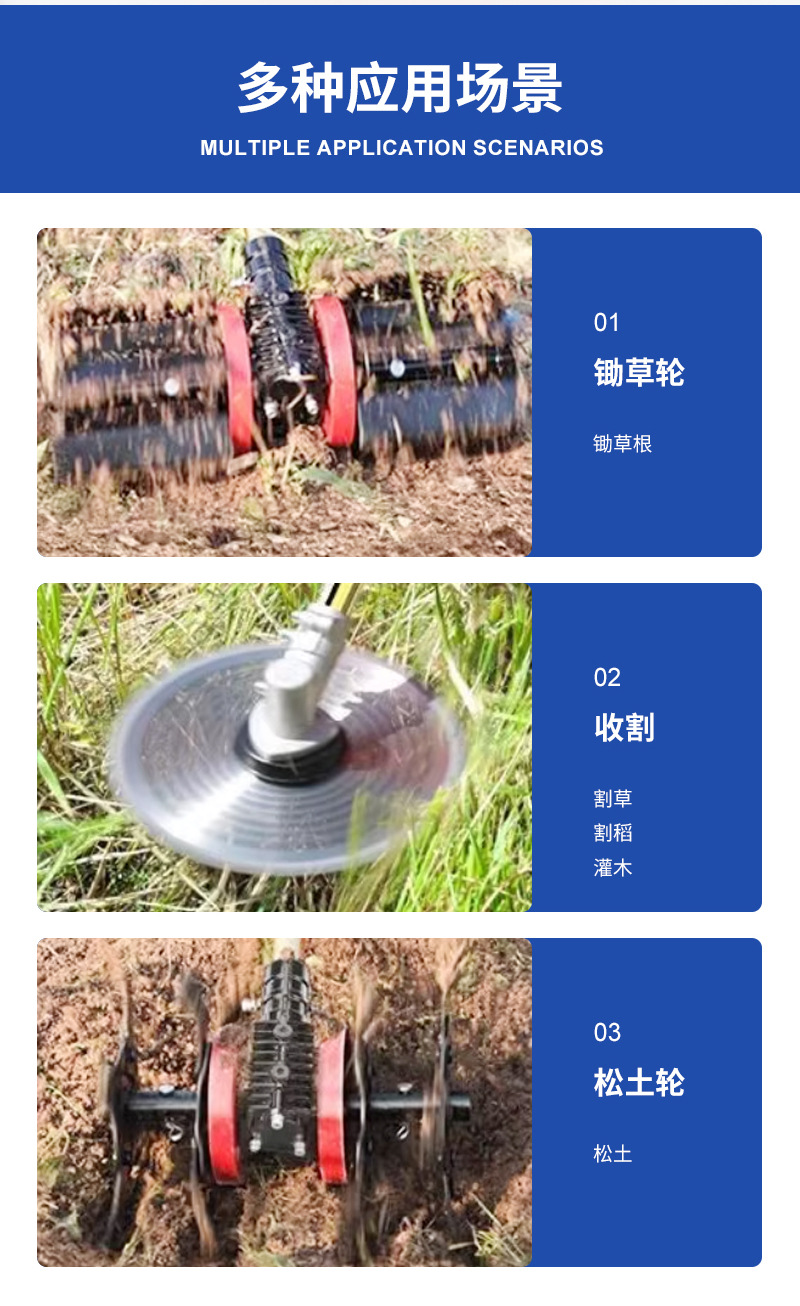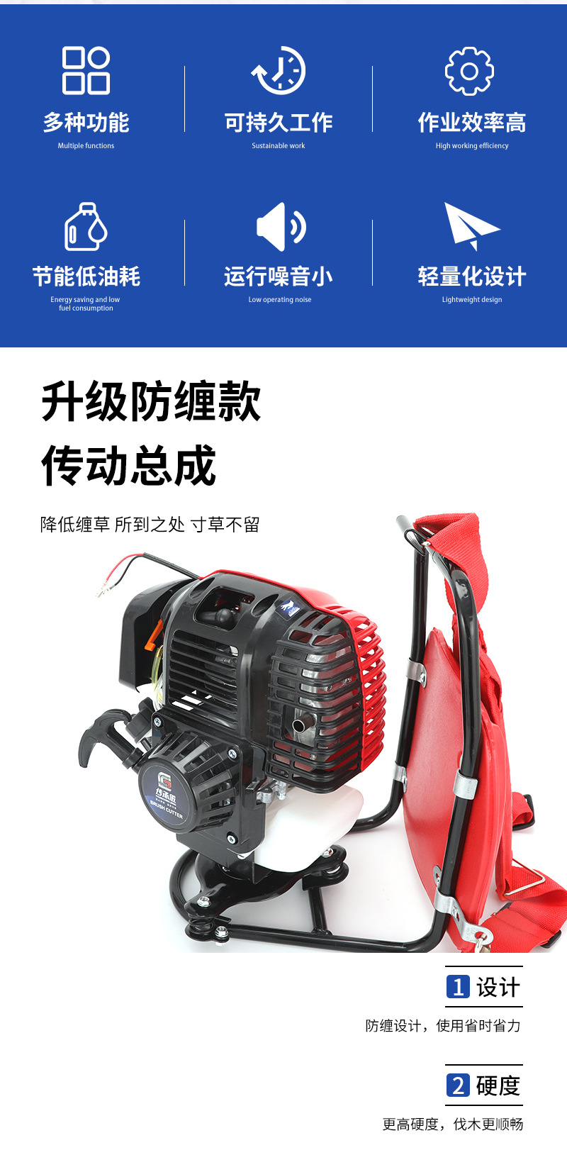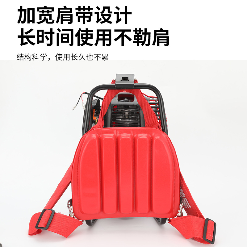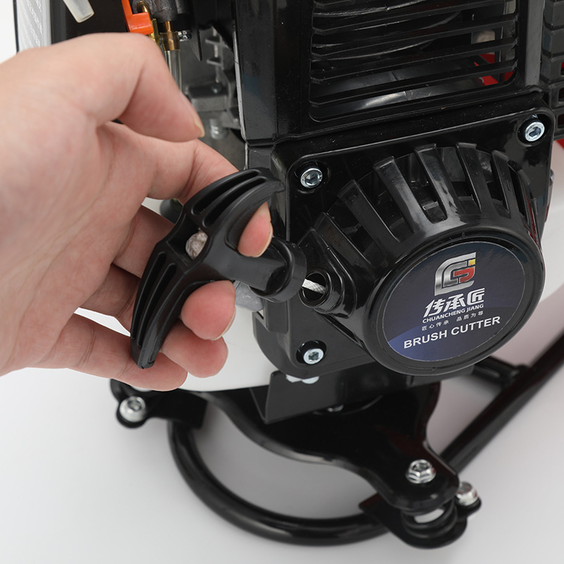 В наличии 4-тактная боковая газонокосилка с ранцевым креплением, небольшой бытовой триммер для травы, кусторез для уборки сельскохозяйственных культур.