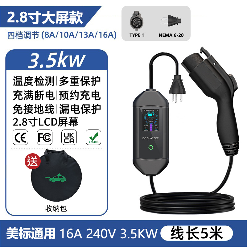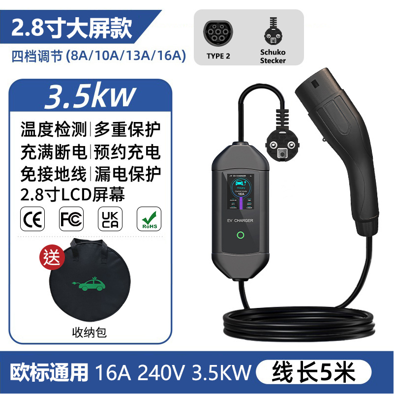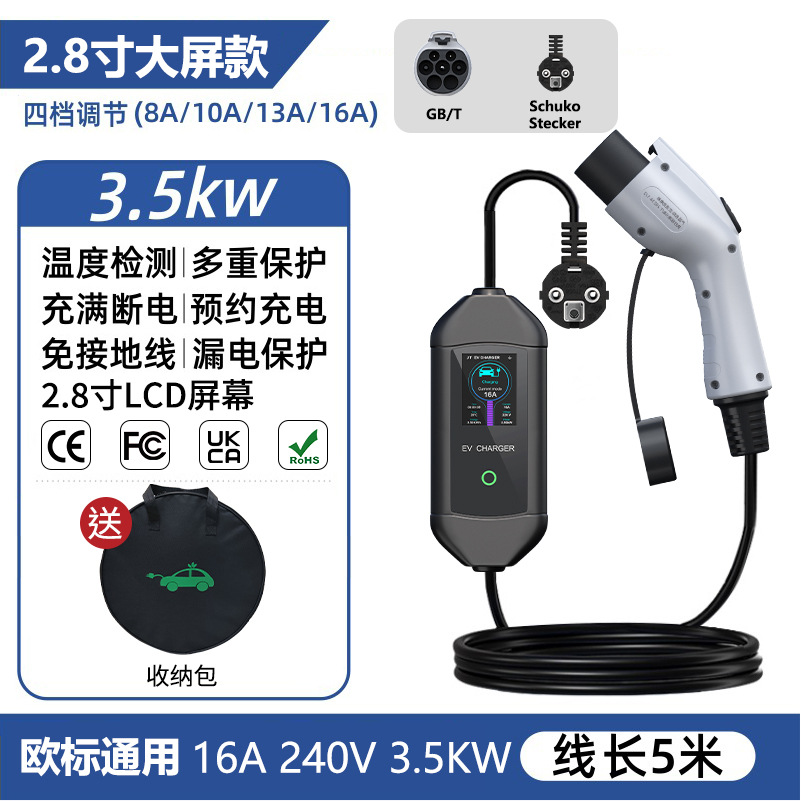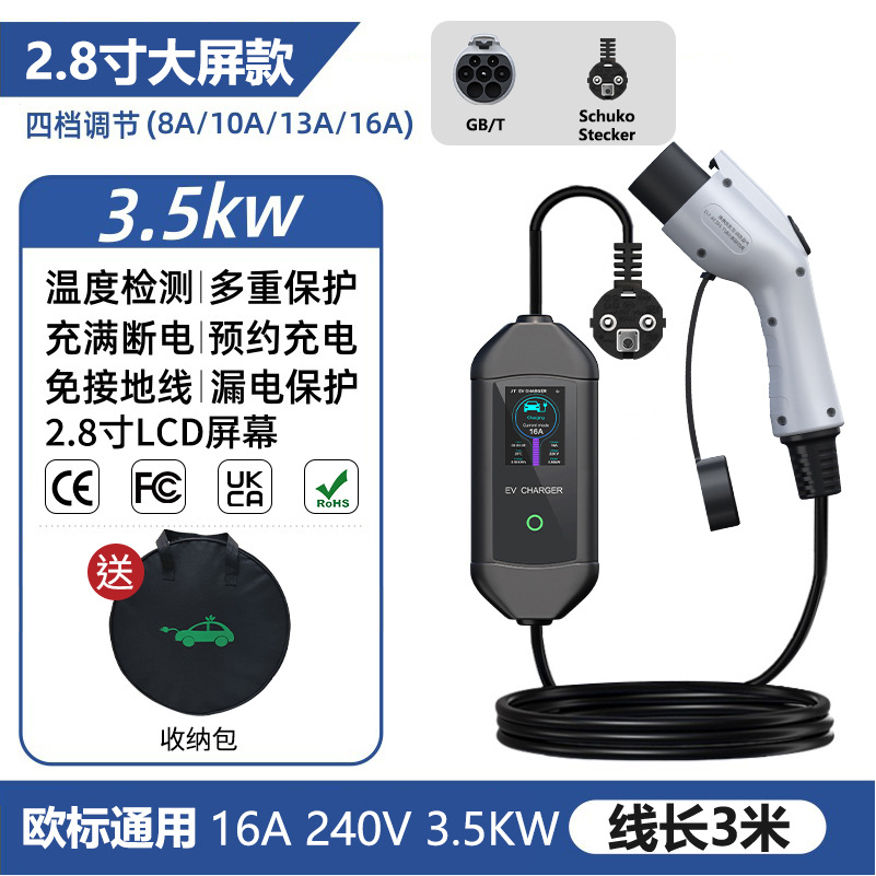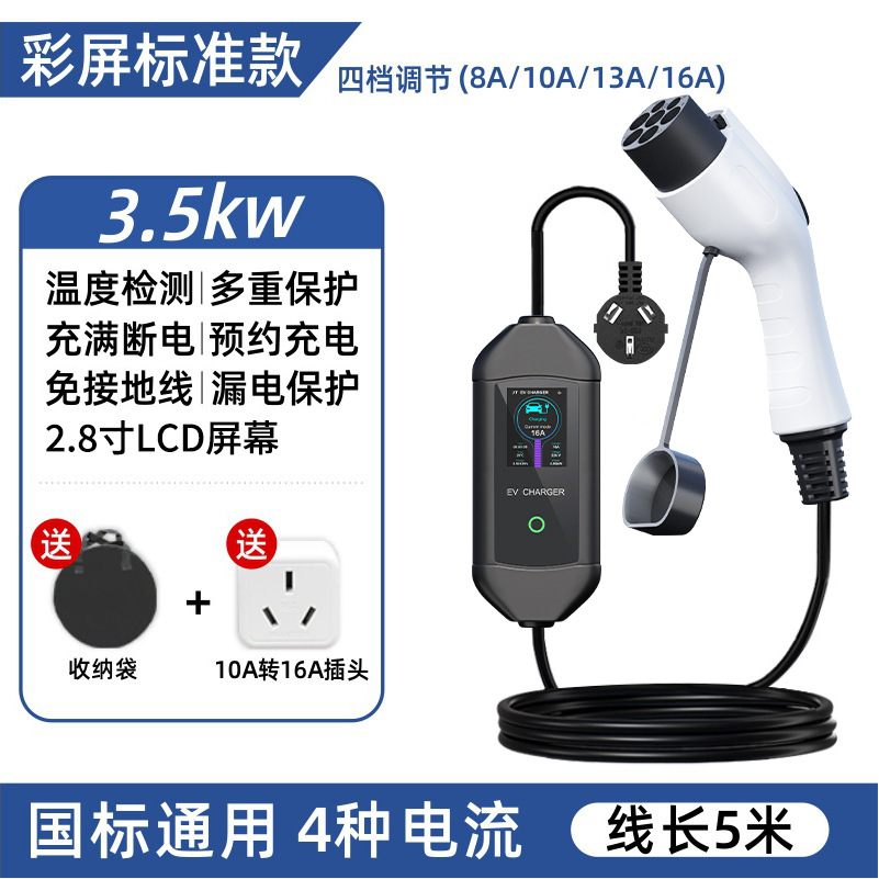 [Национальный стандарт 16А 3,5 кВт] Зарядный пистолет 3m; [Национальный стандарт 16А 3,5 кВт] Зарядный пистолет 5m; Национальный стандарт 16A 3,5 кВт 3m модель с большим экраном + адаптер + сумочка; Национальный стандарт 16A 3,5 кВт 5m модель с большим экраном + адаптер + сумочка; Национальный стандарт 32A 7KW 5m модель с большим экраном + адаптер + сумочка; Головка пистолета национального стандарта + вилка европейского стандарта 16А, 3,5 кВт, модель с большим экраном 3m; Головка пистолета национального стандарта + вилка европейского стандарта 16А, 3,5 кВт, модель с большим экраном 5m; Европейский стандарт 16A 3,5 кВт 5m модель с большим экраном; Американский стандарт 16A 3,5 кВт 5m модель с большим экраном; Европейский стандарт 32A 7KW 5m модель с большим экраном; Американский стандарт 32A 7KW 5m Модель с большим экраном