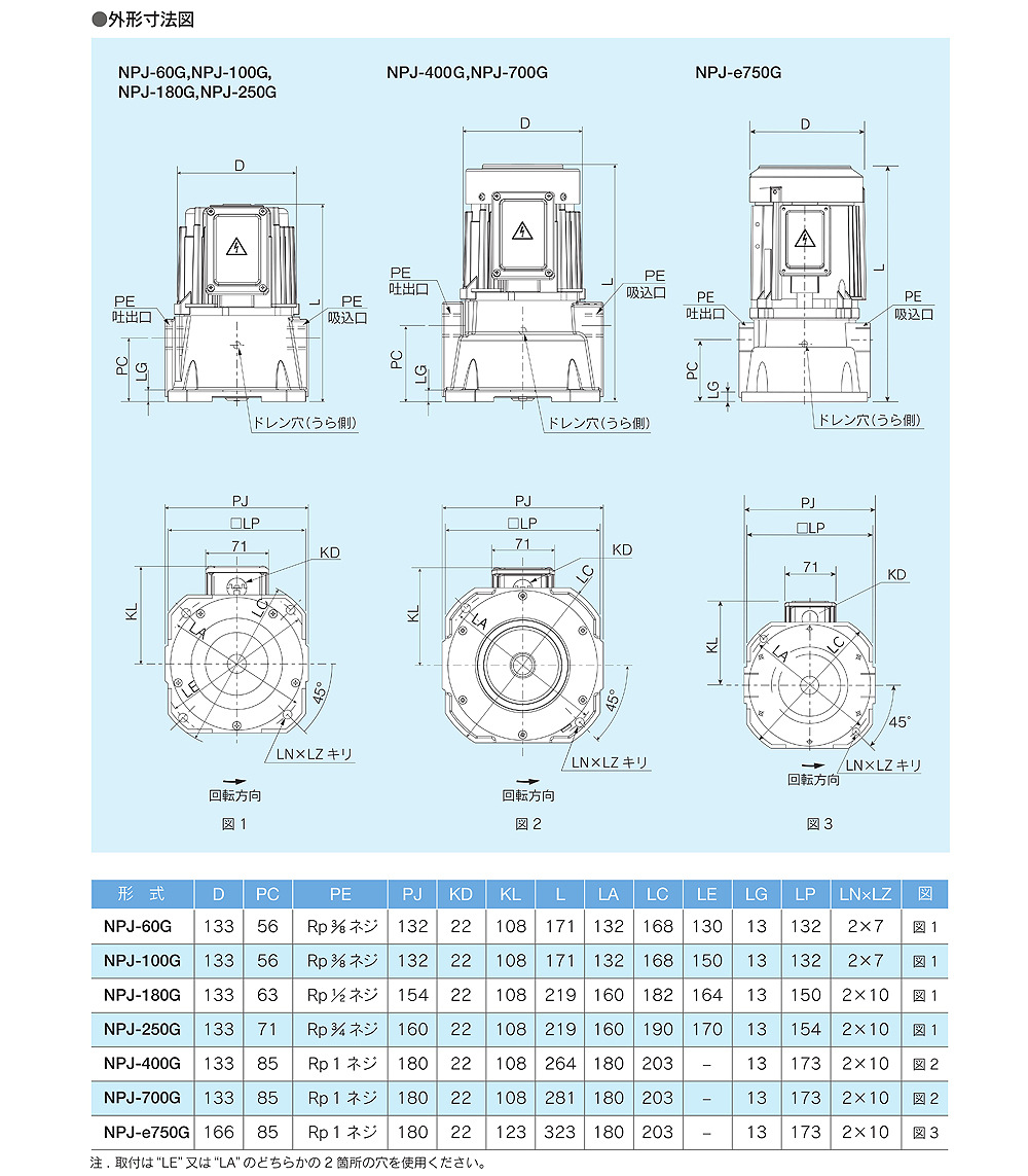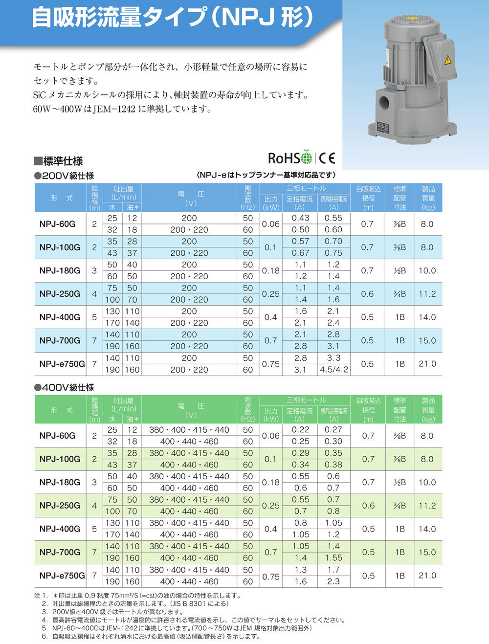 NPJ-60G; NPJ-100G; NPJ-180G; NPJ-250G; NPJ-400G; NPJ-700G; NPJ-e750G