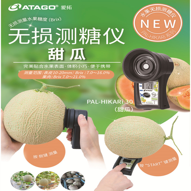 ATAGO(爱拓)水果无损糖度计—PAL-HIKARi系列采用红外原理,通过把光线从水果表面射向水果内部,根据反射到传感器的时间来推算果实的糖度(Brix值)。无损检测非常适合水果种植全程糖度监控,不破坏果实外观,全程跟跟踪监测水果生长过程的糖度(Brix值)变化,对果品研发、果蔬种植、成熟度监测、采摘期控制、存储运输、果蔬配送、售价分级等提供了检测数据支持与分析,便携式设计,使用环境友好,测量快速,是果园种植户、水果检测机构、水果连锁经销商、水果品控部门的检测仪器之一。