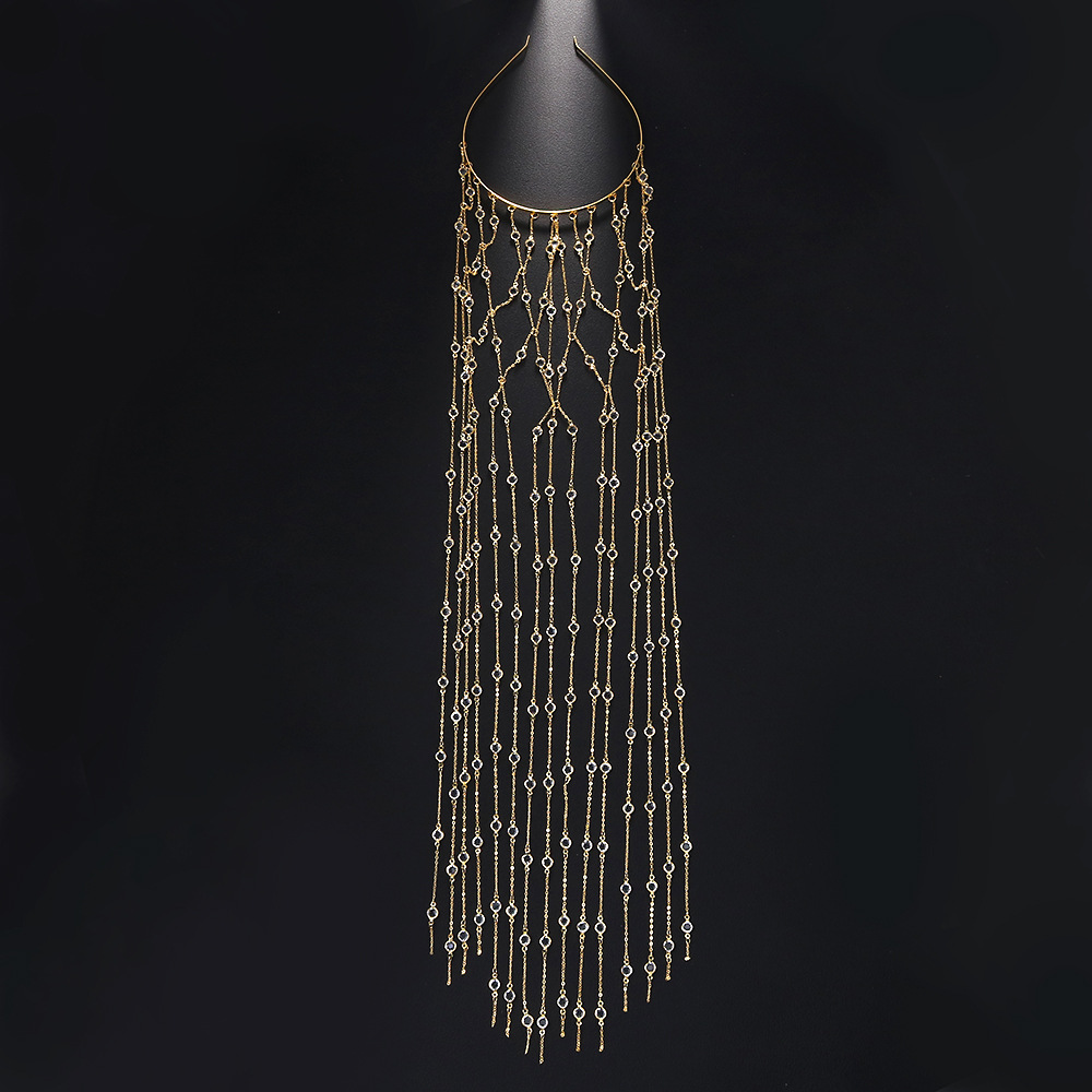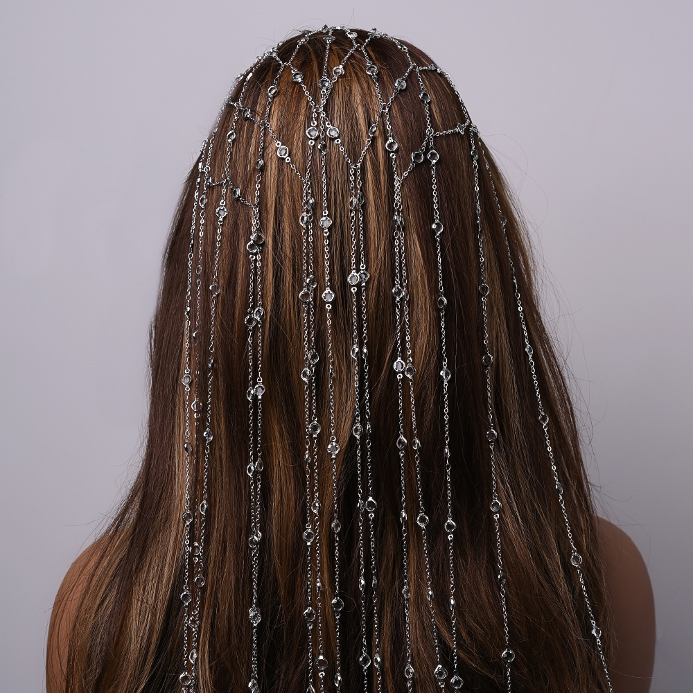 Трансграничная горячая распродажа, сетчатая цепочка для волос со стразами и кисточками, банкетная элегантная цепочка для волос с бриллиантами, универсальные аксессуары, женская повязка на голову