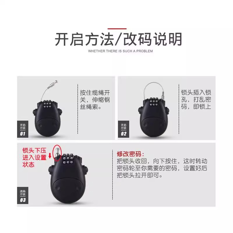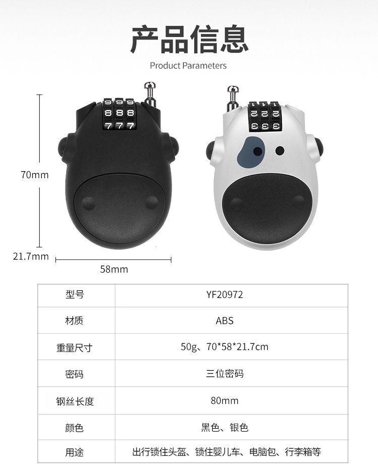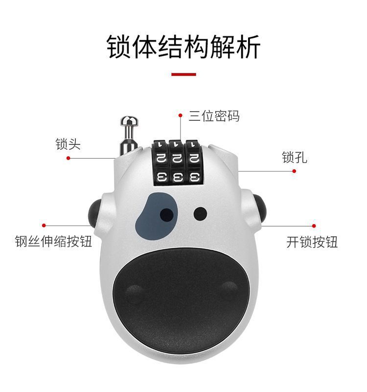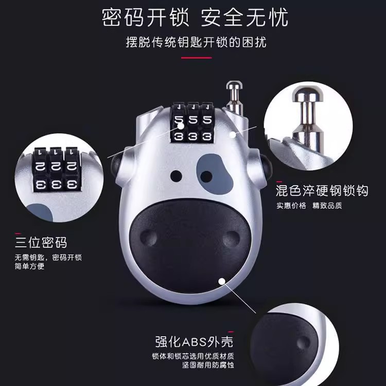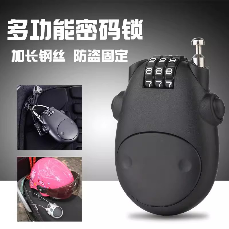 Мотоциклетный аккумулятор, автомобильный противоугонный замок для шлема, замок с паролем в виде мультяшной коровы, велосипедный анти-потерянный телескопический трос, портативный