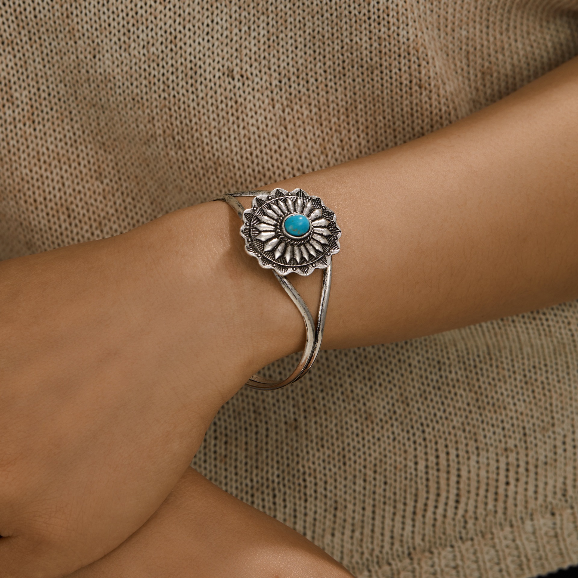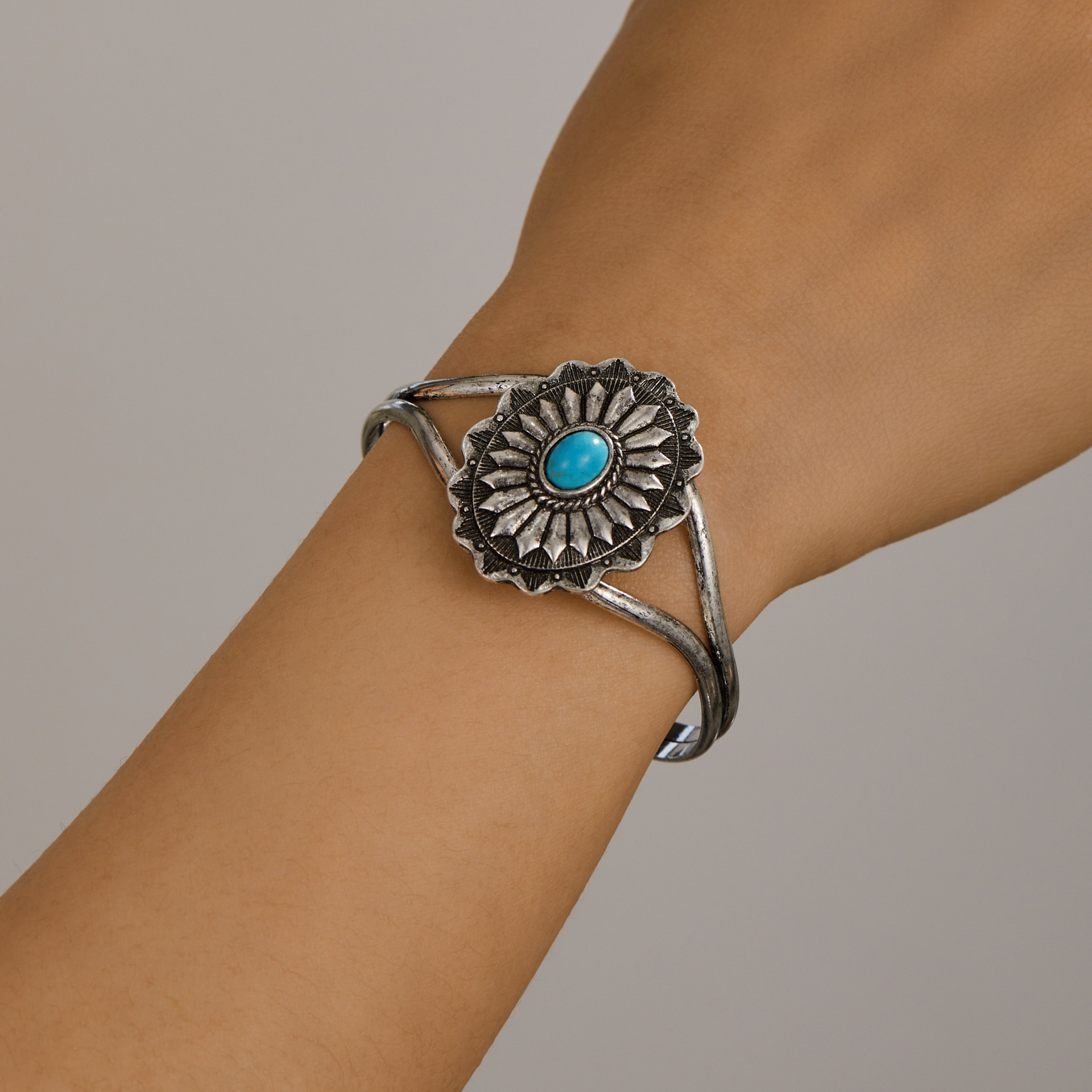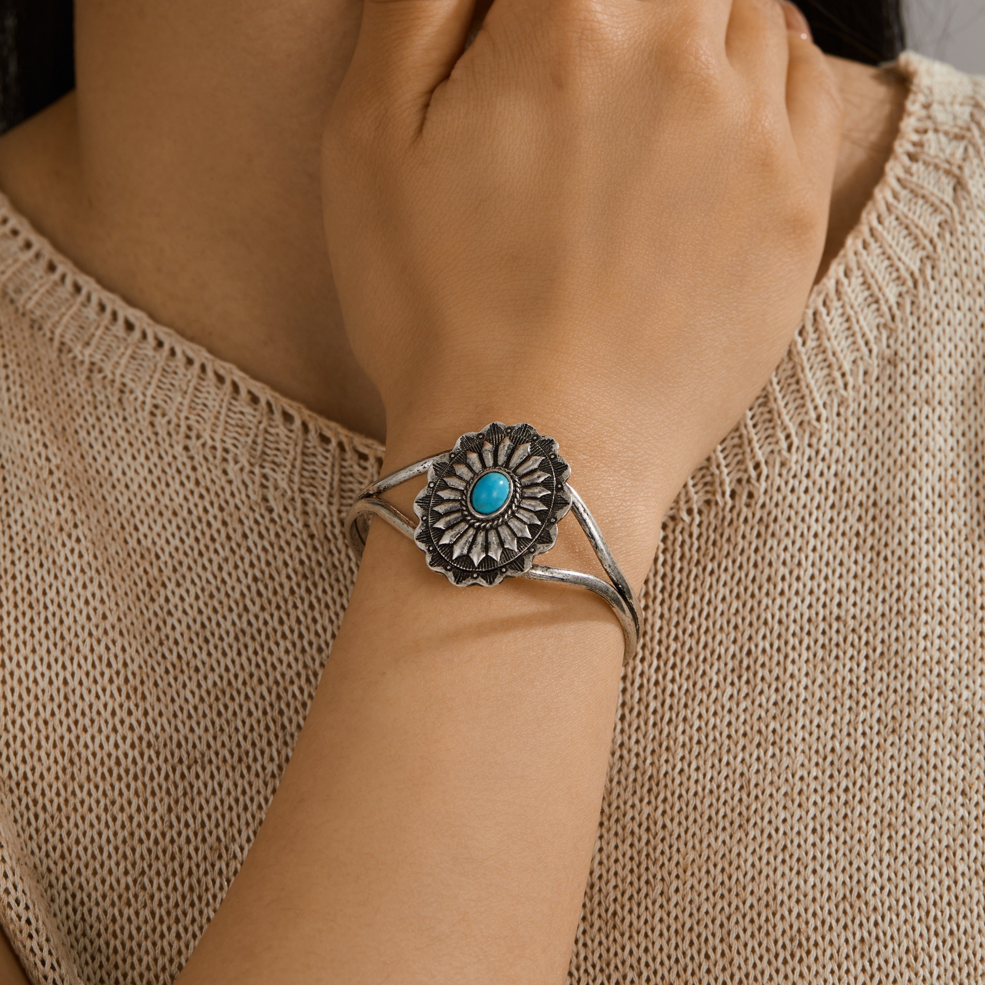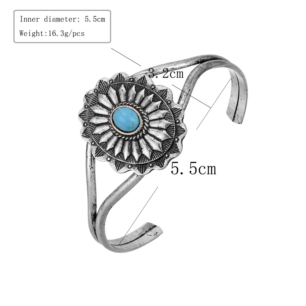 Европейские и американские трансграничные ювелирные изделия INS, ретро-синий браслет из бирюзового сплава, модный преувеличенный открытый браслет, популярные ювелирные изделия для женщин