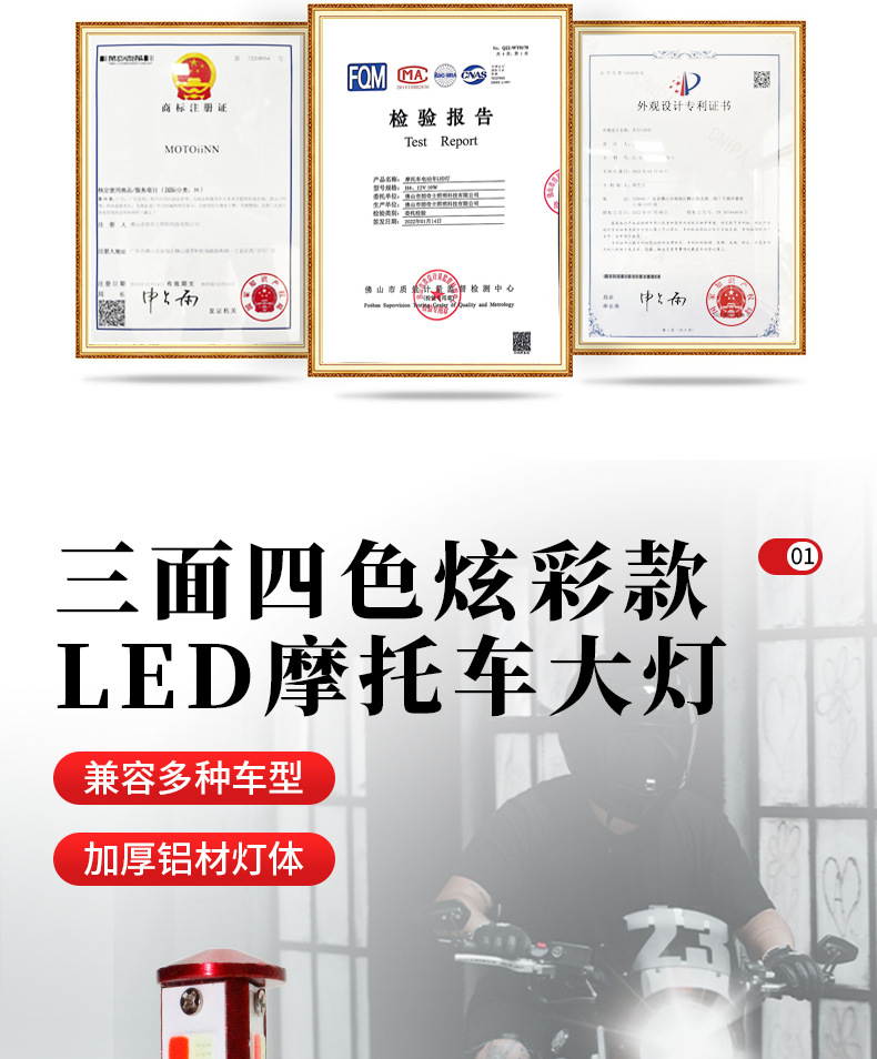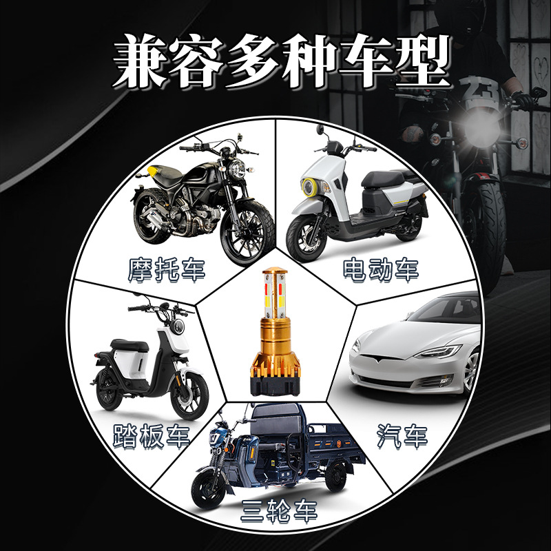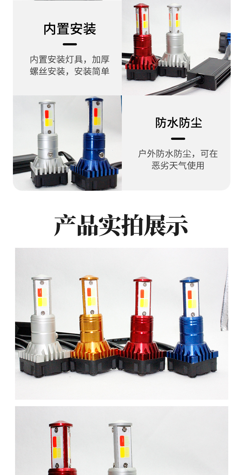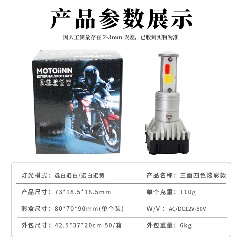 Мотоциклетные светодиодные встроенные фары, трехсторонние четырехцветные разноцветные прожекторы, оптовые универсальные модифицированные фары для электромобилей