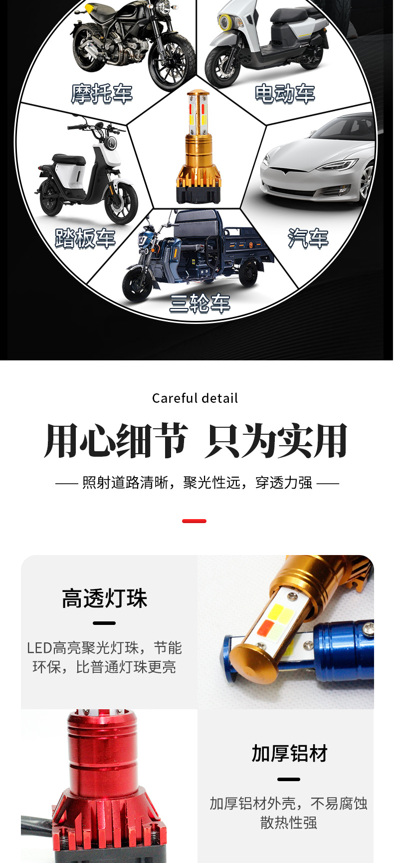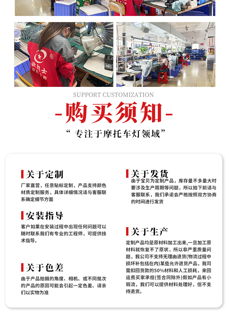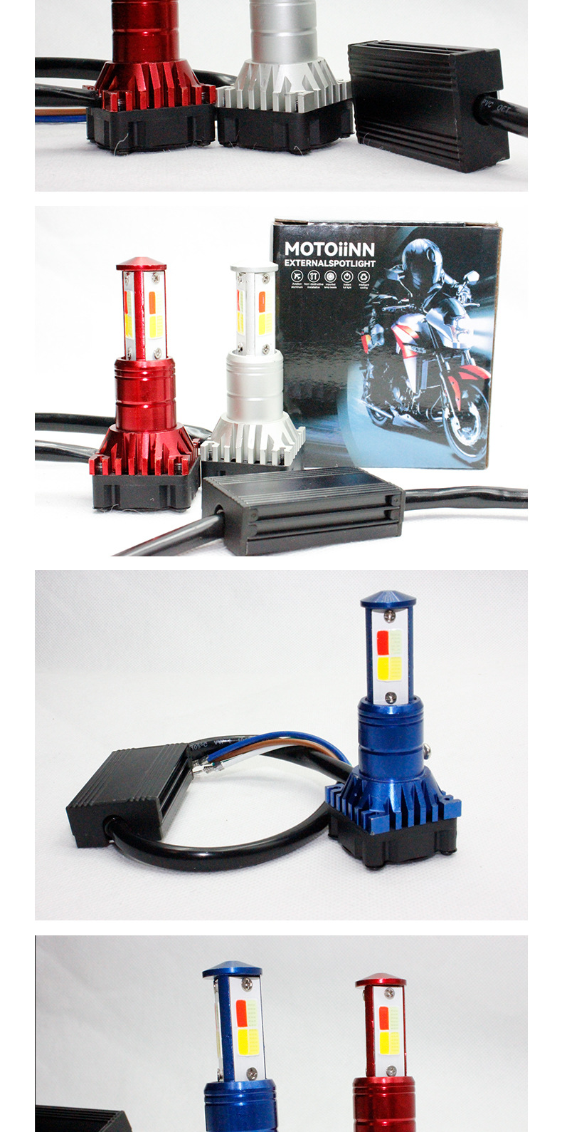 Мотоциклетные светодиодные встроенные фары, трехсторонние четырехцветные разноцветные прожекторы, оптовые универсальные модифицированные фары для электромобилей