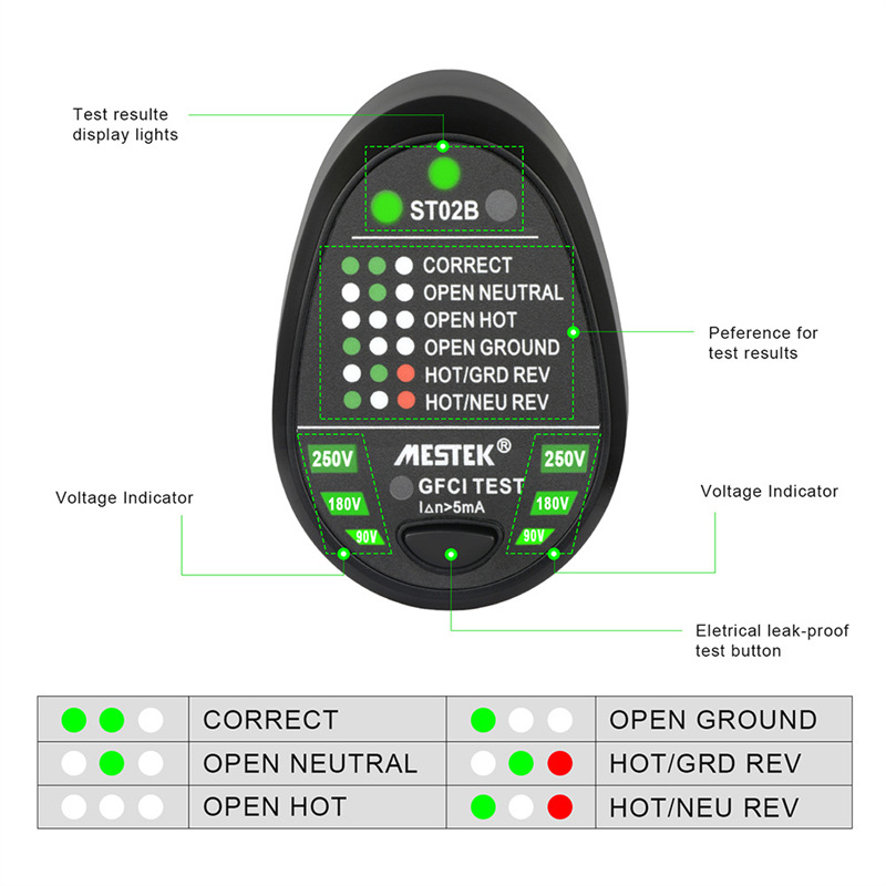 Розетка, измеритель мощности, полярность, обнаружение фазы, обнаружение переключателя утечки, экспорт, американский стандарт ST02B